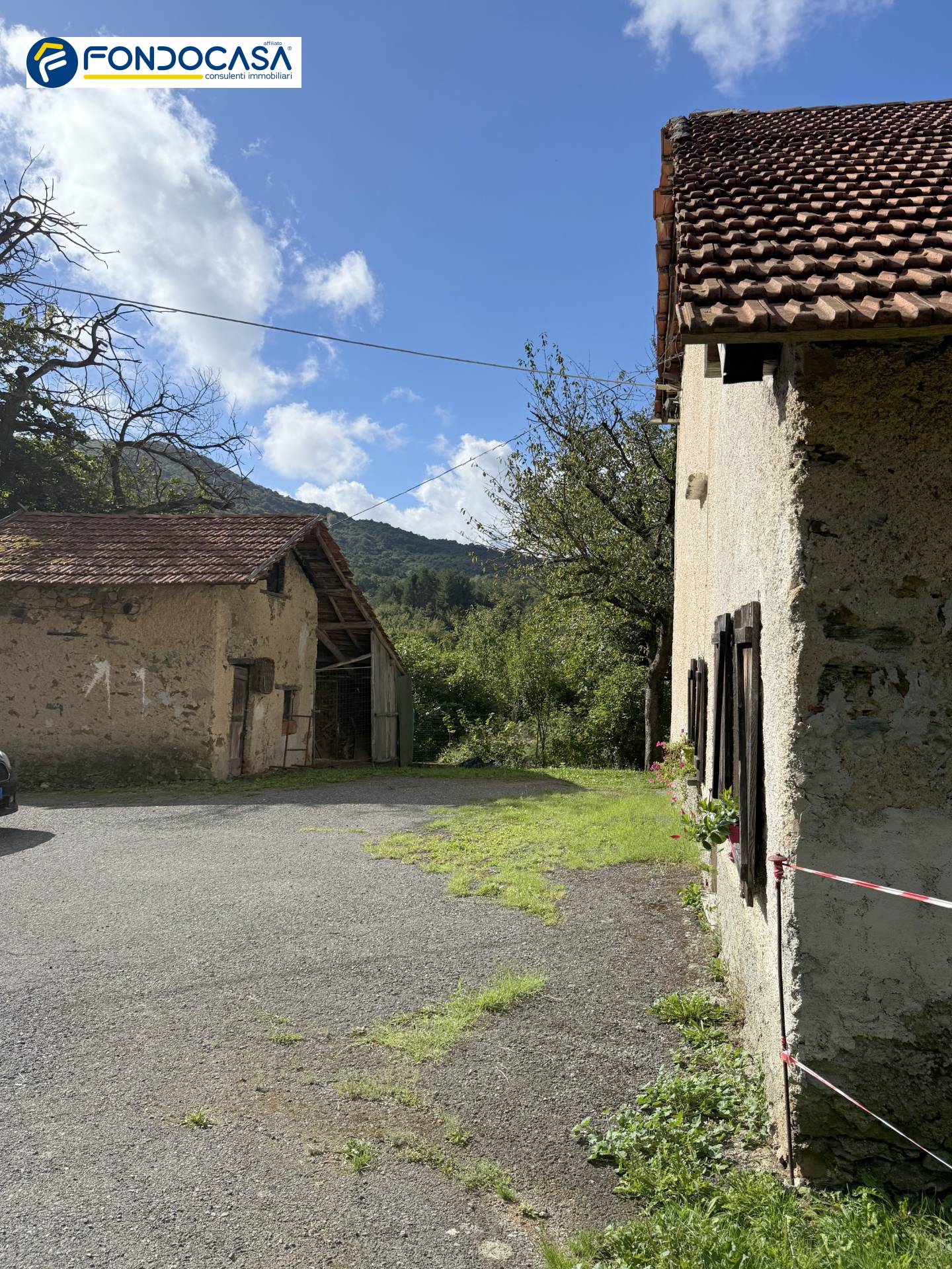 Il secondo fabbricato collocato a circa 50 m. dalla casa principale consiste in un porticato di grandi dimensioni suddiviso in due locali in parte aperti ed in parte chiusi.