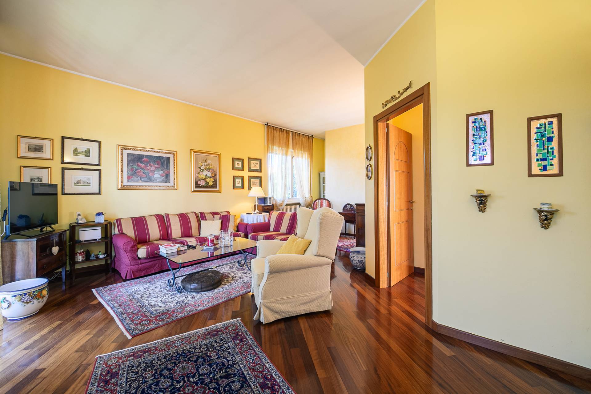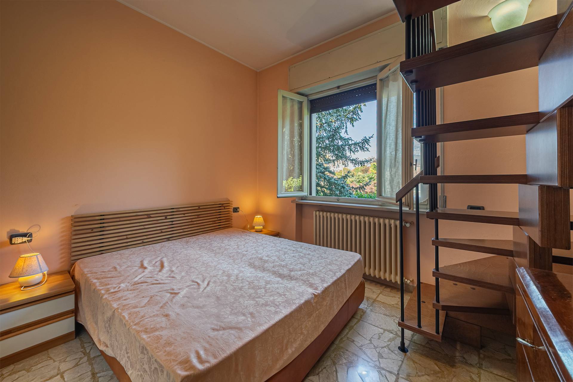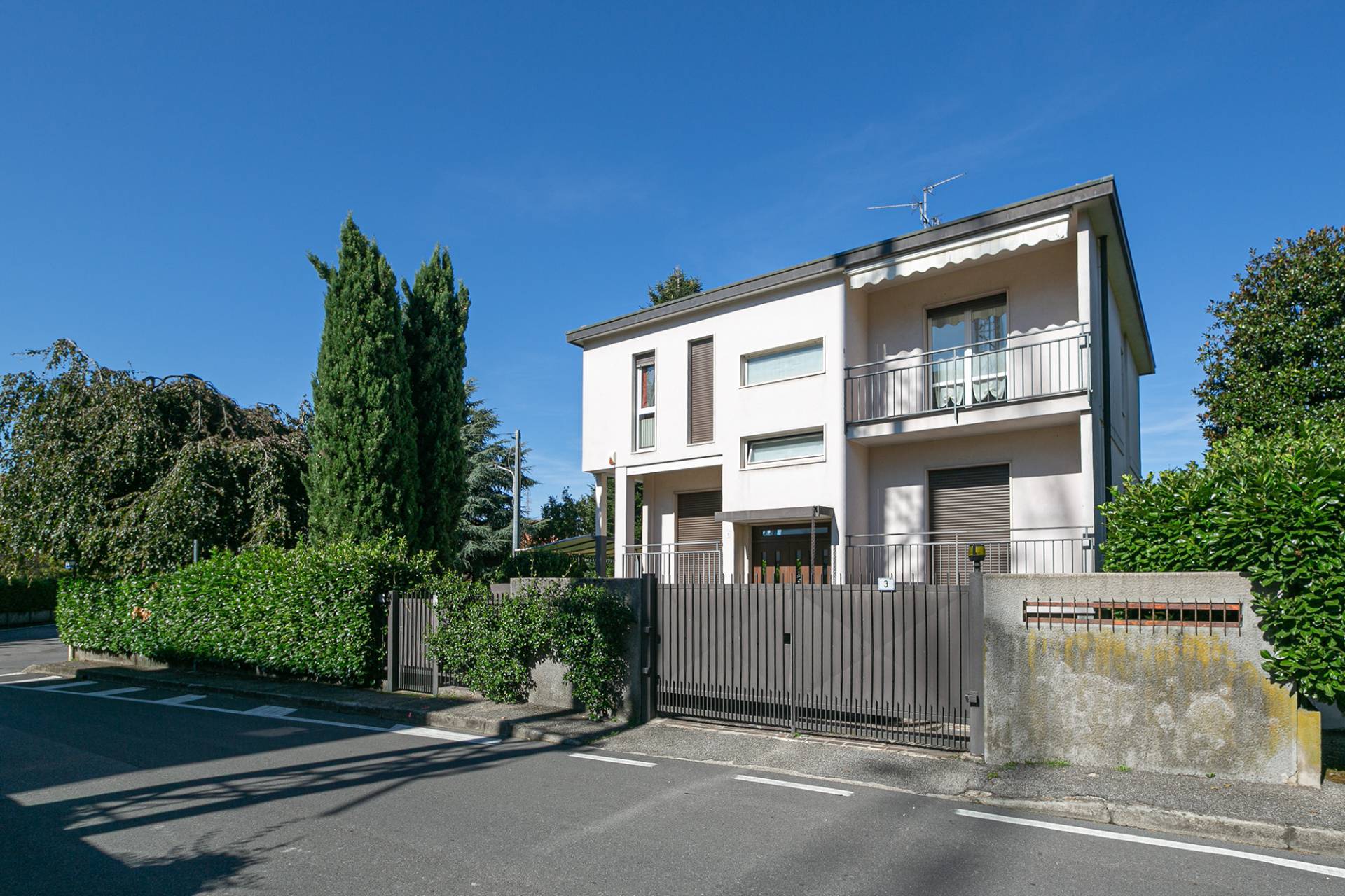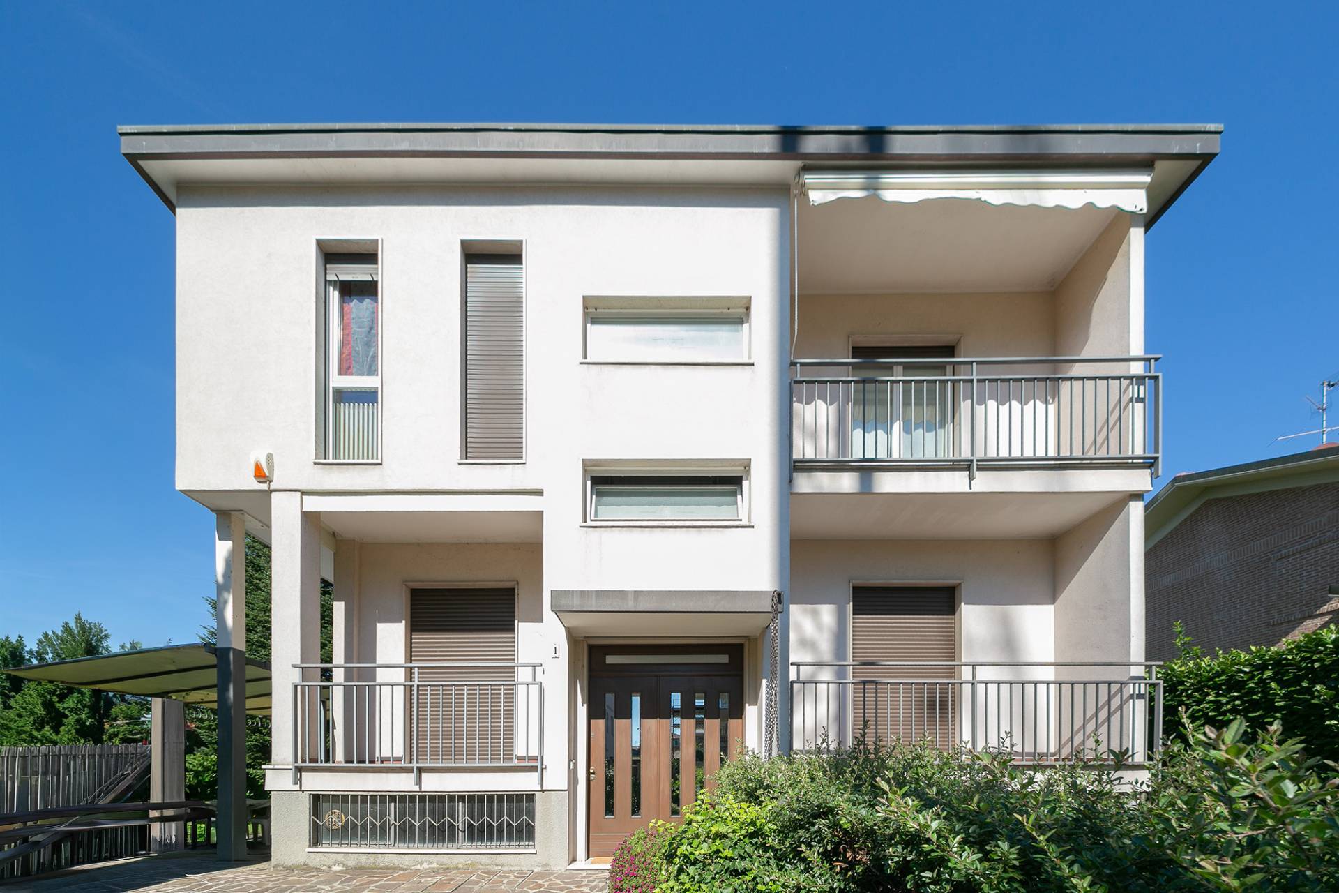 Costruita nel 1967, la villa vanta uno stile architettonico classico ma raffinato, tipico delle dimore di prestigio di quell'epoca. L'ingresso principale conduce direttamente alle scale comuni, al piano rialzato troviamo il primo appartamento di 82 mq, attualmente composto da un ampio soggiorno con balcone, cucina abitabile con balcone, camera matrimoniale con ulteriore balcone e bagno. Questa soluzione non è stata oggetto di ristrutturazione e si presenta nello stato originale. Al piano primo troviamo il secondo appartamento, ristrutturato agli inizi degli anni 2000, con infissi in legno e doppi vetri, tapparelle in pvc e parquet nella zona giorno/notte. Anche qui troviamo un ampio soggiorno con balcone, cucina abitabile con zona pranzo separata, camera matrimoniale con balcone, cameretta e bagno con doccia.
