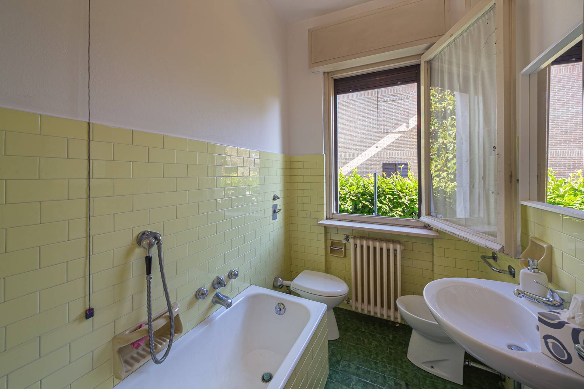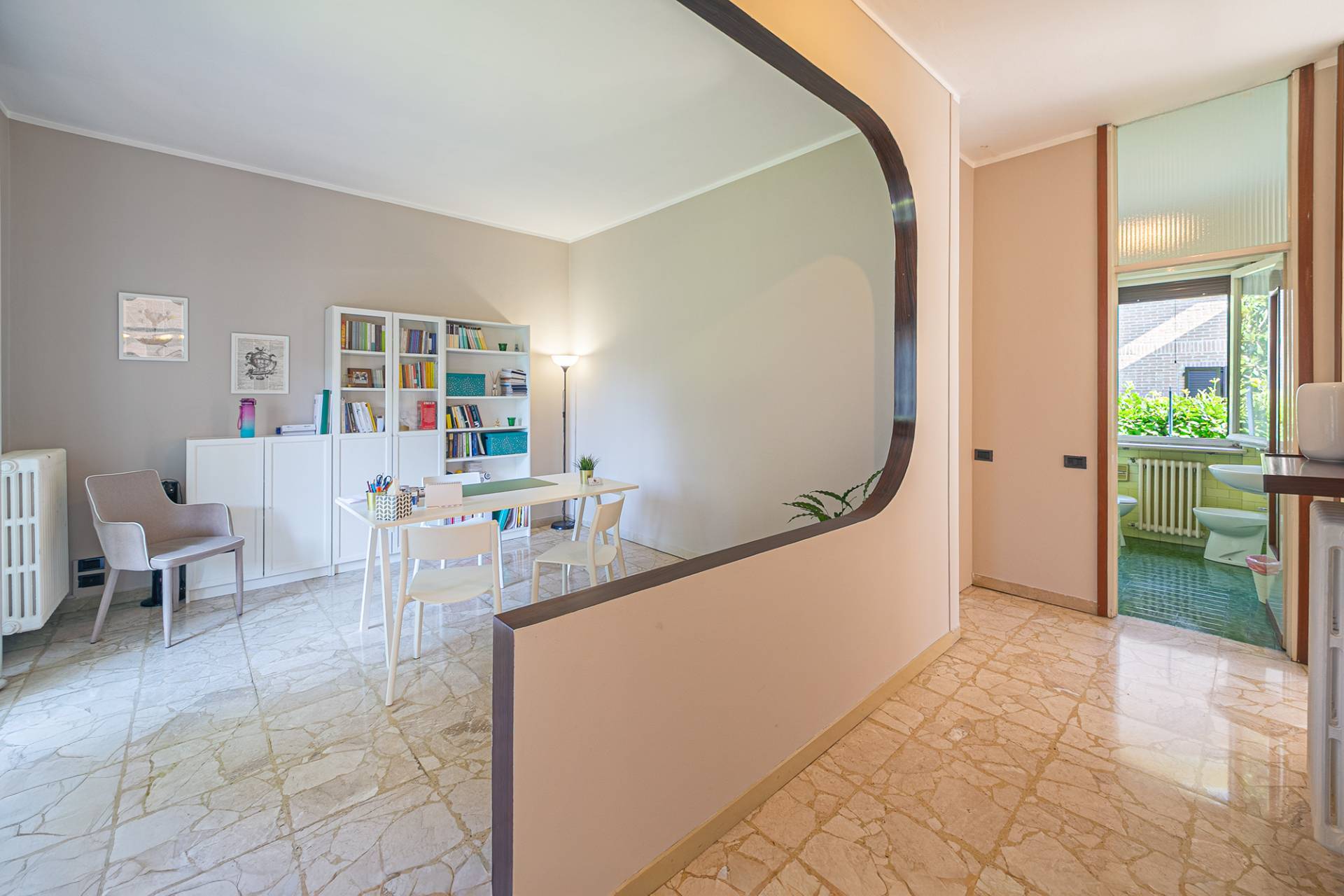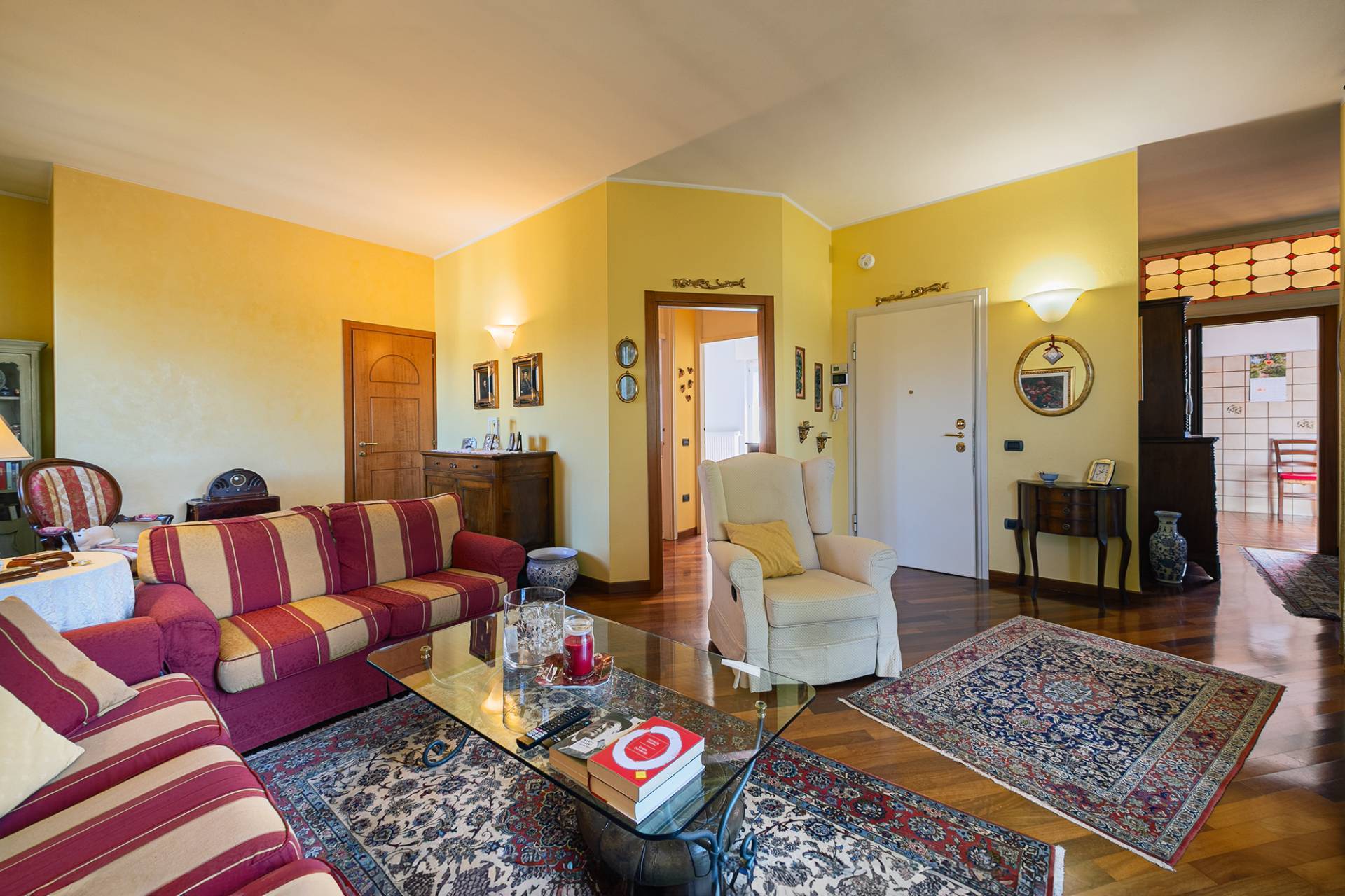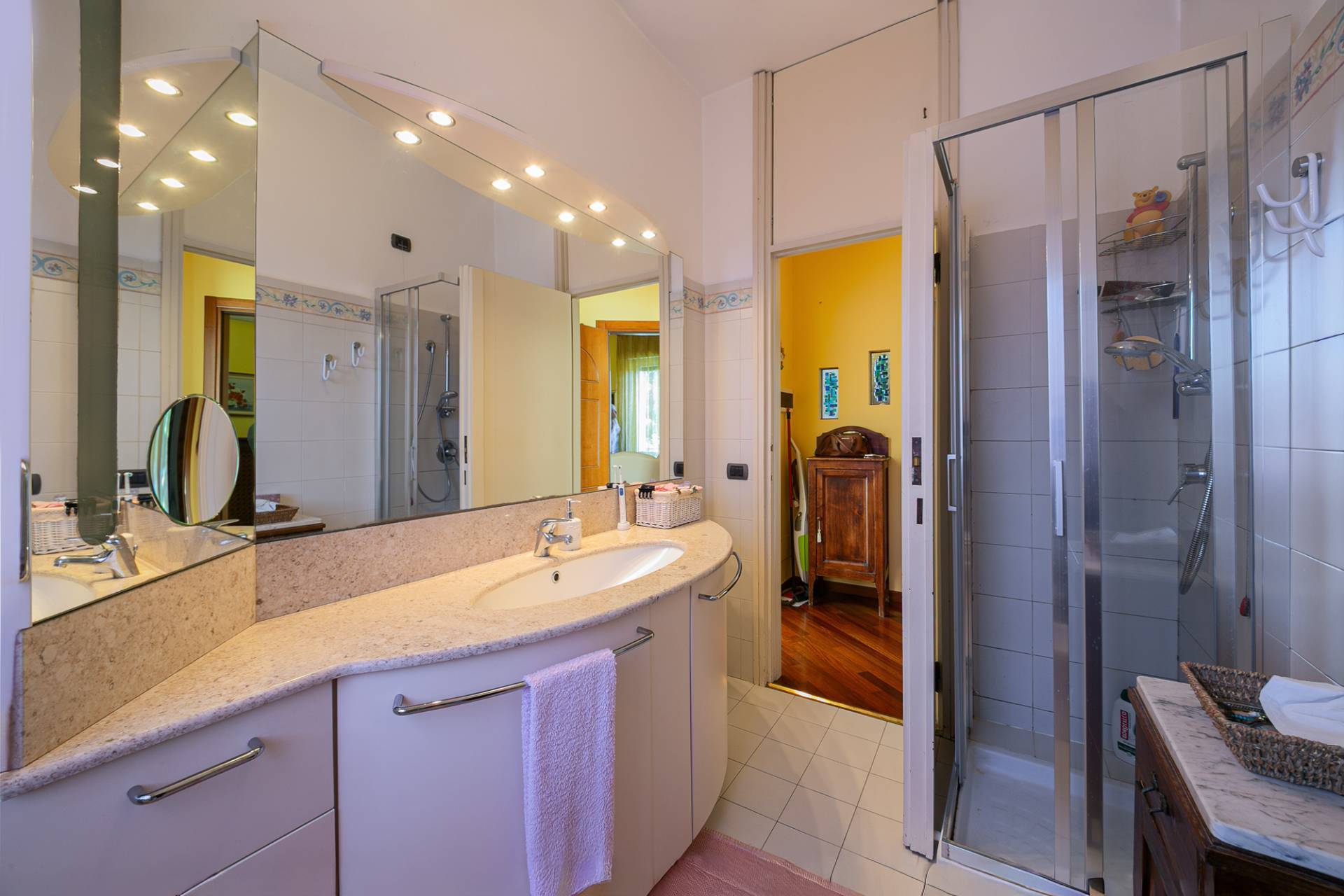 Costruita nel 1967, la villa vanta uno stile architettonico classico ma raffinato, tipico delle dimore di prestigio di quell'epoca. L'ingresso principale conduce direttamente alle scale comuni, al piano rialzato troviamo il primo appartamento di 82 mq, attualmente composto da un ampio soggiorno con balcone, cucina abitabile con balcone, camera matrimoniale con ulteriore balcone e bagno. Questa soluzione non è stata oggetto di ristrutturazione e si presenta nello stato originale. Al piano primo troviamo il secondo appartamento, ristrutturato agli inizi degli anni 2000, con infissi in legno e doppi vetri, tapparelle in pvc e parquet nella zona giorno/notte. Anche qui troviamo un ampio soggiorno con balcone, cucina abitabile con zona pranzo separata, camera matrimoniale con balcone, cameretta e bagno con doccia.
