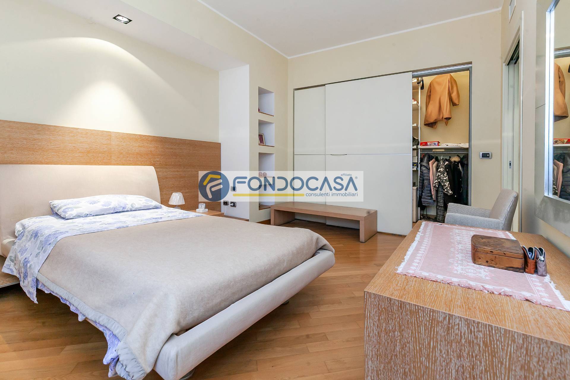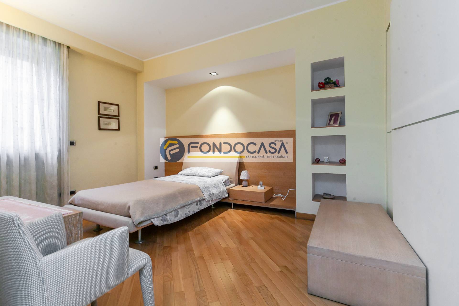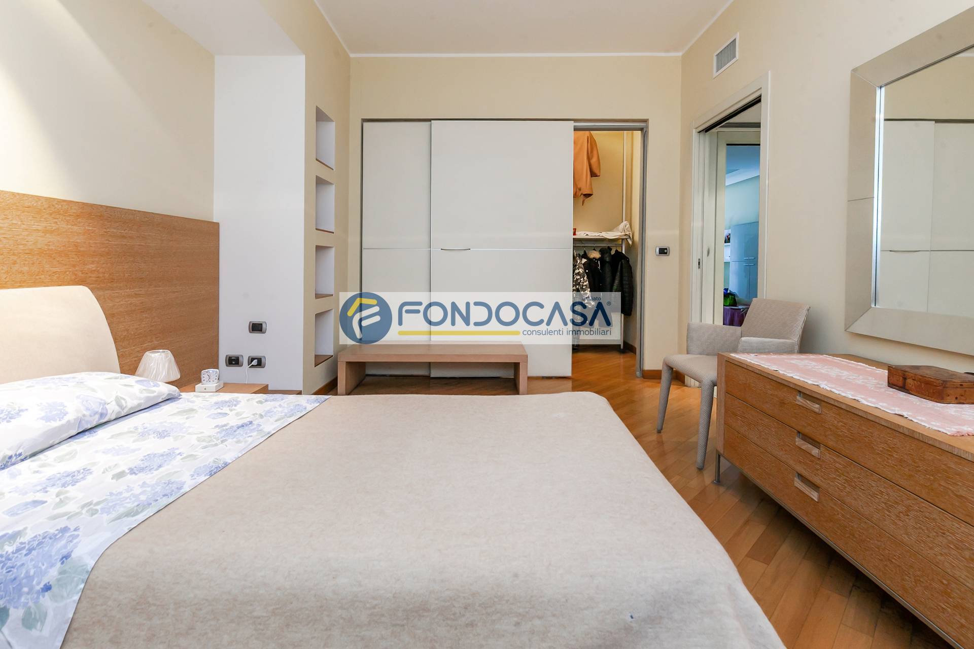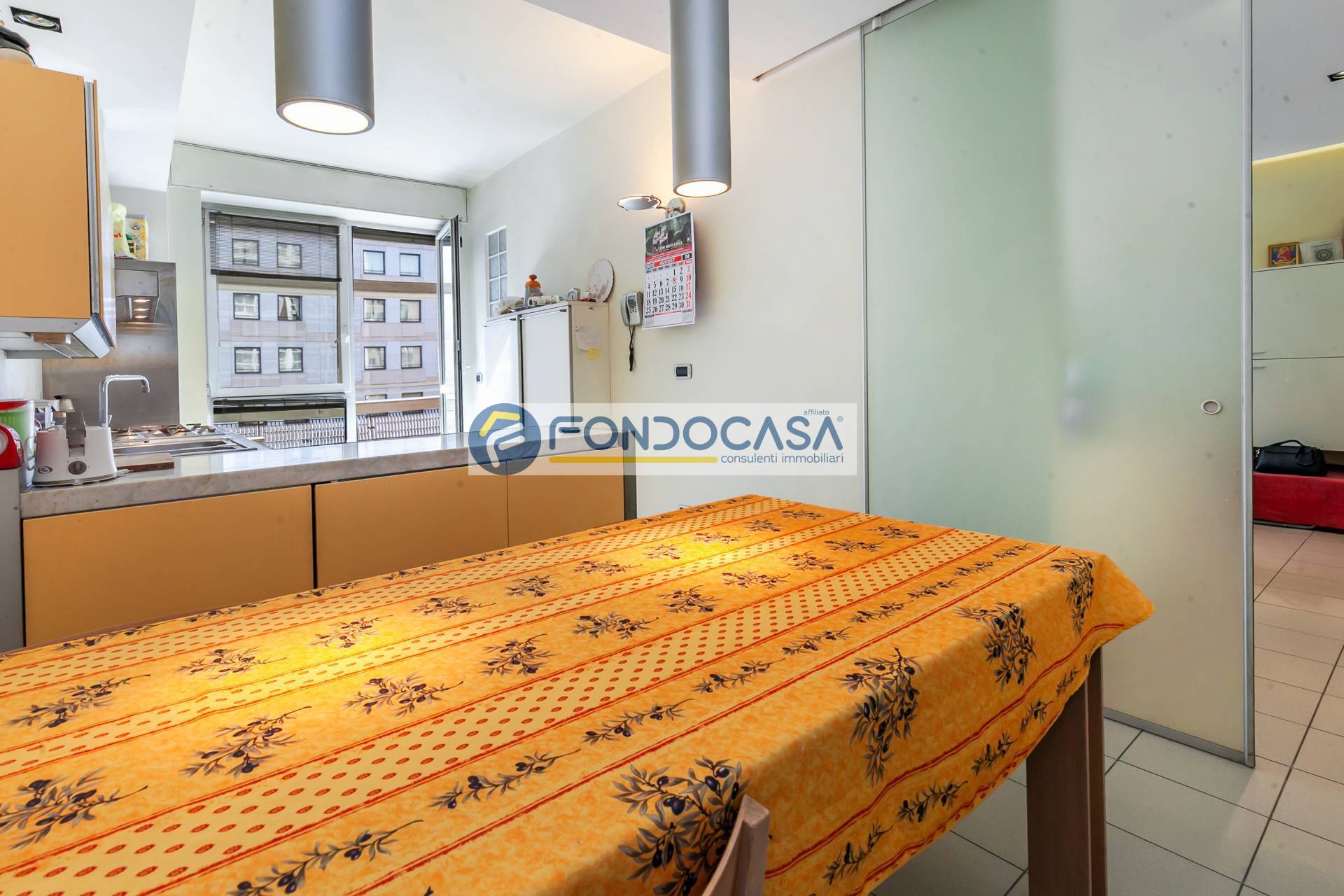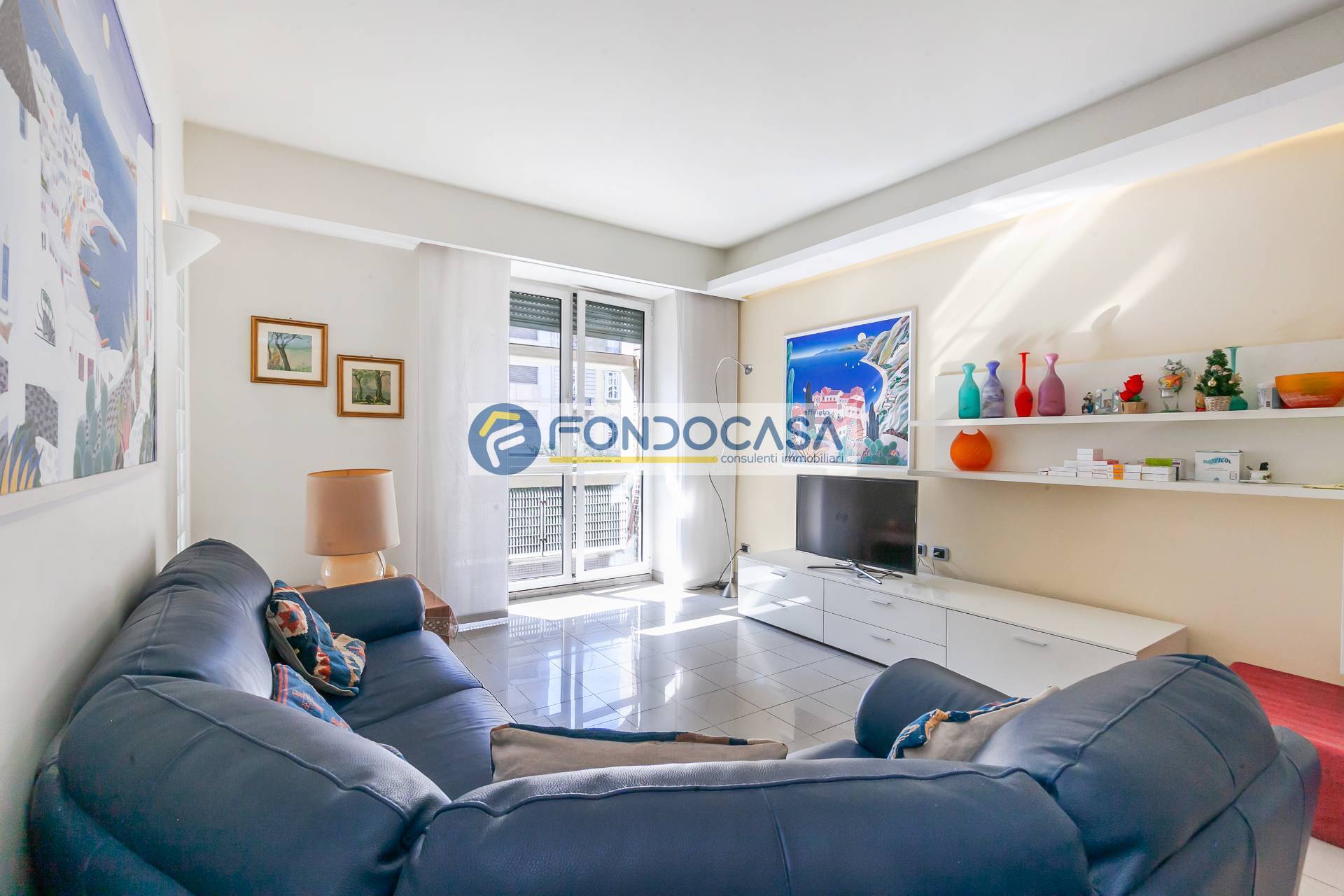 L'immobile è in buono stato, attualmente suddiviso come ampio bilocale, ma l'ampia metratura permette di ricavare anche un comodo tre locali. La soluzione è così composta: ingresso su disimpegno soggiorno con accesso all'ampio balcone, cucina abitabile, disimpegno, bagno finestrato, camera da letto con cabina armadio e ripostiglio. Completa la soluzione una cantina di pertinenza.