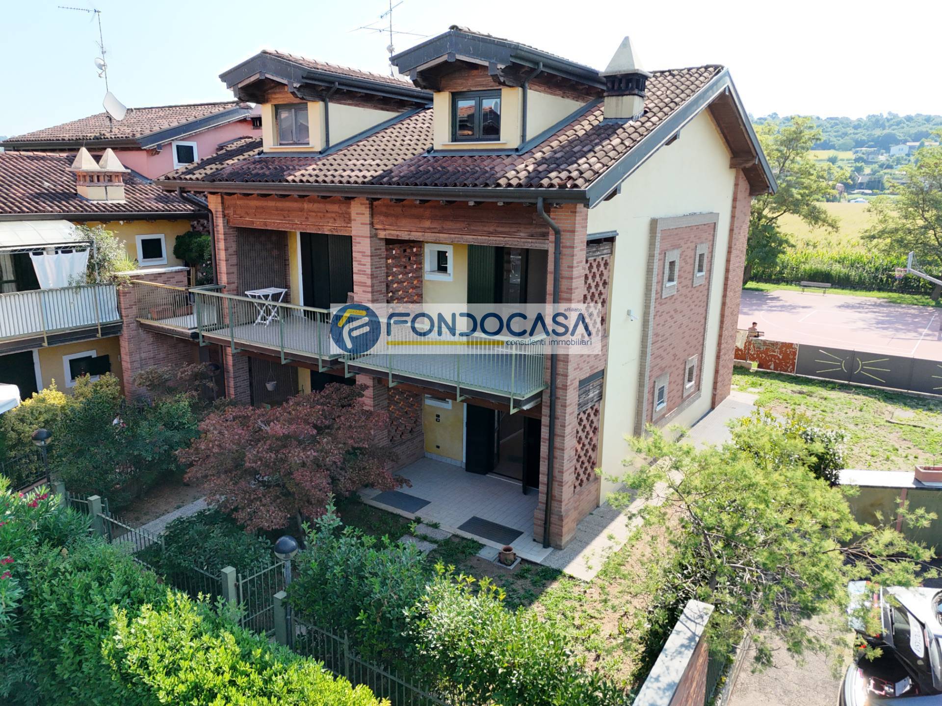 A A Amanti tranquillità, immersa nel verde..! ! ! ideale a famiglie con figli, privato vende villa schiera di testa, su due livelli, ampia mansarda, autorimessa e posti auto coperti di proprietà, l'immobile confina con un parco pubblico...ideale per i vostri bimbi, ed è così composta: ingresso direttamente dall'ampio giardino sui tre lati, cucina, sala con portico, bagno di servizio al piano, salendo troviamo il disimpegno, e la prima camera da letto, poi la seconda camera da letto e la terza camera da letto...bagno padronale, salendo ancora troviamo una mansarda ancora da ultimare con il pavimento, che può ospitare una camera da letto con bagno privato, scendendo troviamo la comoda autorimessa, con altri posti auto nel comodo corsello di proprietà, solo da ringiovanire.