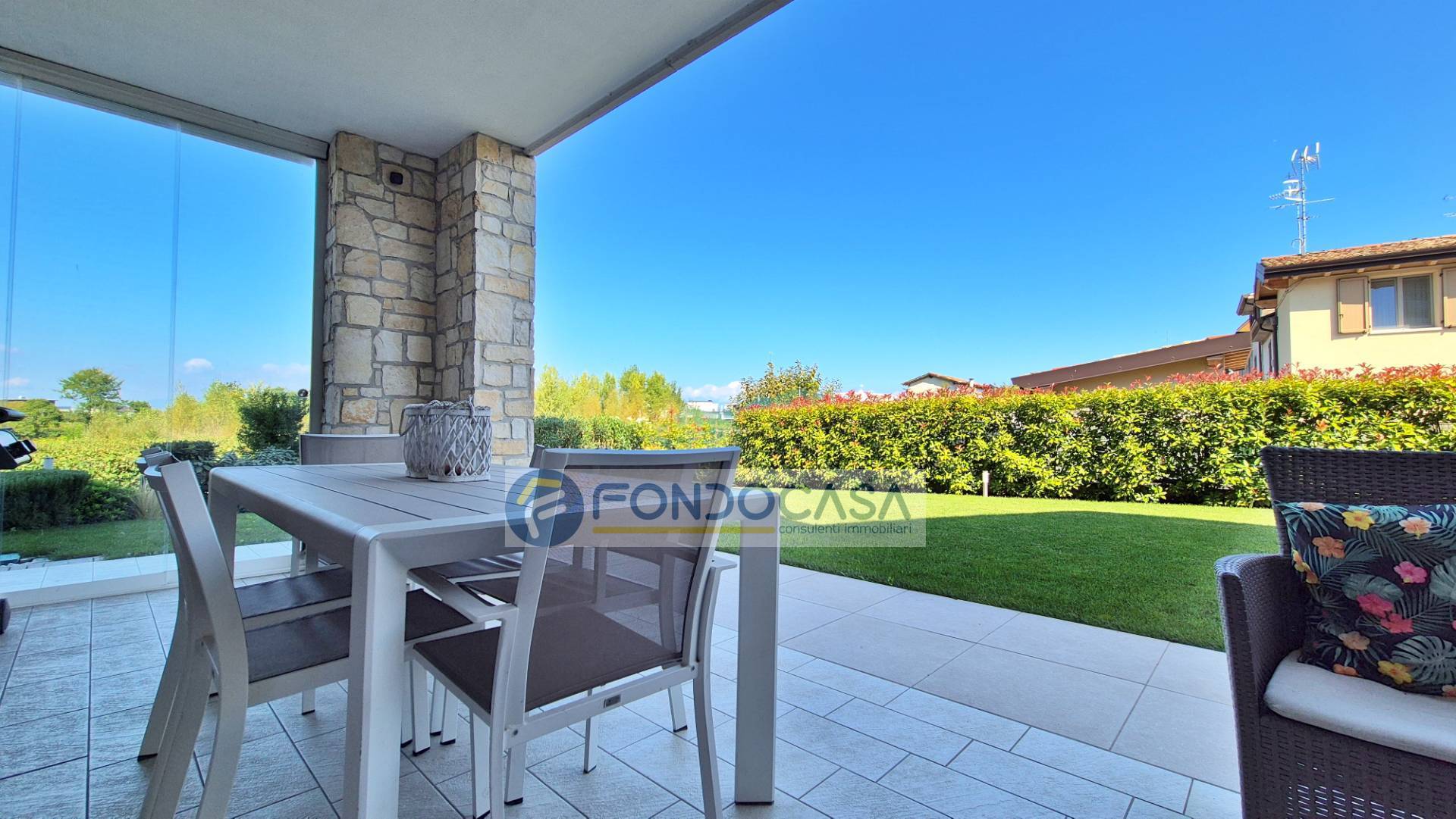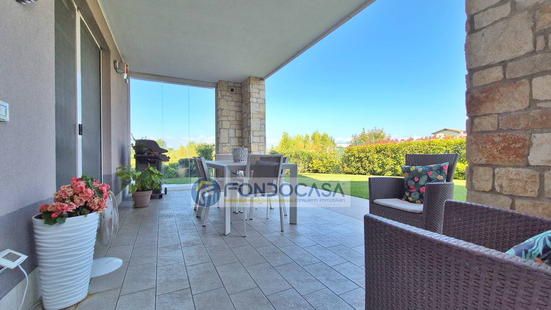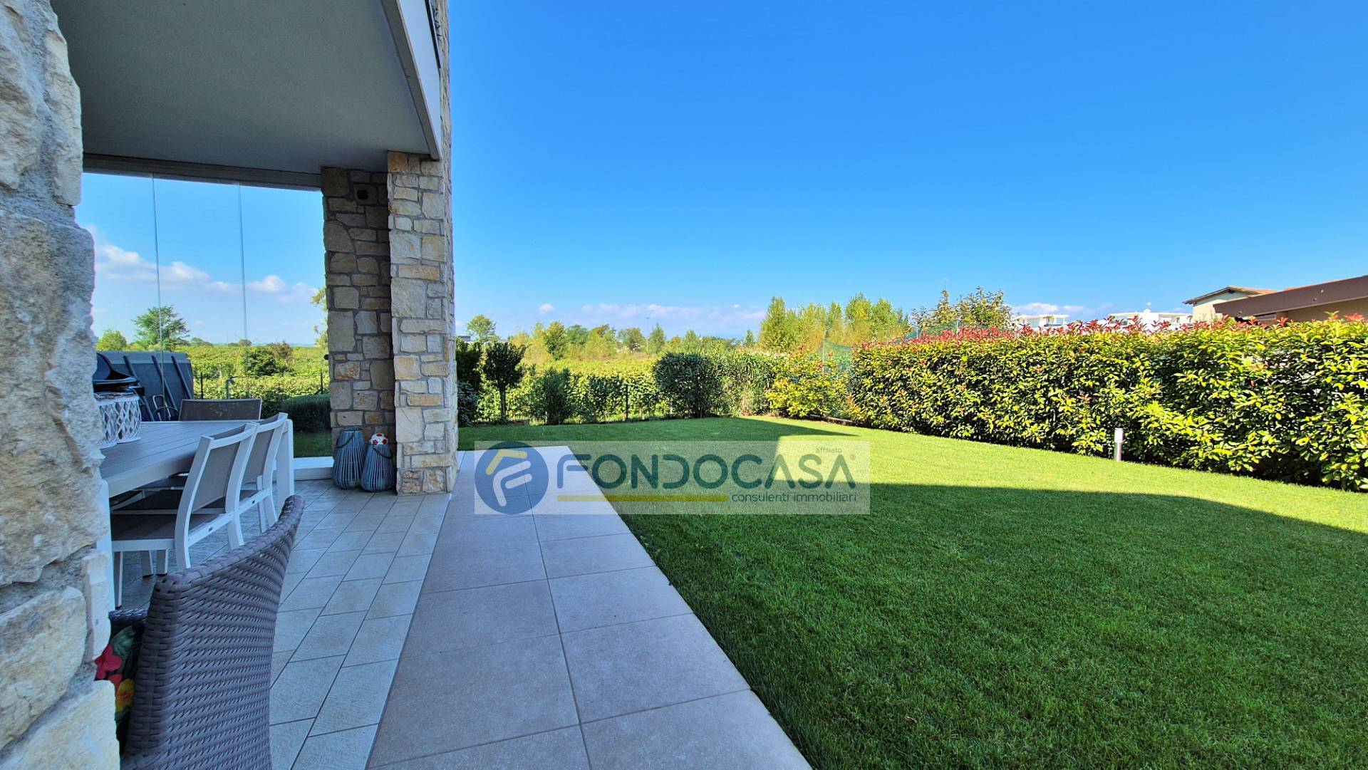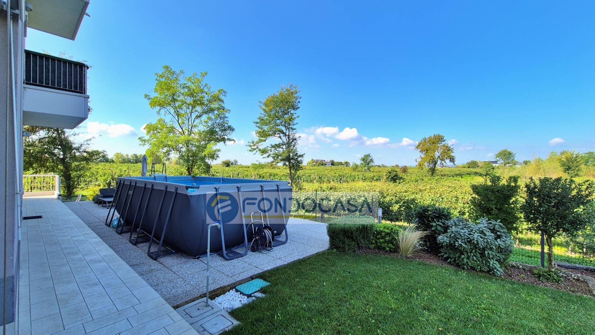 In elegante residence proponiamo in vendita un luminoso appartamento al piano terra, libero su tre lati e circondato da un ampio giardino privato di circa 380 mq con splendida vista aperta sui vigneti.
