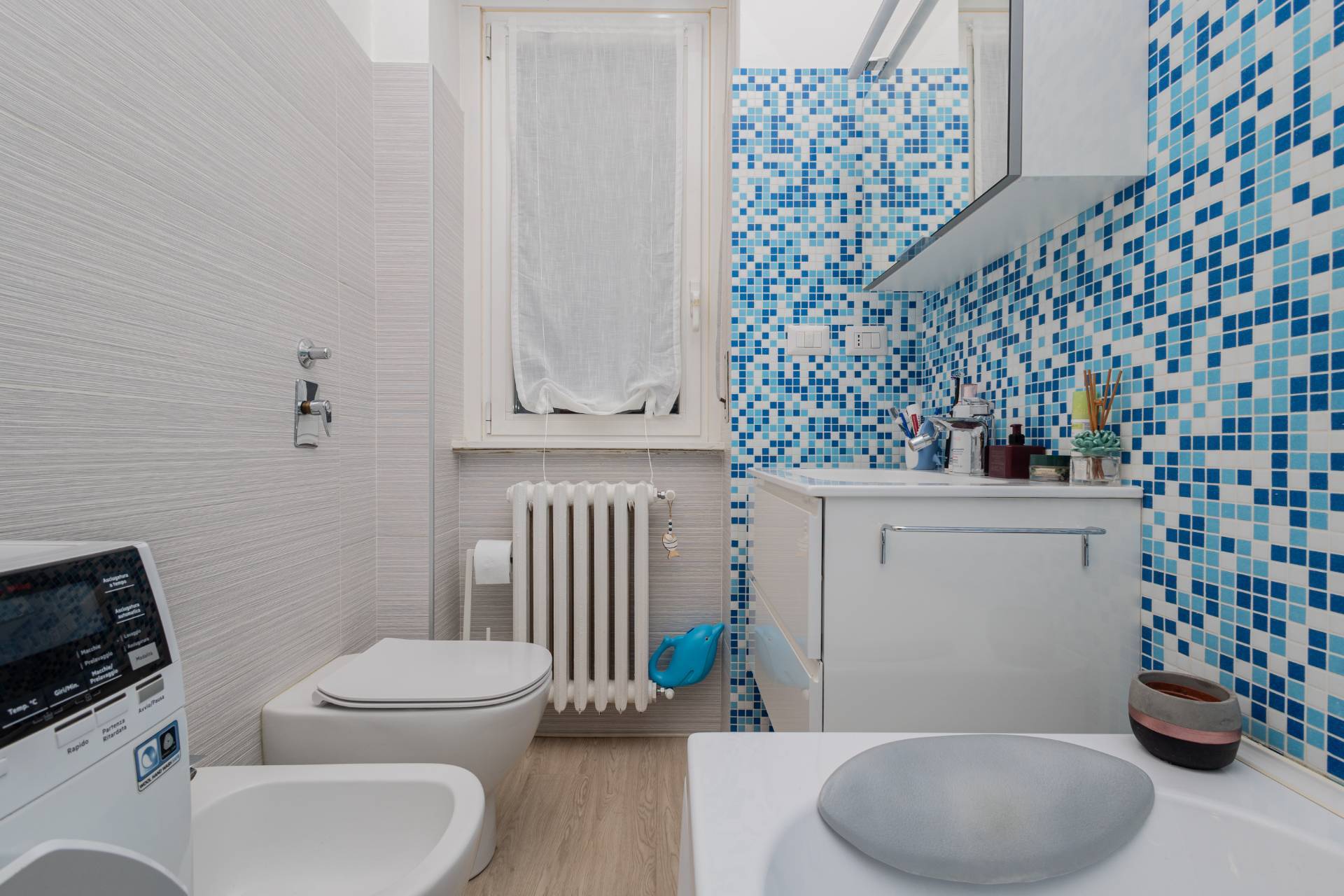 La soluzione sita ad un primo piano con ascensore, risulta così composta: ingresso, soggiorno con accesso al balcone, cucina abitabile, disimpegno, 2 camere da letto matrimoniali e bagno finestrato con vasca idromassaggio.