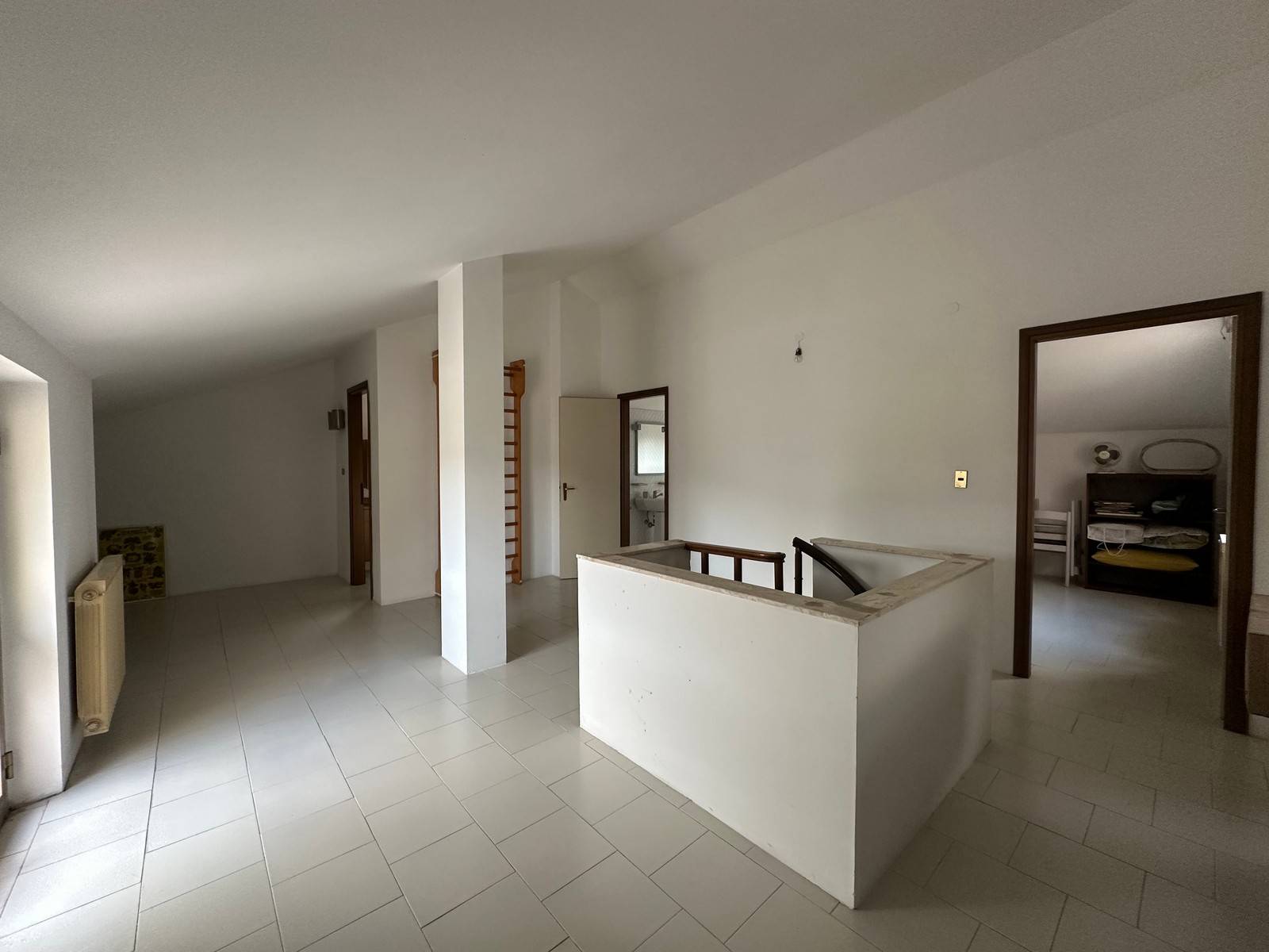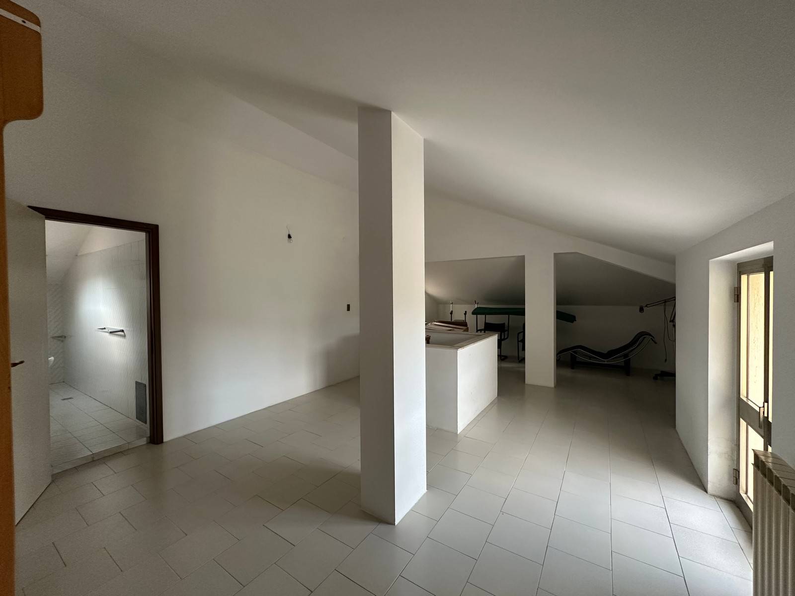 Mansarda abitabile: collegata da scala interna a chiocciola, dispone di soggiorno, una camera, bagno, ripostiglio/lavanderia e balcone.