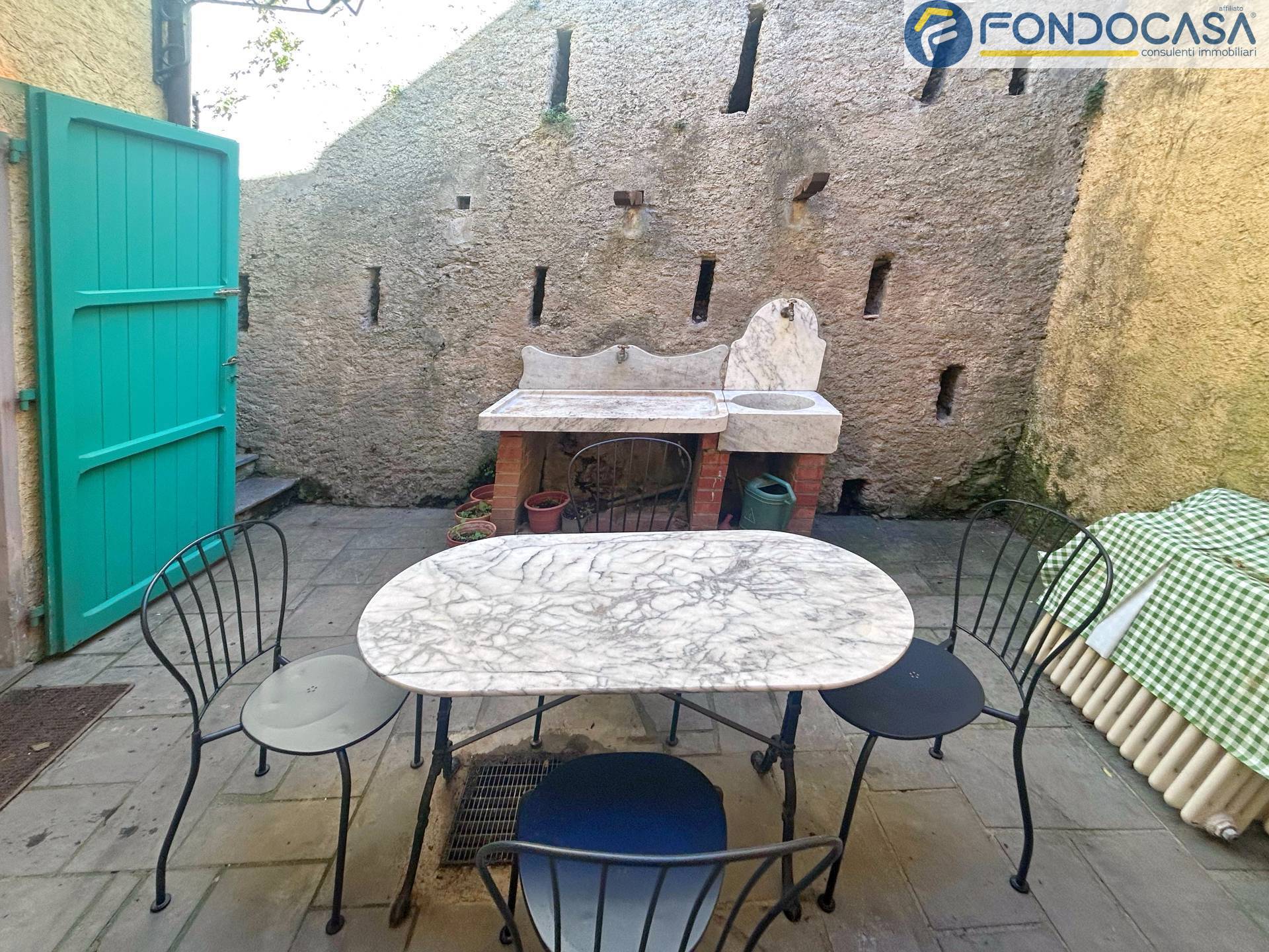In the heart of Seravezza, just a few hundred meters from the Palazzo Mediceo, a private individual is selling a characteristic 17th-century semi-detached villa on three levels, featuring a panoramic garden and a splendid, large paved terrace. The property was recently renovated in 2025, maintaining its period features and finishes. It comprises a private entrance, a living room with exposed beams, a dining area with a fireplace and access to the private garden, a kitchen with an outdoor patio, and a bathroom. The first floor features three double bedrooms and two bathrooms. A large cellar and a wood-burning oven complete the property.