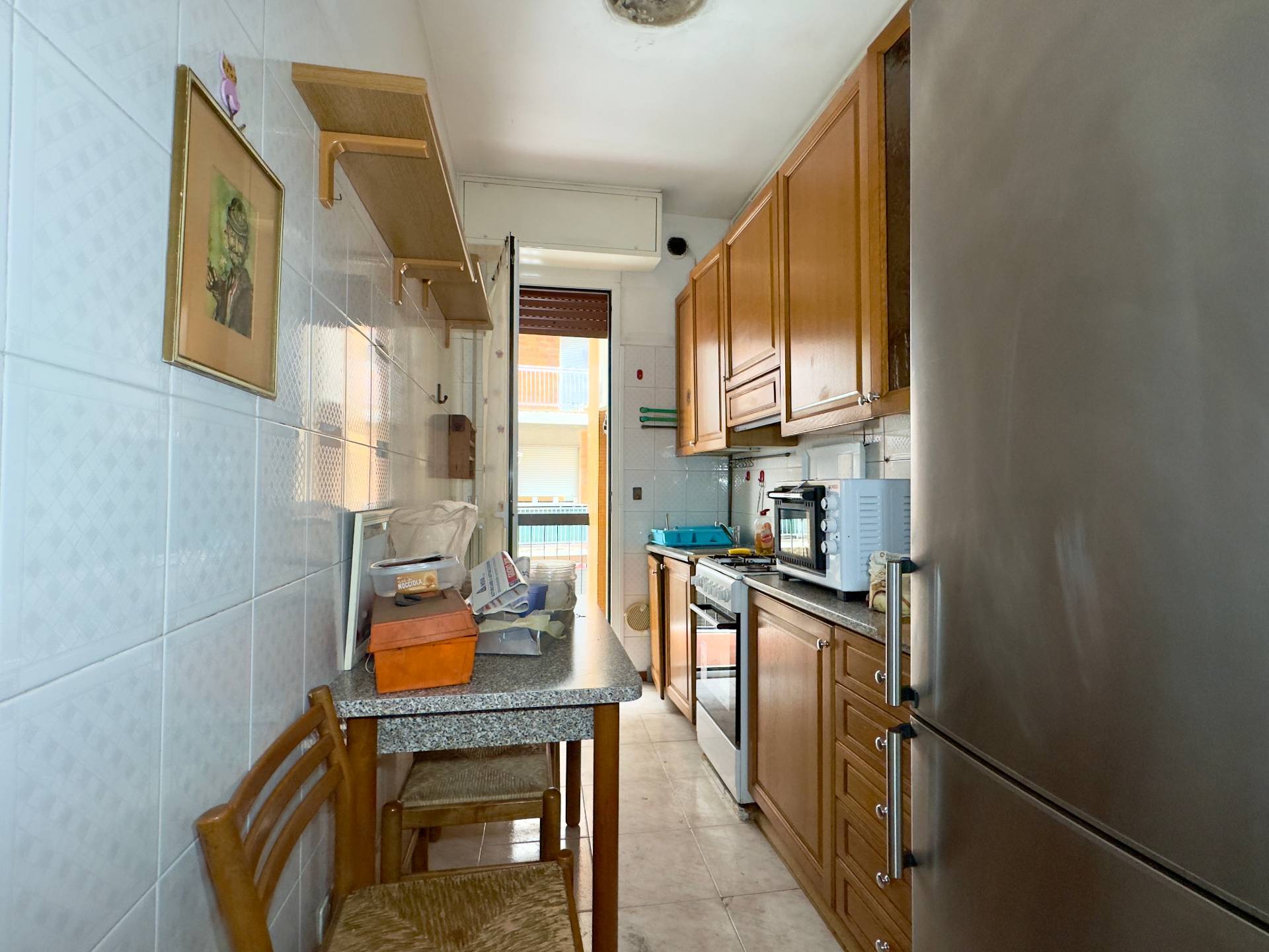 L´ingresso si apre su un disimpegno che conduce ai diversi ambienti della casa. Sulla destra si trova il soggiorno, ben proporzionato e facilmente arredabile, mentre proseguendo si accede alla cucina semi-abitabile, con uscita diretta sul balconcino che affaccia verso l´esterno dello stabile. Il bagno è finestrato e la camera da letto, di generose dimensioni, garantisce un´ottima disposizione degli arredi.