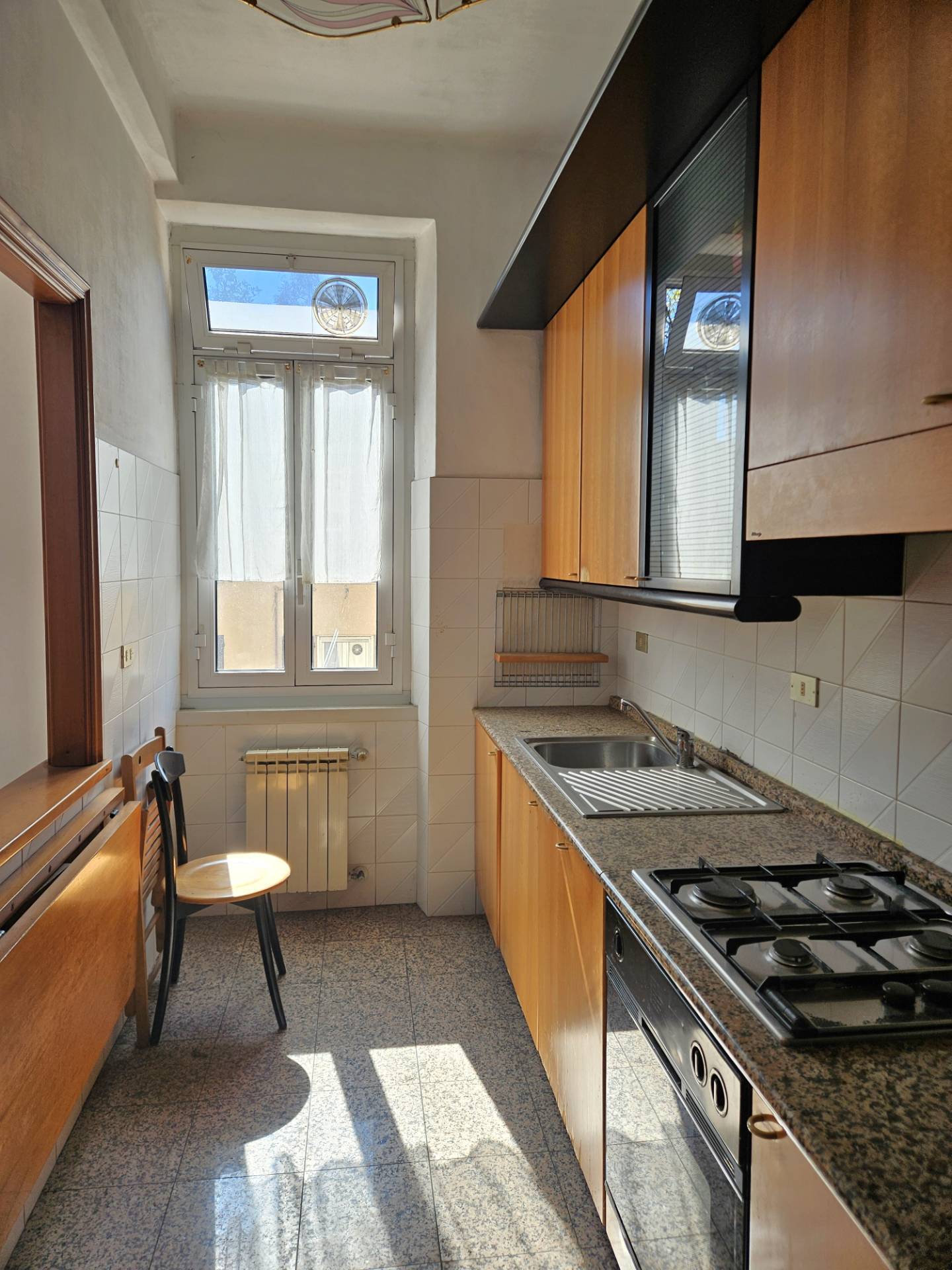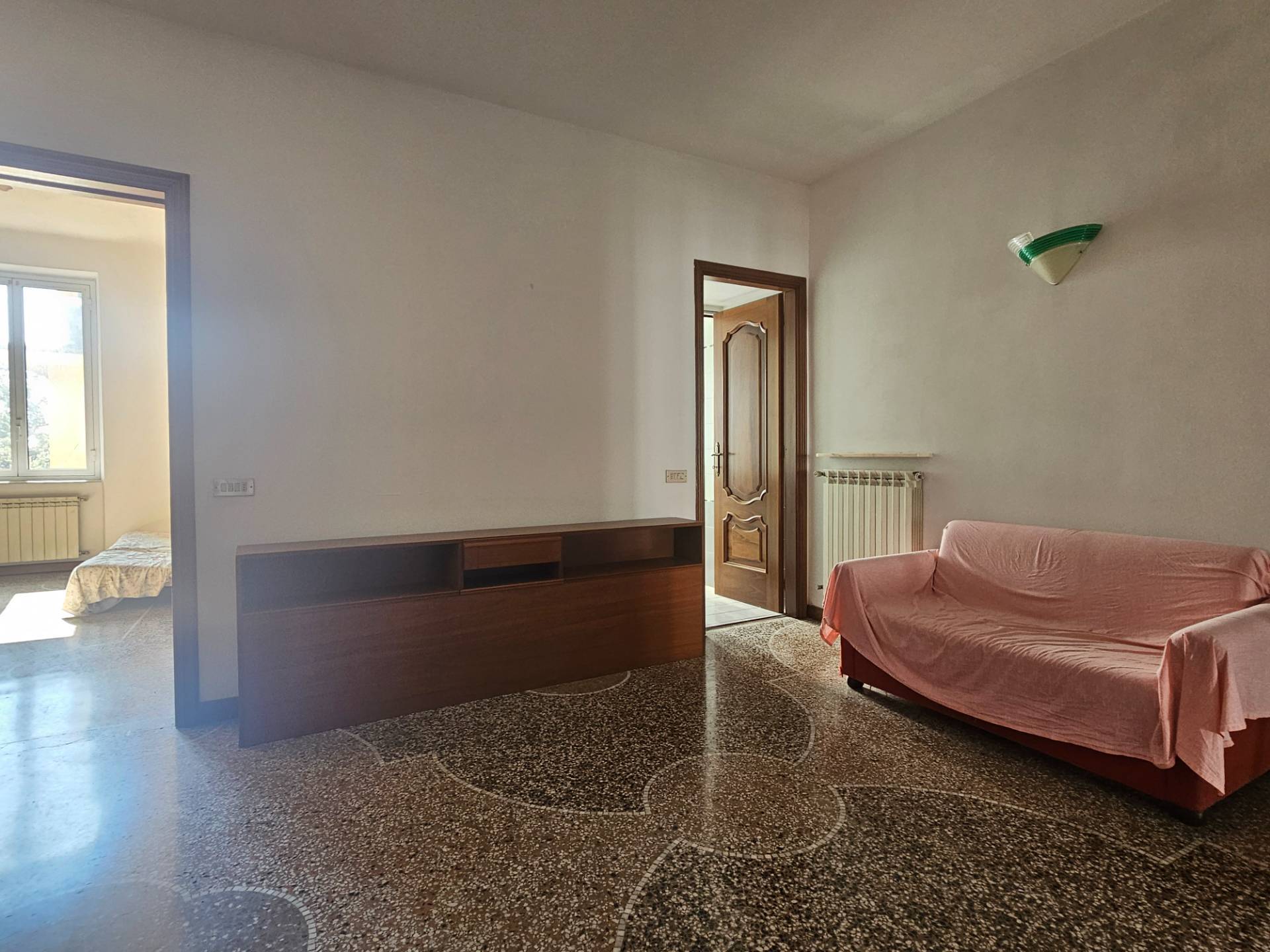 GENOVA DI NEGRO appartamento in vendita in Via Venezia, ampi vani 6,5 ordinati in posizione comodissima a 200 metri da Via Milano, Metro, Bus, Terminal Traghetti. Riscaldamento autonomo, buona e luminosa esposizione, basse spese di gestione. Interni ordinati composti da ingresso, cucinino e soggiorno, tre camere, bagno e ripostiglio.