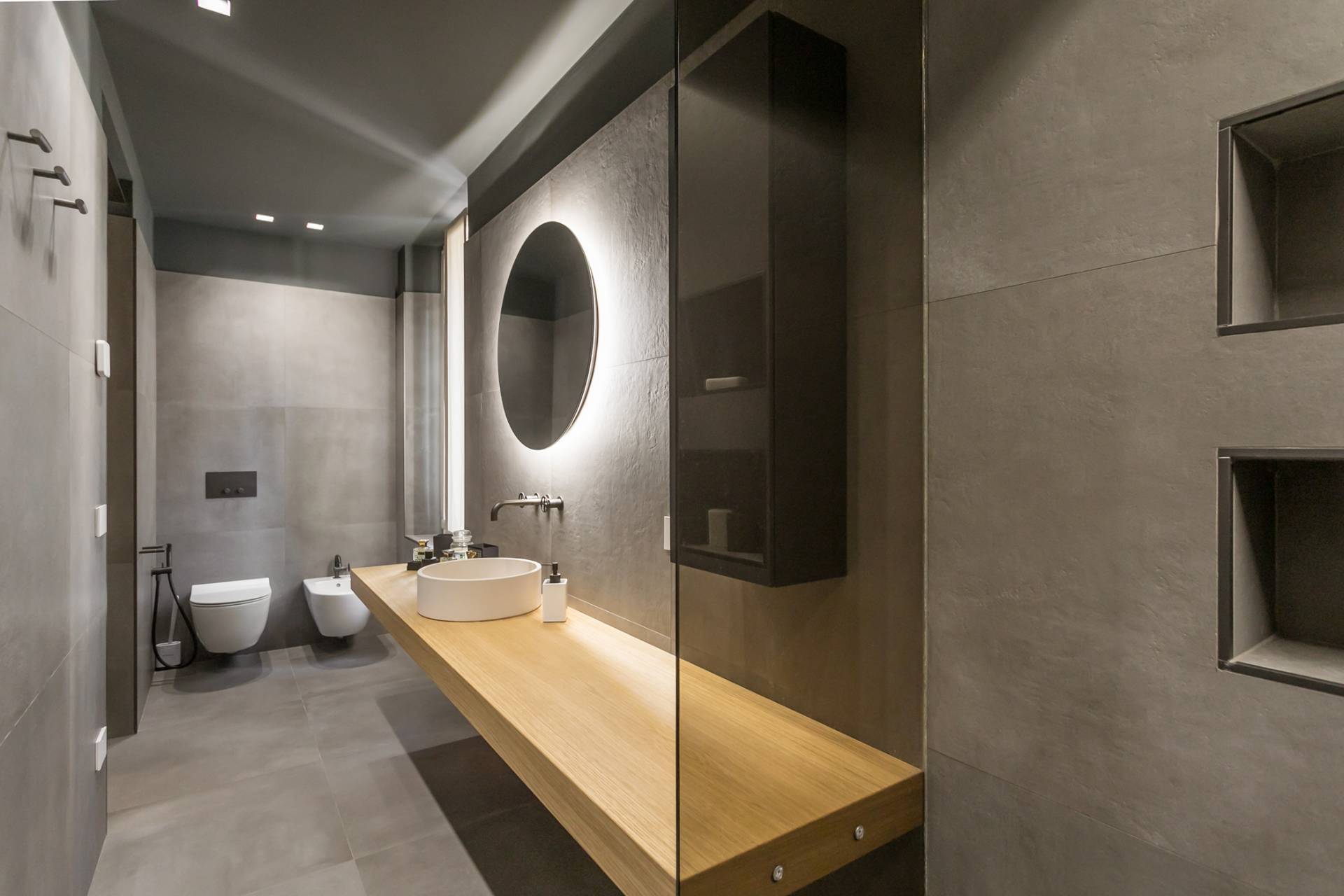 Trilocale di design con doppi servizi, terrazzo, box doppio e cantina in centro a Bergamo: