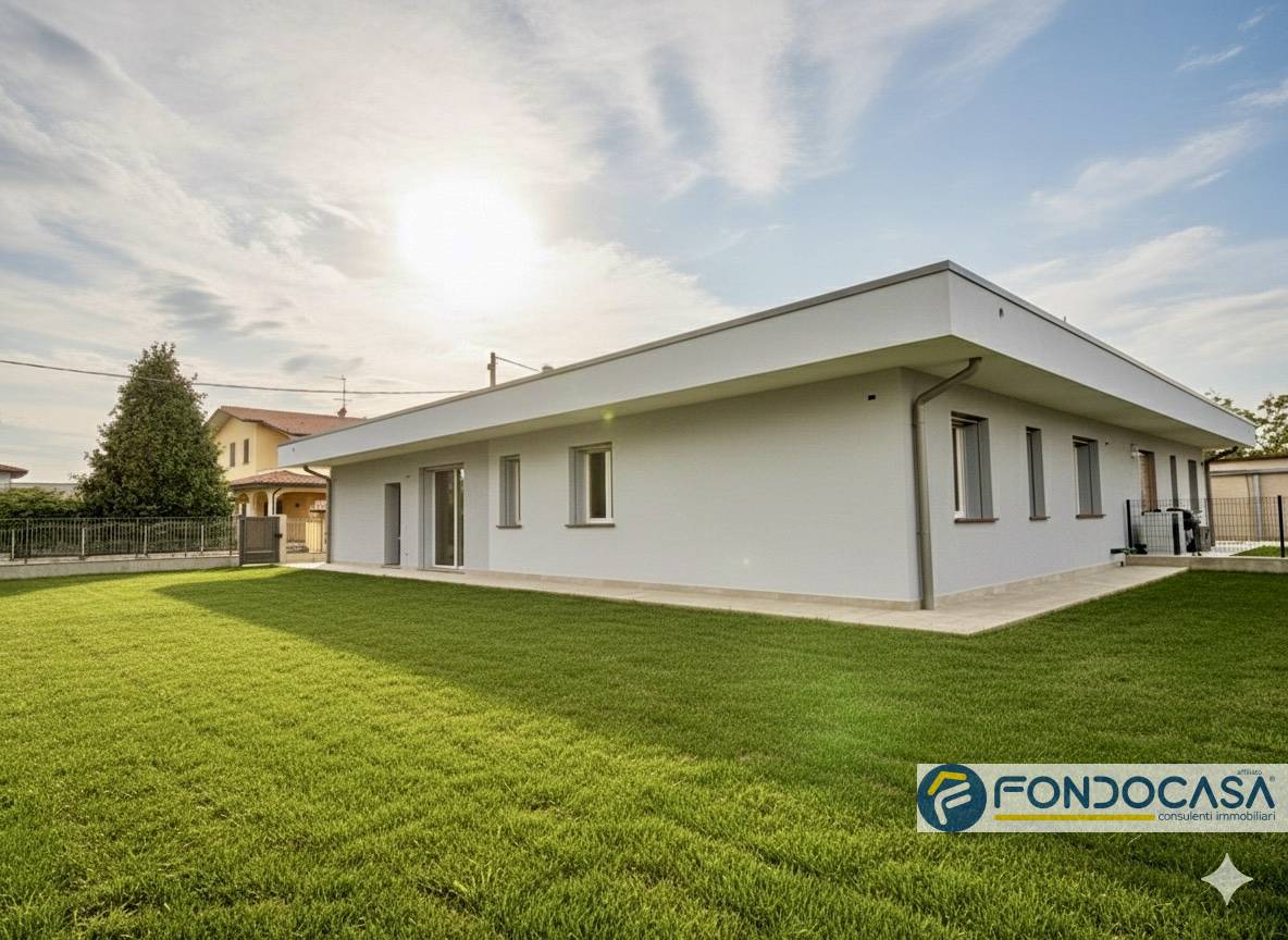 A chi desidera la casa nuova, a breve verrà pronta, indipendente villa bifamiliare su piano unico, 4 locali, doppi servizi, doppio garage, cortile e giardino privato, ancora possibilità di scegliere le finiture interne e la pavimentazione.