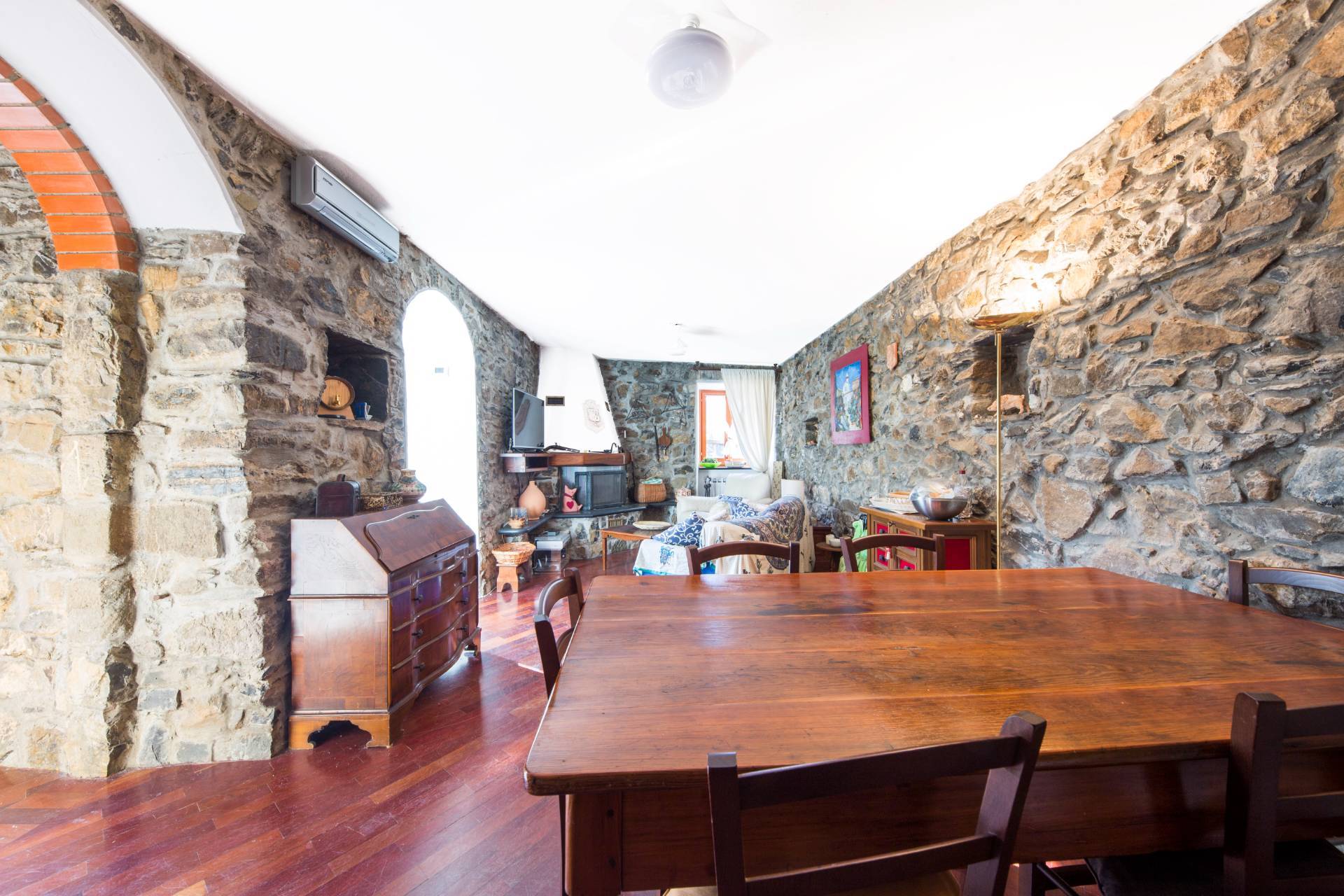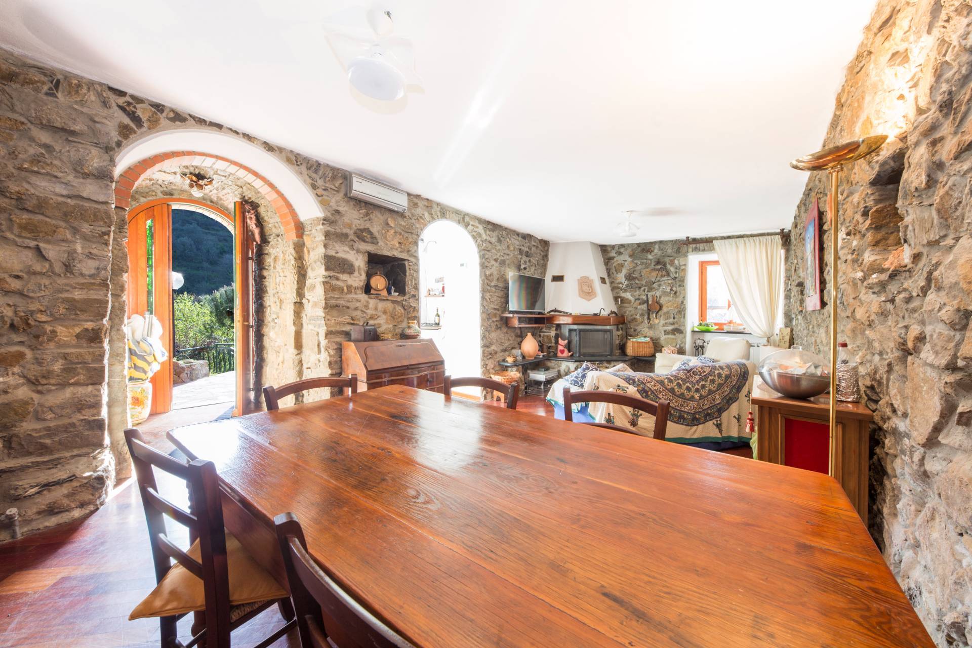 A 7 minuti in auto dal mare ma al contempo lontano dal traffico e dalla confusione, in località Tessi, caratteristico borgo sulle alture di Moneglia; all'interno di una bella casa semindipendente appena rifatta in tutte le parti comuni proponiamo: graziosissimo e caratteristico appartamento su due livelli con annesso grande spazio esterno distribuito in un terrazzo di circa 45 mq parzialmente piastrellato, 2 fasce di giardino per un totale di circa 130 mq e un terrazzino al secondo piano di circa 10 mq. Questi spazi esterni sono godibili e permettono di poter organizzare feste, grigliate, dilettarsi nella cura di un bell'orto biologico e concedere il giusto spazio ai nostri bambini e ai nostri amici animali. All'interno l'immobile si presenta in buone condizioni manutentive, ed è composto da un bel soggiorno d'ingresso, dotato di un caminetto che conferisce un certo fascino a questa zona, all'interno della quale è stata ricavata una piccola zona cottura; sempre al piano terreno troviamo il primo dei due bagni a servizio della zona giorno. Proseguendo attraverso una scala a chiocciola si accede al secondo piano dove è collocata la zona notte, composta da due camere matrimoniali, un bel bagno e con accesso ad un terrazzino di circa 10 mq. Nell'insieme l'immobile si presenta armonioso ed accogliente. La posizione permette di arrivare in pochi minuti d' auto o scooter nel centro di Moneglia ma di poter rientrare soprattutto nella stagione estiva al fresco del piccolo borgo di Tessi. La proprietà ha incluso nel prezzo un utilissimo posto auto collocato ad 1 minuto a piedi dalla casa, è altresì incluso nella proprietà una comoda cantina adiacente l'immobile. L'immobile non ha accesso carrabile ma grazie al posto auto nelle immediate vicinanze, risulta essere ugualmente comodo percorrendo una piccola porzione di strada a piedi. Non resta che vederlo dal vivo ve ne innamorerete.....