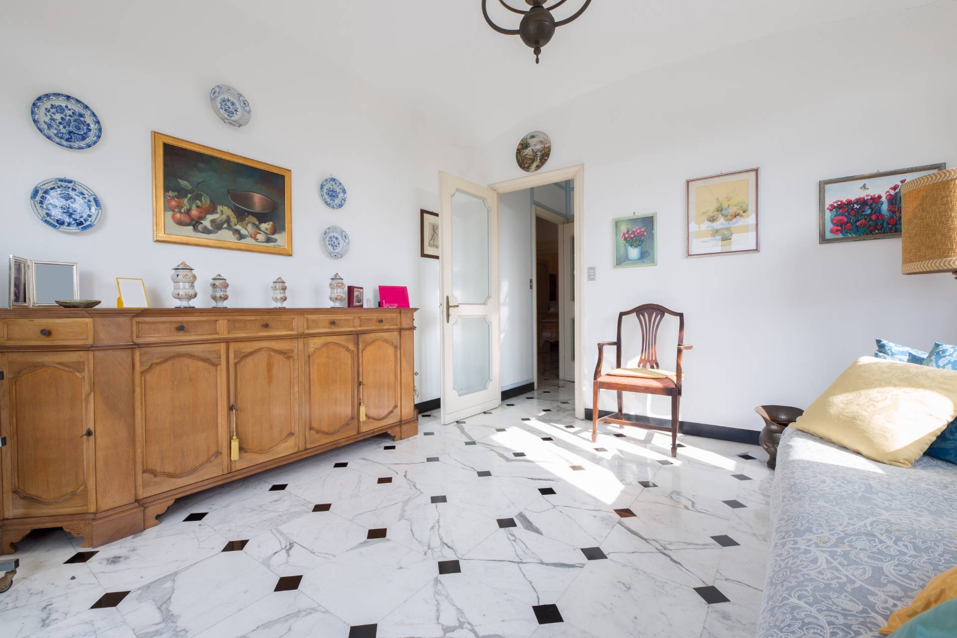 Nell' elegante e centralissimo quartiere di Nervi, e precisamente in Piazza Duca degli Abruzzi proponiamo vendita esclusiva elegante appartamento all'ultimo piano in prestigioso contesto. Rarità in zona, l' appartamento e' posto all'ultimo piano e gode di ottima esposizione a sud est ovest.