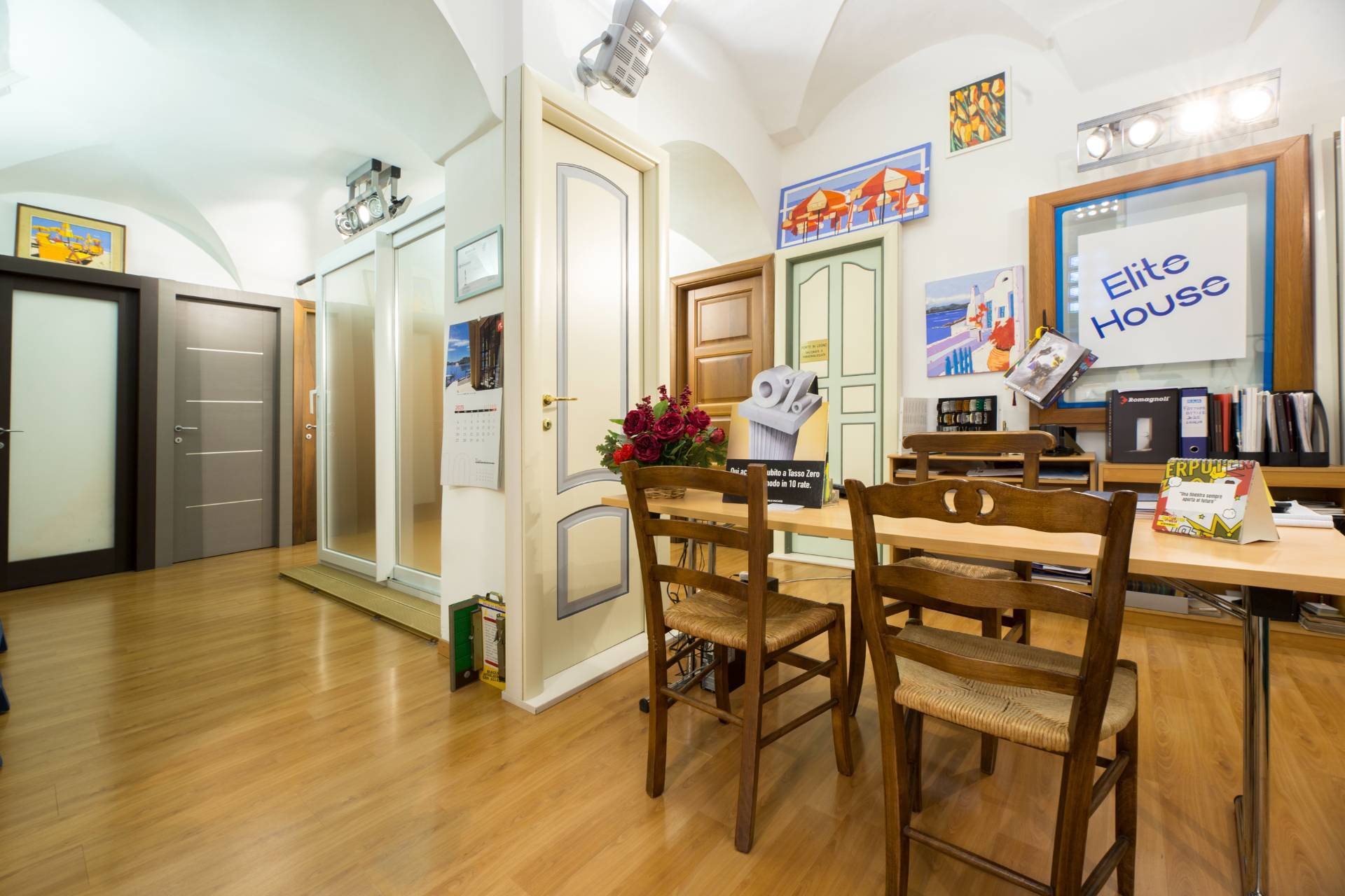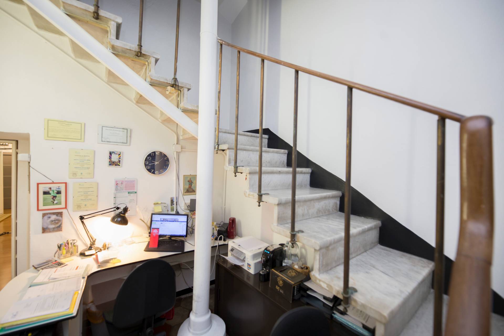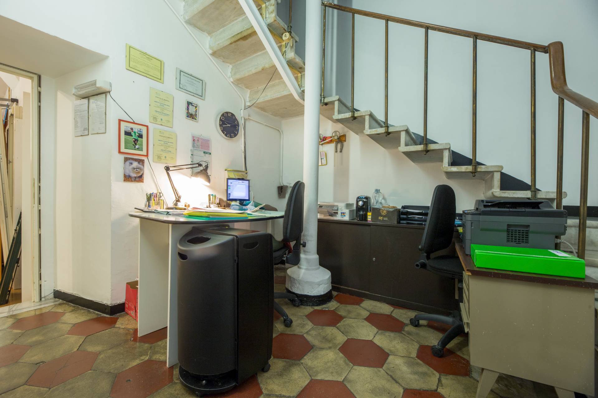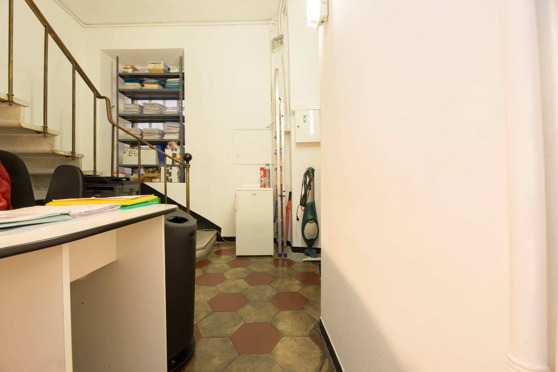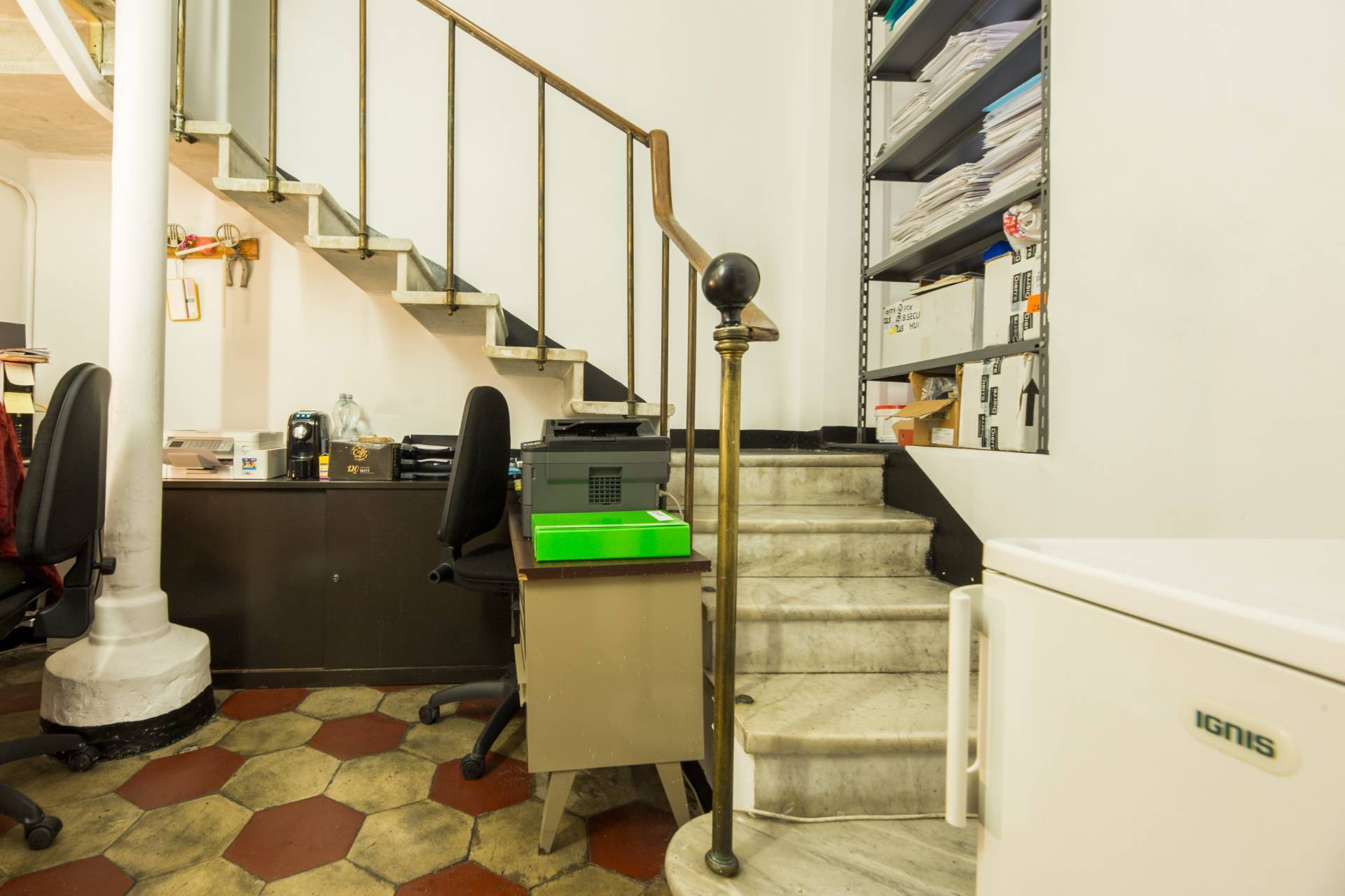 L'immobile per un totale di 120mq commerciali è composto da ampio ingresso in zona vendita con vetrina, locale uso segreteria/ricezione clienti, accanto locale uso ufficio collegato a una scala che porta al piano superiore in cui troviamo disimpegno e bagno, altra scala sempre dal locale uso ufficio che porta al piano sottostante in cui è presente un grosso locale ideale come utilizzo magazzino di ca 60mq.