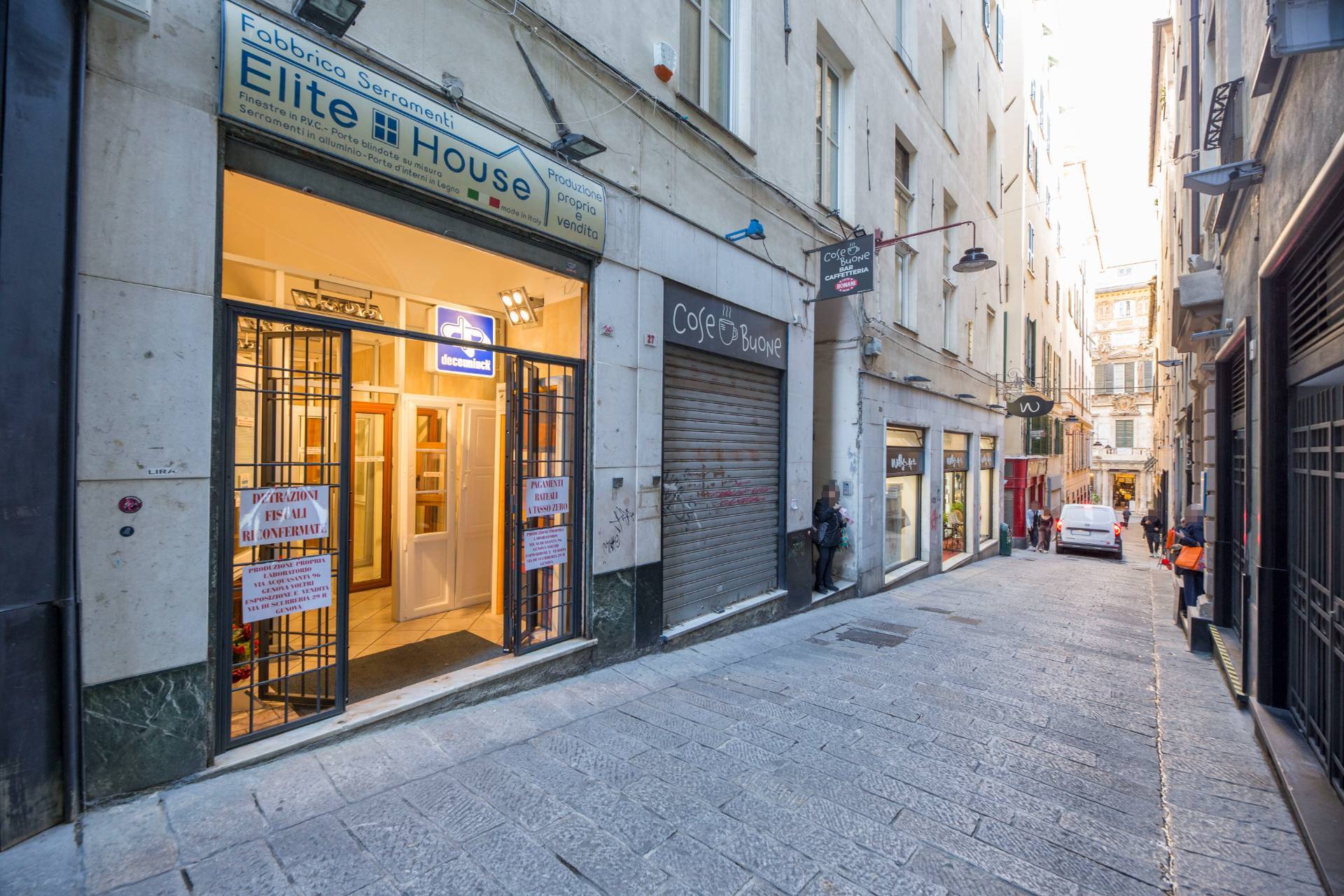 Nelle immediate vicinanze di Via San Lorenzo e Piazza Campetto, in zona di fortissimo passaggio proponiamo locale commerciale su più livelli con vetrina su strada.