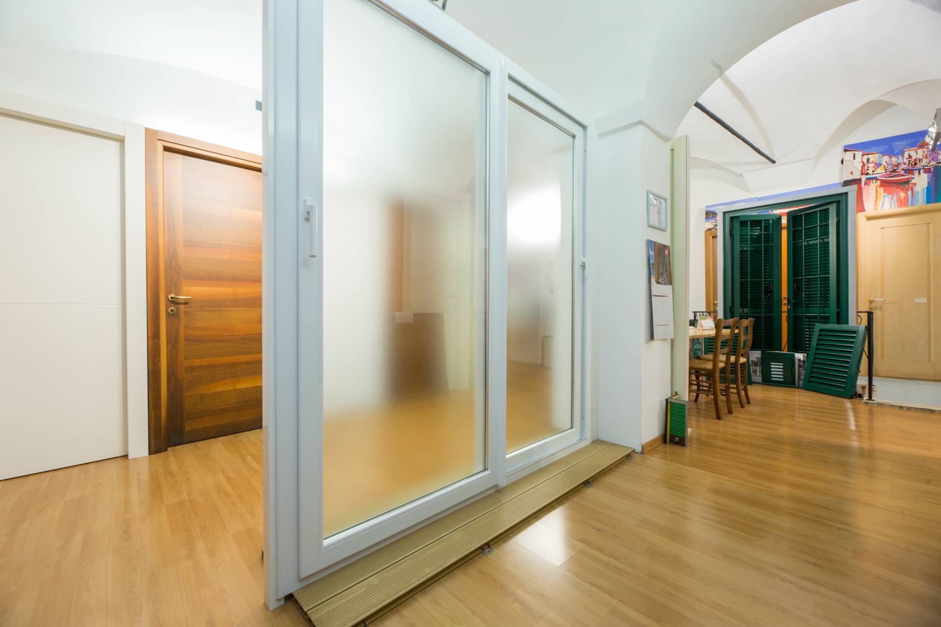 L'ingresso è provvisto di porta antisfondamento, serranda elettrica e inferiate.