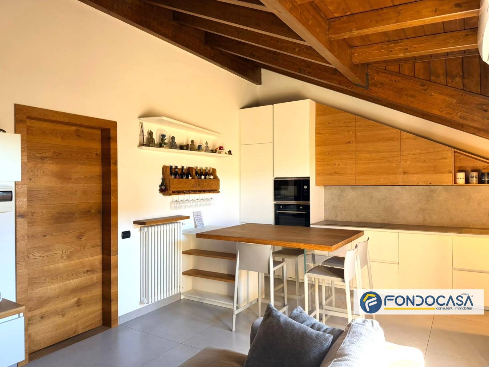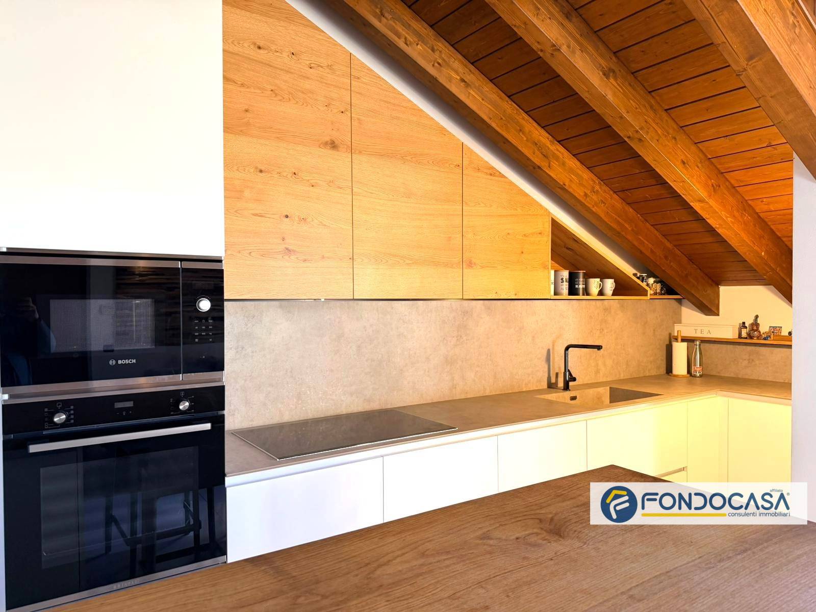 L'appartamento si apre su una luminosa zona living con cucina a vista di design, realizzata su misura, con accesso al grazioso balcone a pozzo ideali per momenti all´aperto.