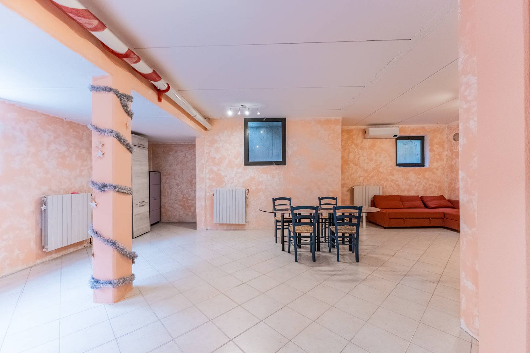 Per i momenti di convivialità, l'ampia taverna al piano interrato è lo scenario ideale. Grazie alle finestre a bocca di lupo che garantiscono luce e aria, questo spazio è perfetto per organizzare feste memorabili con gli amici, creare una palestra personale o semplicemente godersi un hobby in tranquillità.