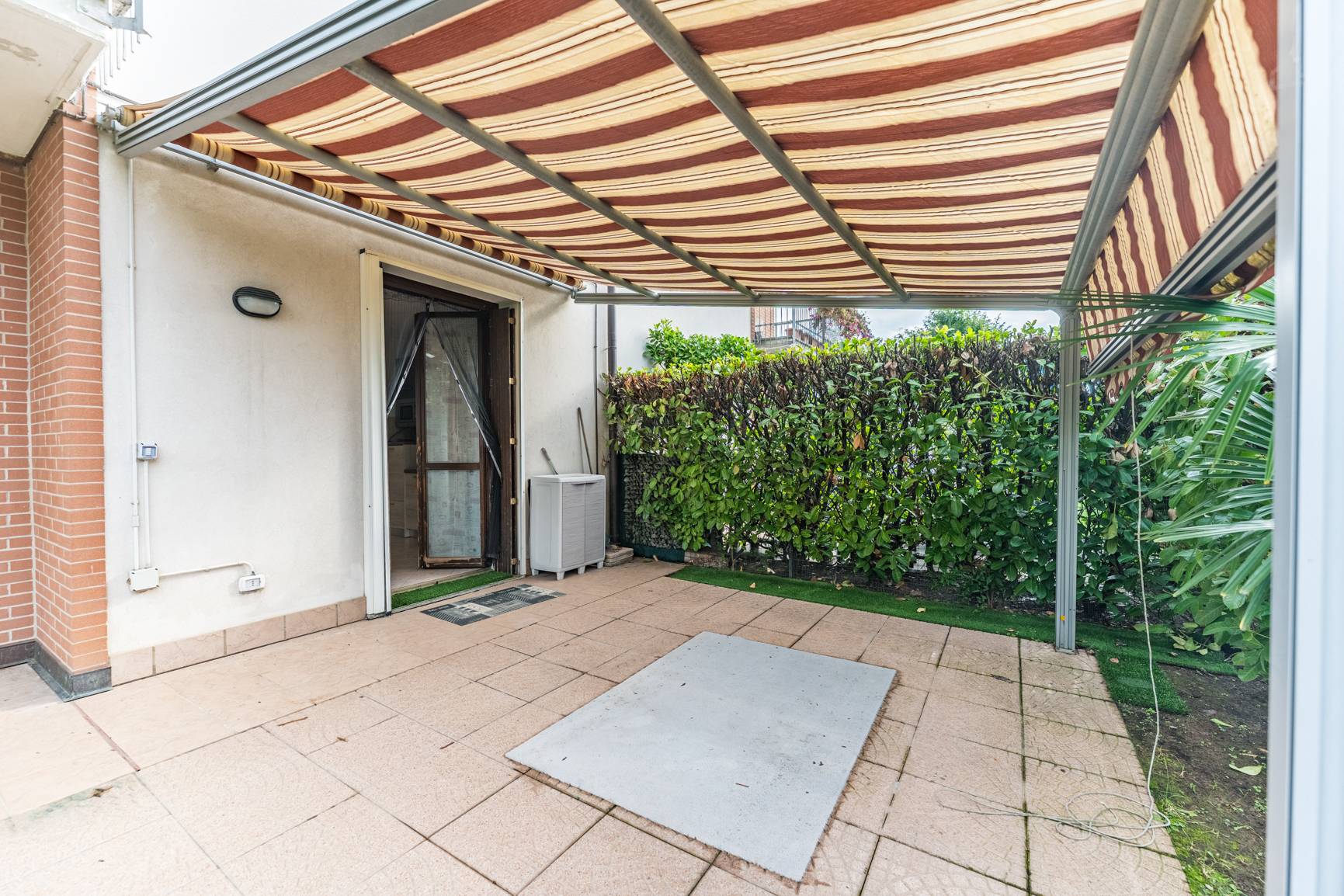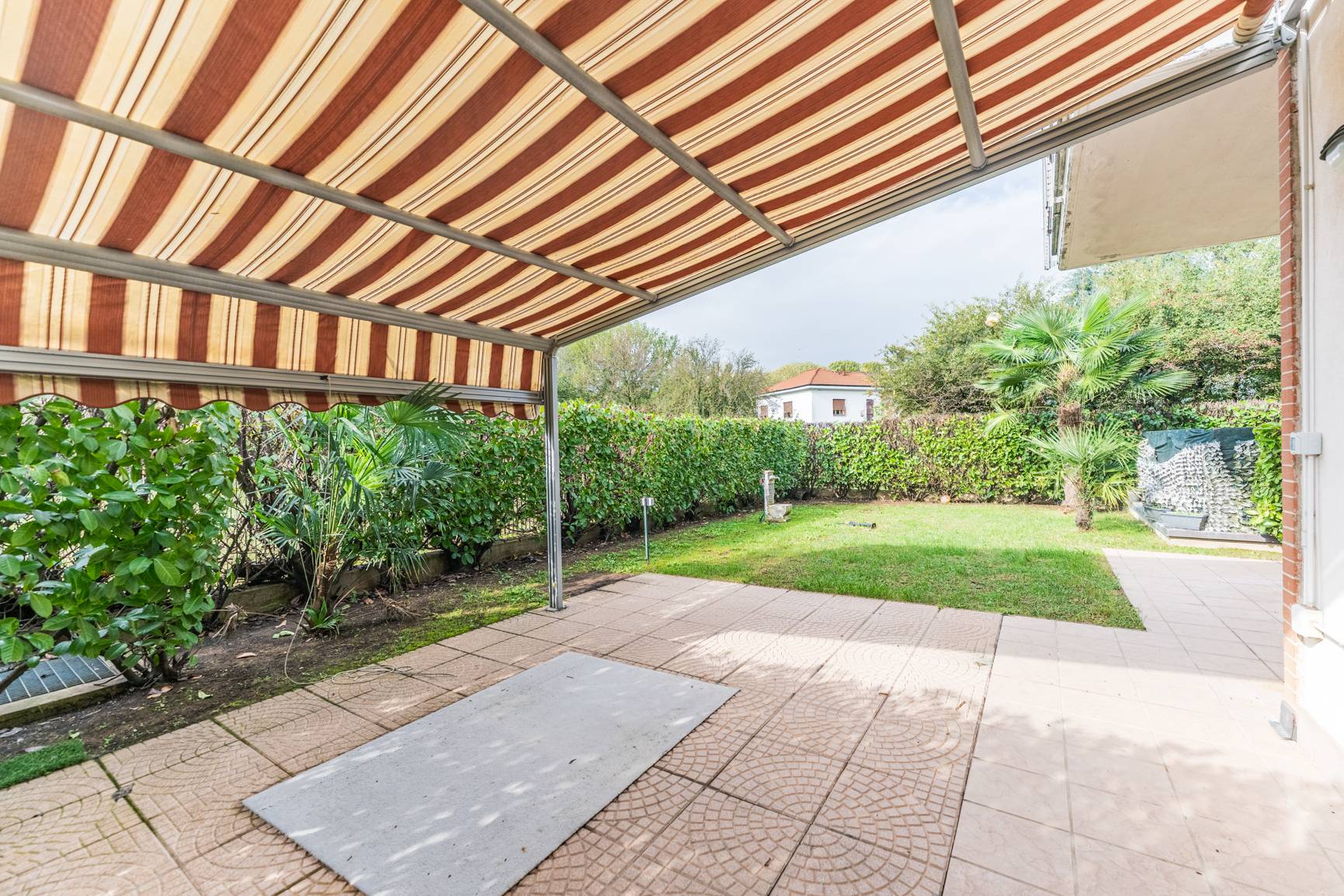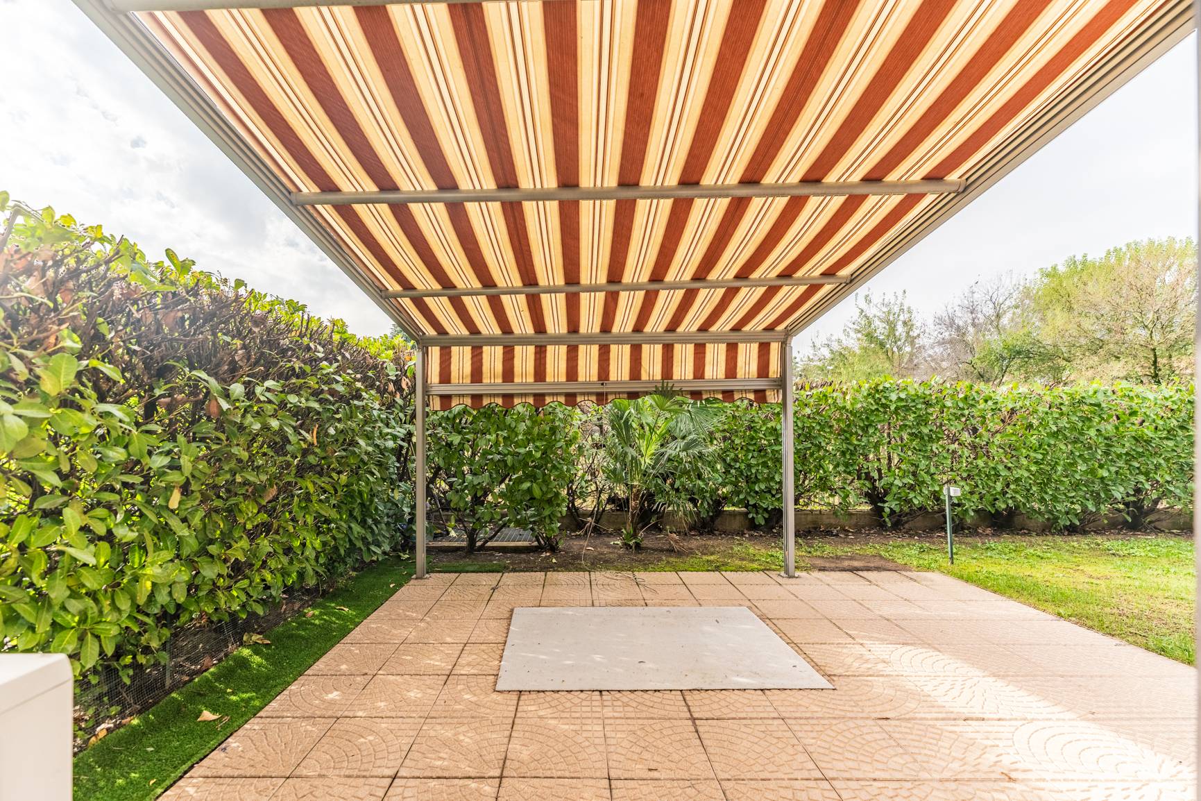 Da qui, potrai accedere al patio privato, un angolo speciale protetto da una tenda da sole automatica, perfetto per le colazioni all'aperto o per leggere un libro in totale relax, sempre connesso al verde del giardino.