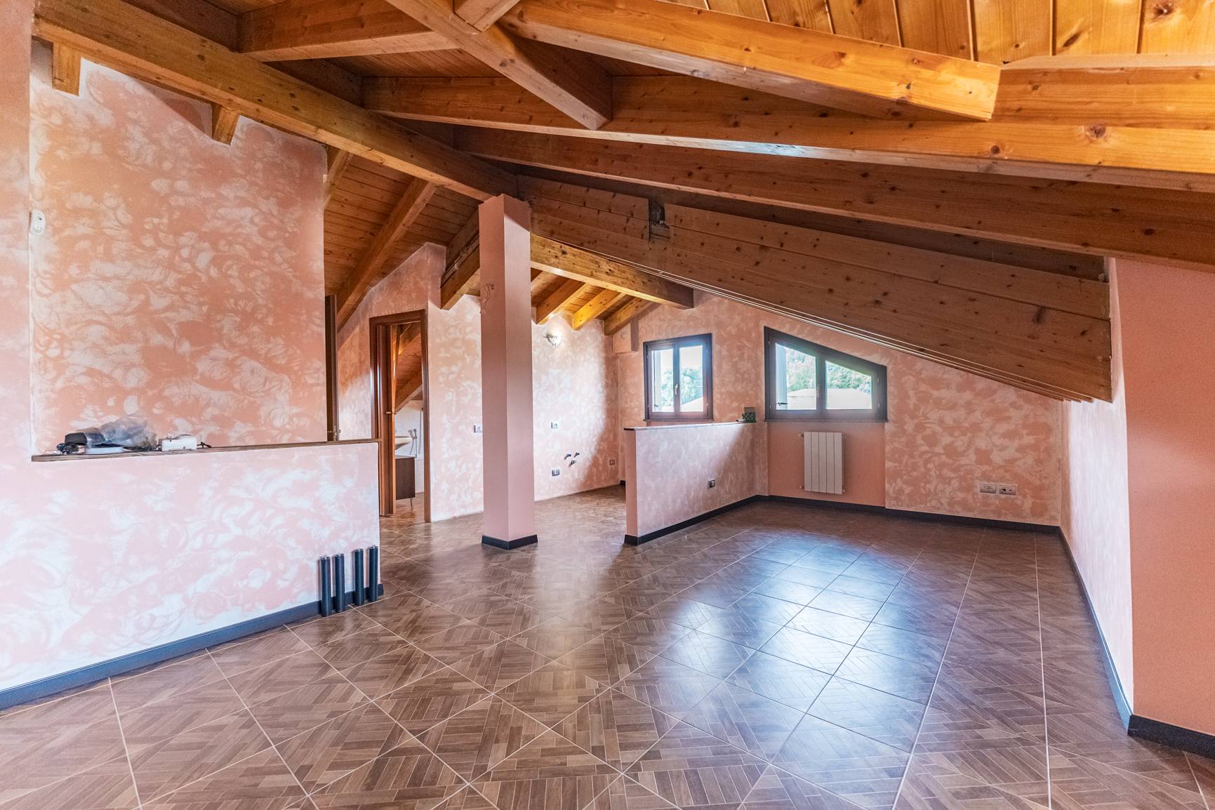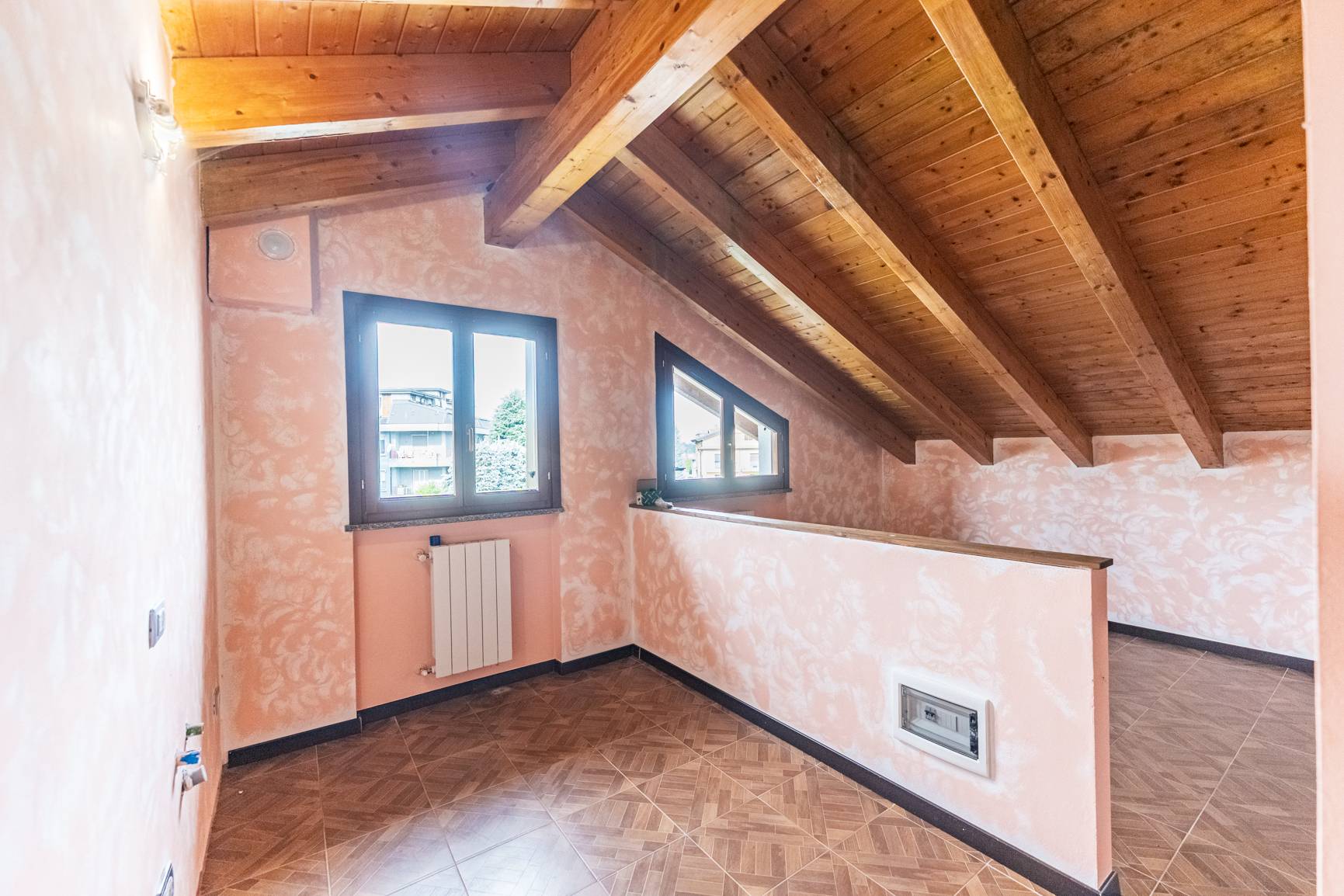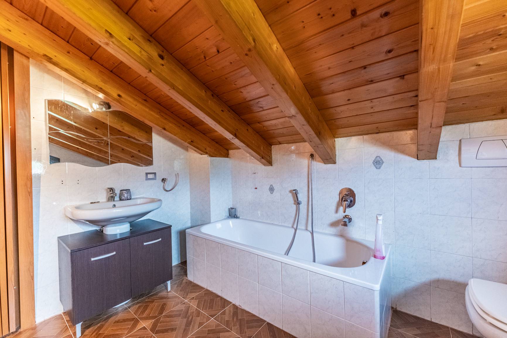 La mansarda è un vero e proprio spazio jolly: un ambiente versatile con una camera aggiuntiva e un'area open space che può trasformarsi in uno studio per il tuo lavoro, una sala cinema per la famiglia o un regno dei giochi per i più piccoli, il tutto servito da un terzo bagno dedicato.