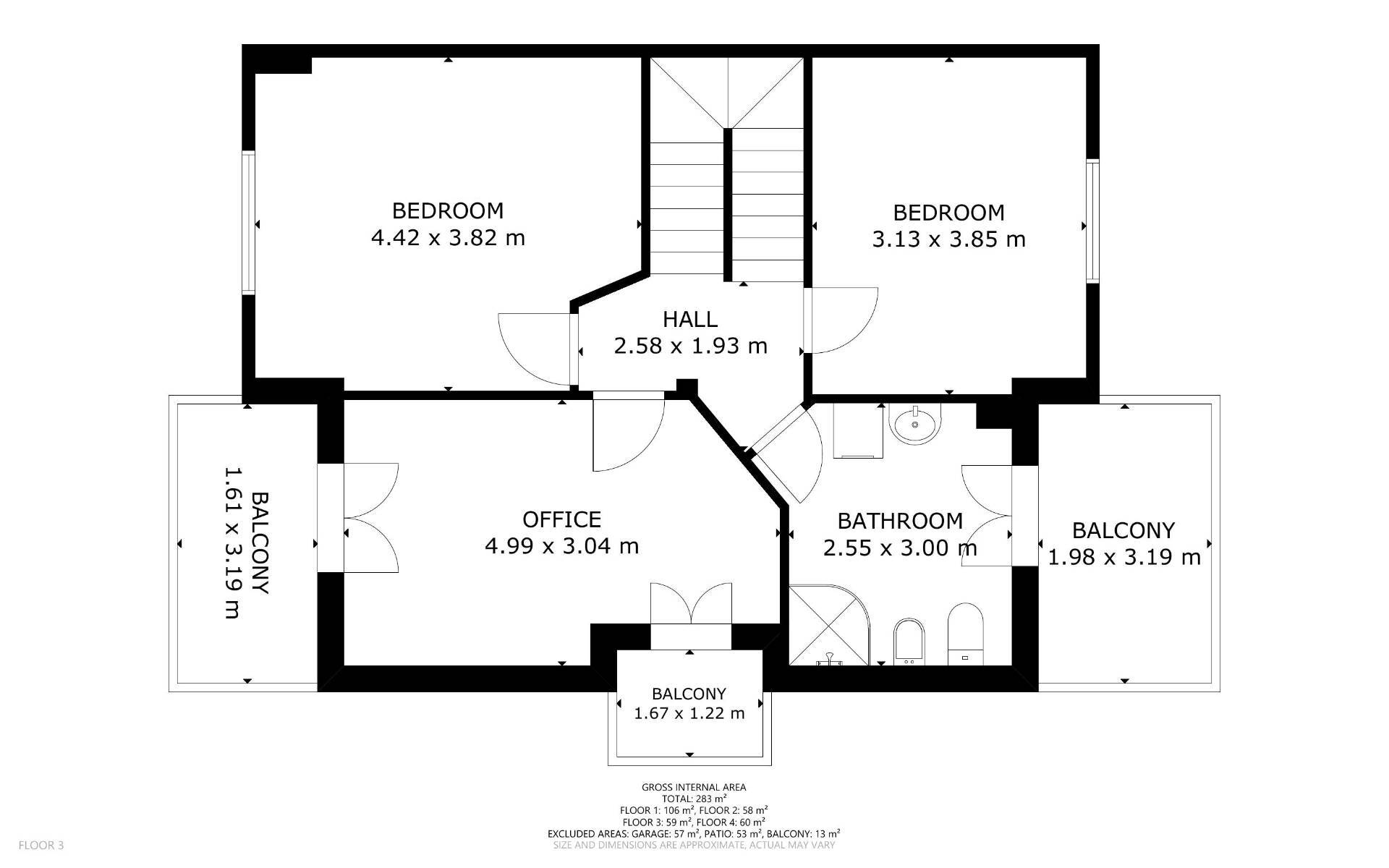 Tre camere da letto, ognuna impreziosita da un balcone privato, offrono spazi intimi e luminosi. Sarà bellissimo svegliarsi al mattino e godersi i primi raggi di sole dal proprio angolo privato.