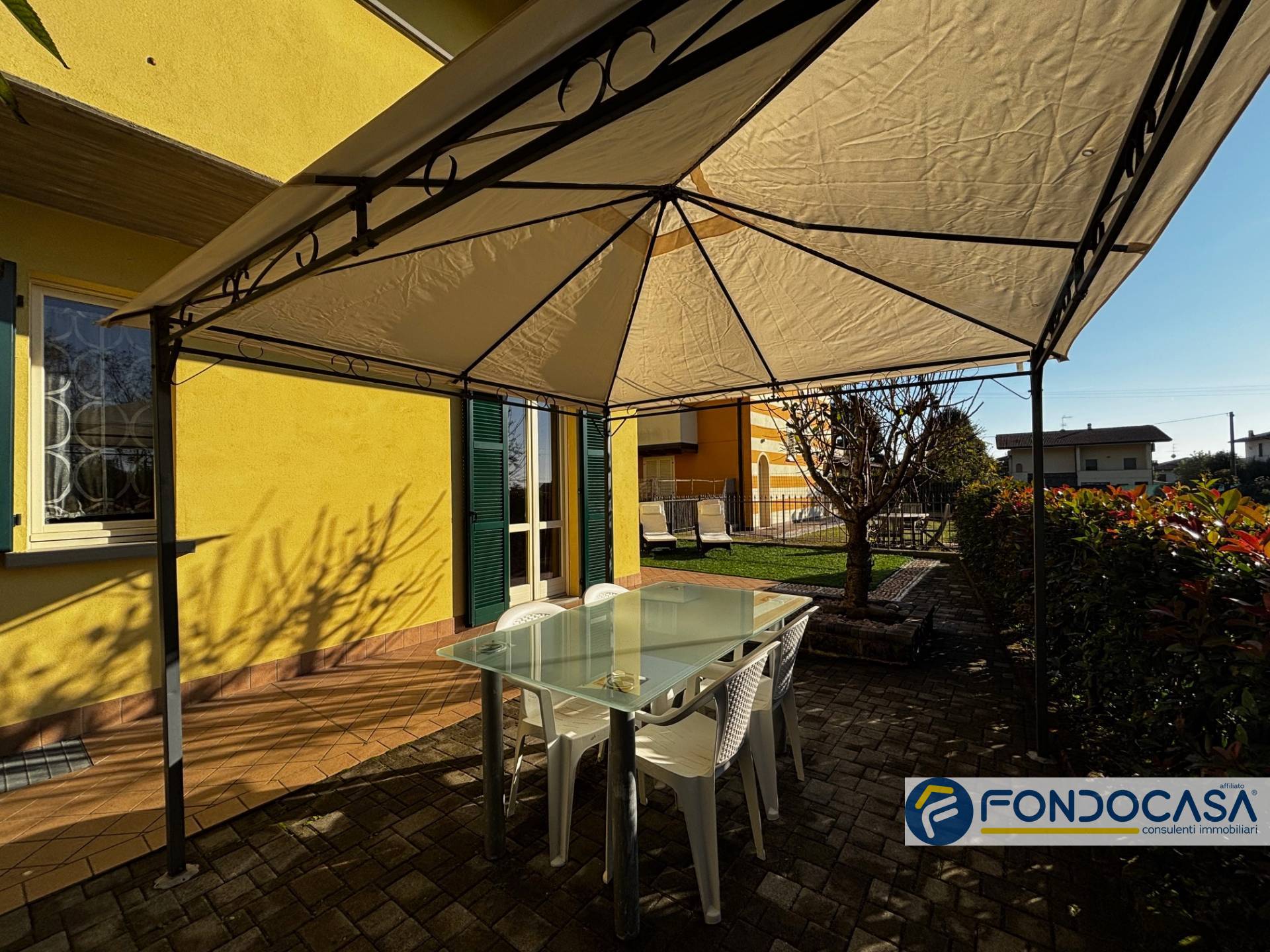 La soluzione è posta al piano terra con ingresso privato, importante giardino esclusivo piantumato adulto, zona gazebo,garage doppio in larghezza e lavanderia.