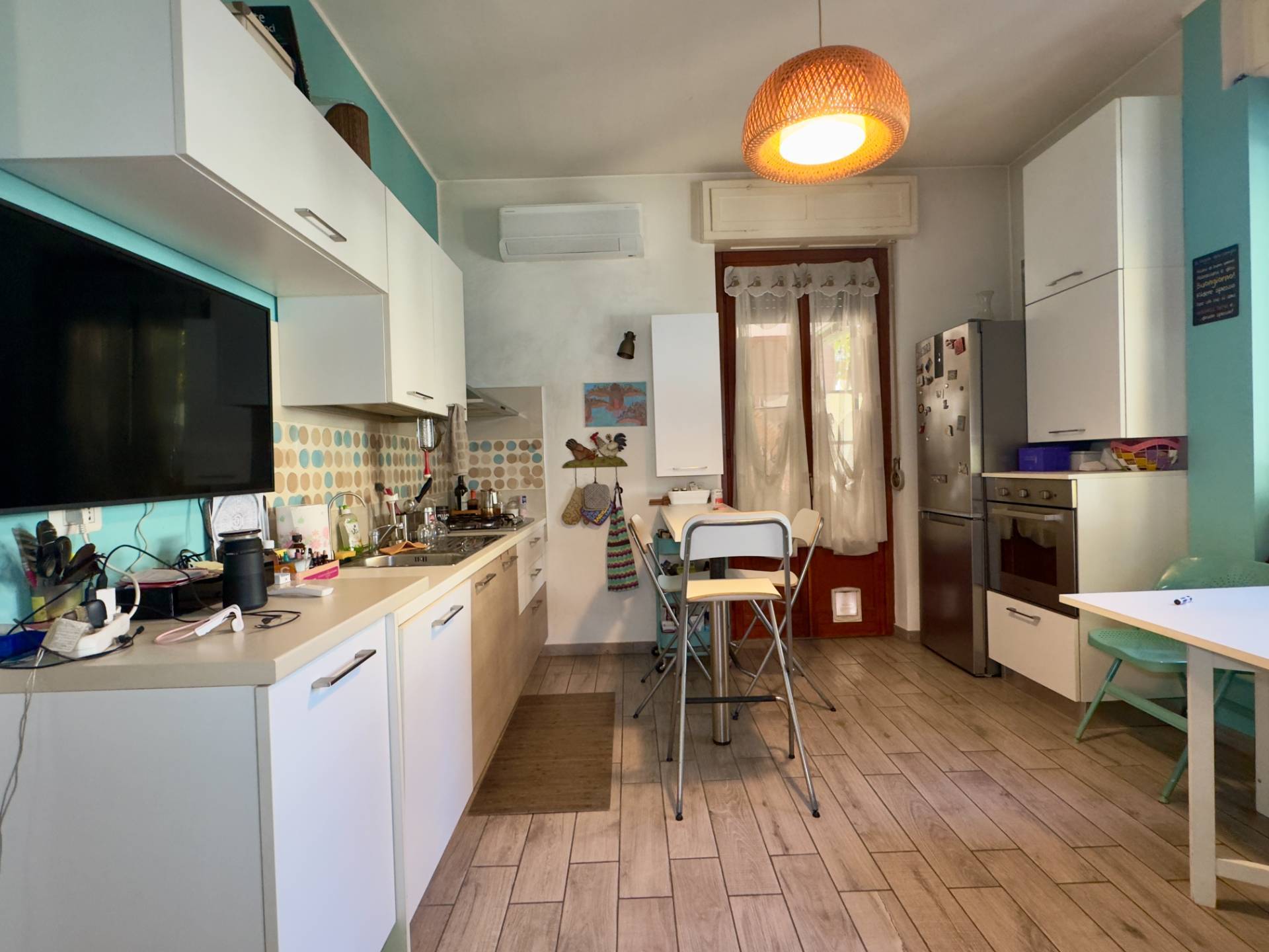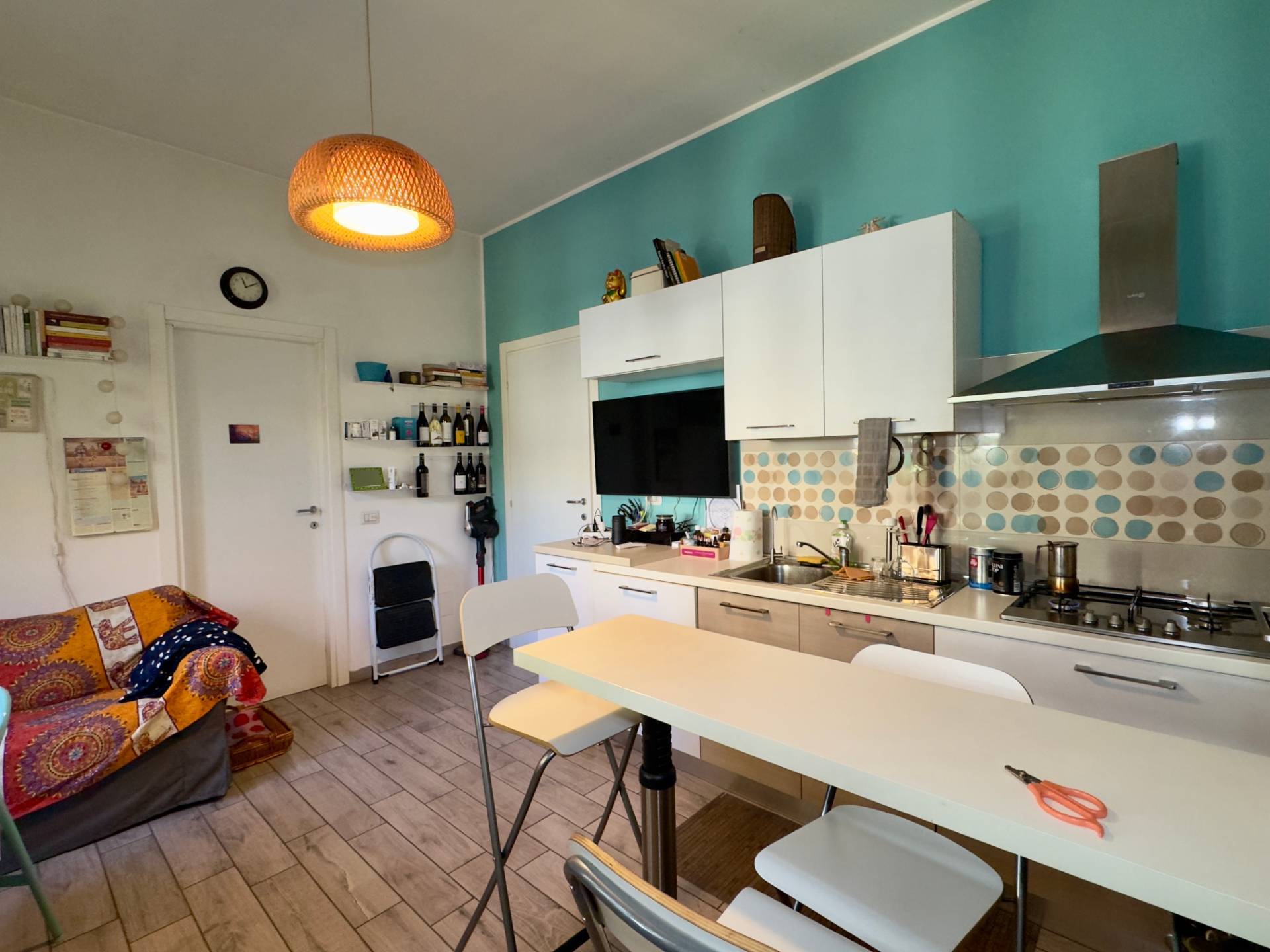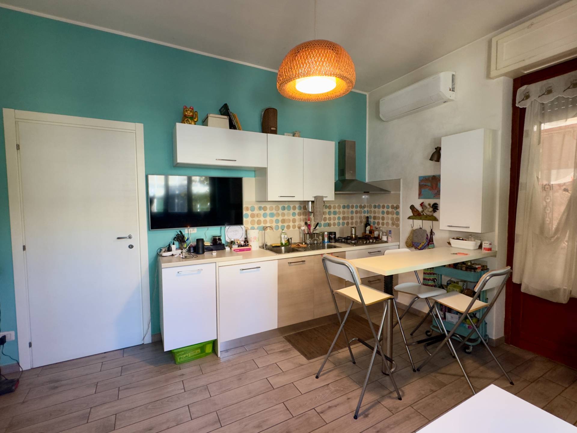 L'immobile è composto da ingresso, soggiorno con moderna cucina a vista e affaccio diretto sul terrazzo, camera da letto matrimoniale, cameretta e bagno con doppia finestra e cabina doccia.