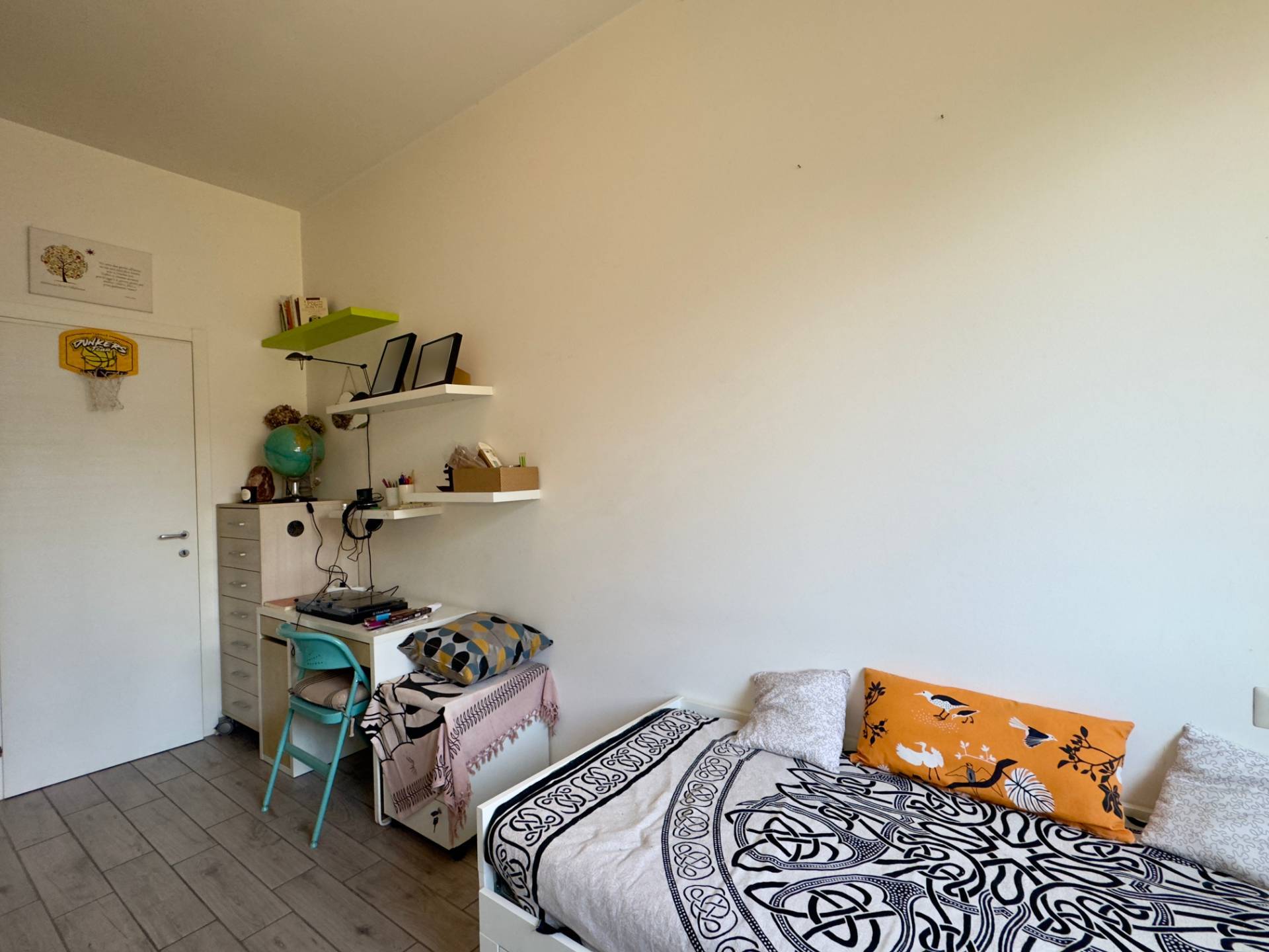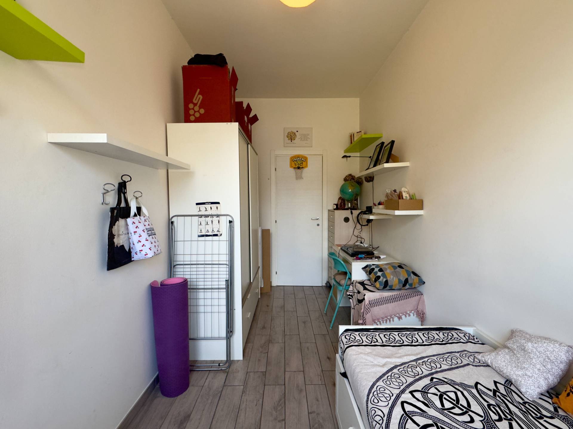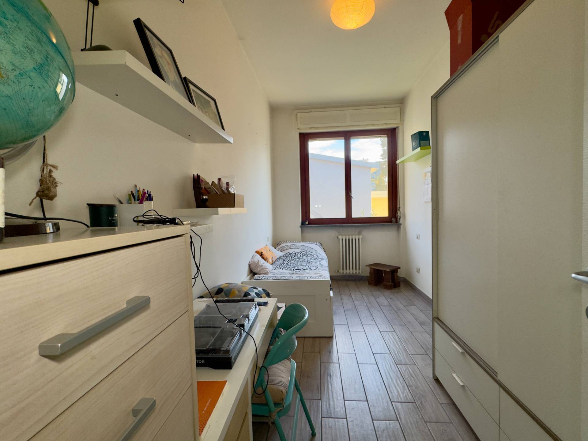 L'immobile è composto da ingresso, soggiorno con moderna cucina a vista e affaccio diretto sul terrazzo, camera da letto matrimoniale, cameretta e bagno con doppia finestra e cabina doccia.
