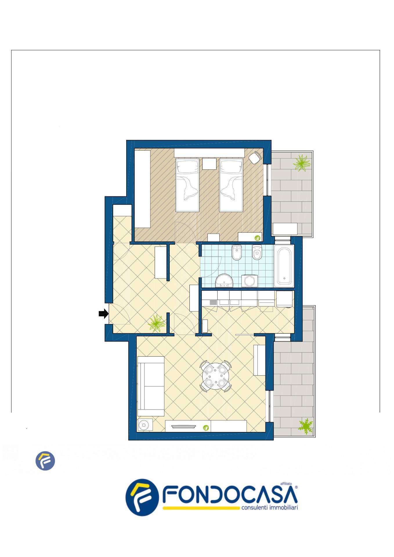 L´appartamento si distingue per i suoi spazi generosi e ben distribuiti: un ingresso ampio e accogliente, luminoso soggiorno, cucina con accesso a un terrazzino, camera matrimoniale con secondo terrazzino privato, e bagno finestrato.