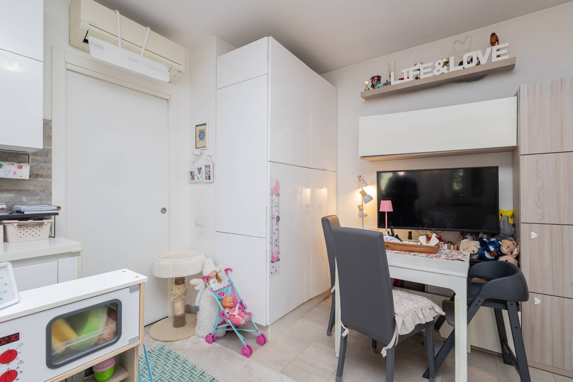 L'immobile si presenta luminoso e accogliente, internamente grazie ad una recente ristrutturazione e alle finiture di pregio risulta in ottime condizioni con pavimentazione in ceramica, infissi in pvc con doppio vetro e zanzariere, aria condizionata e impianto di allarme perimetrale.