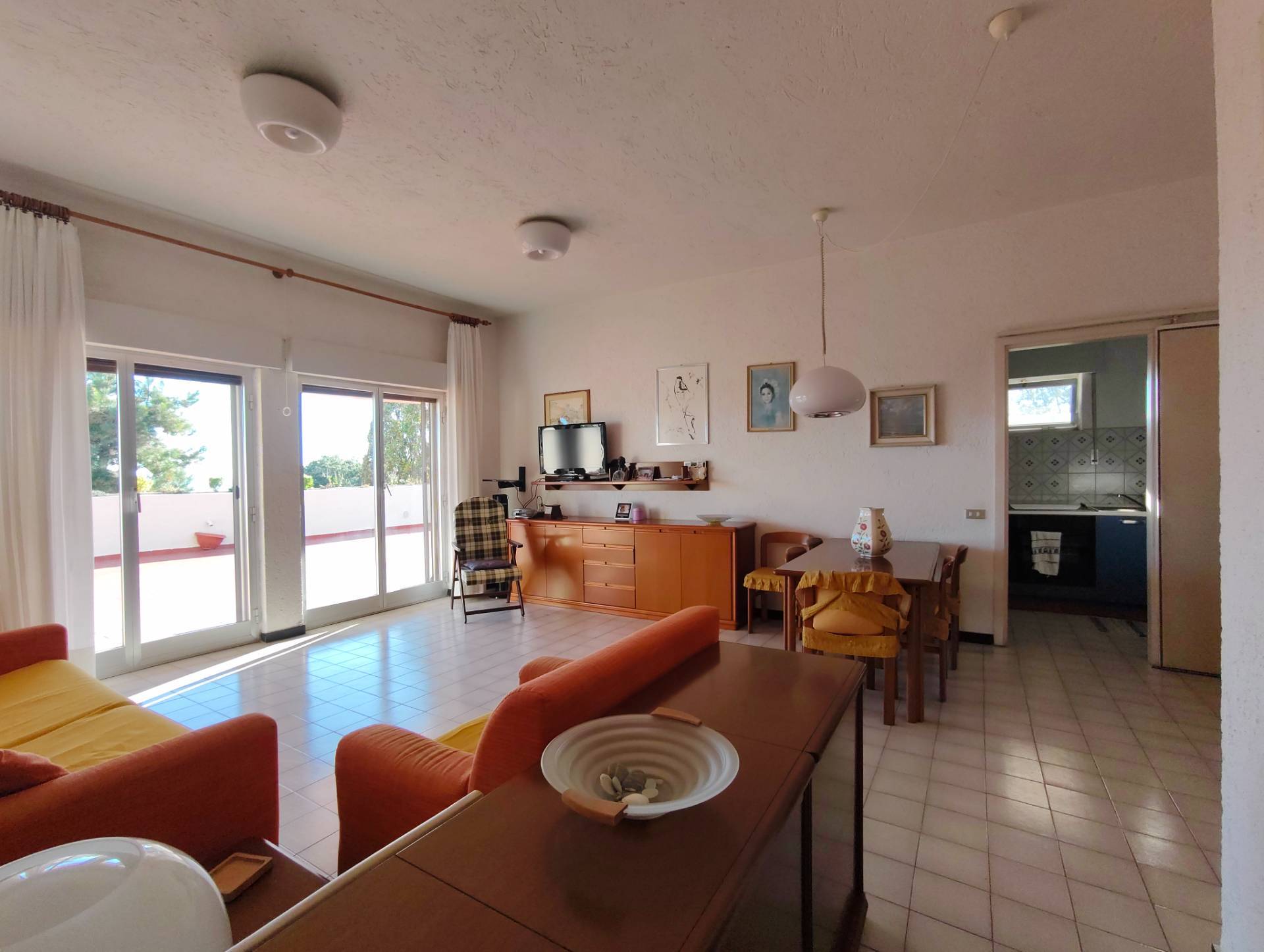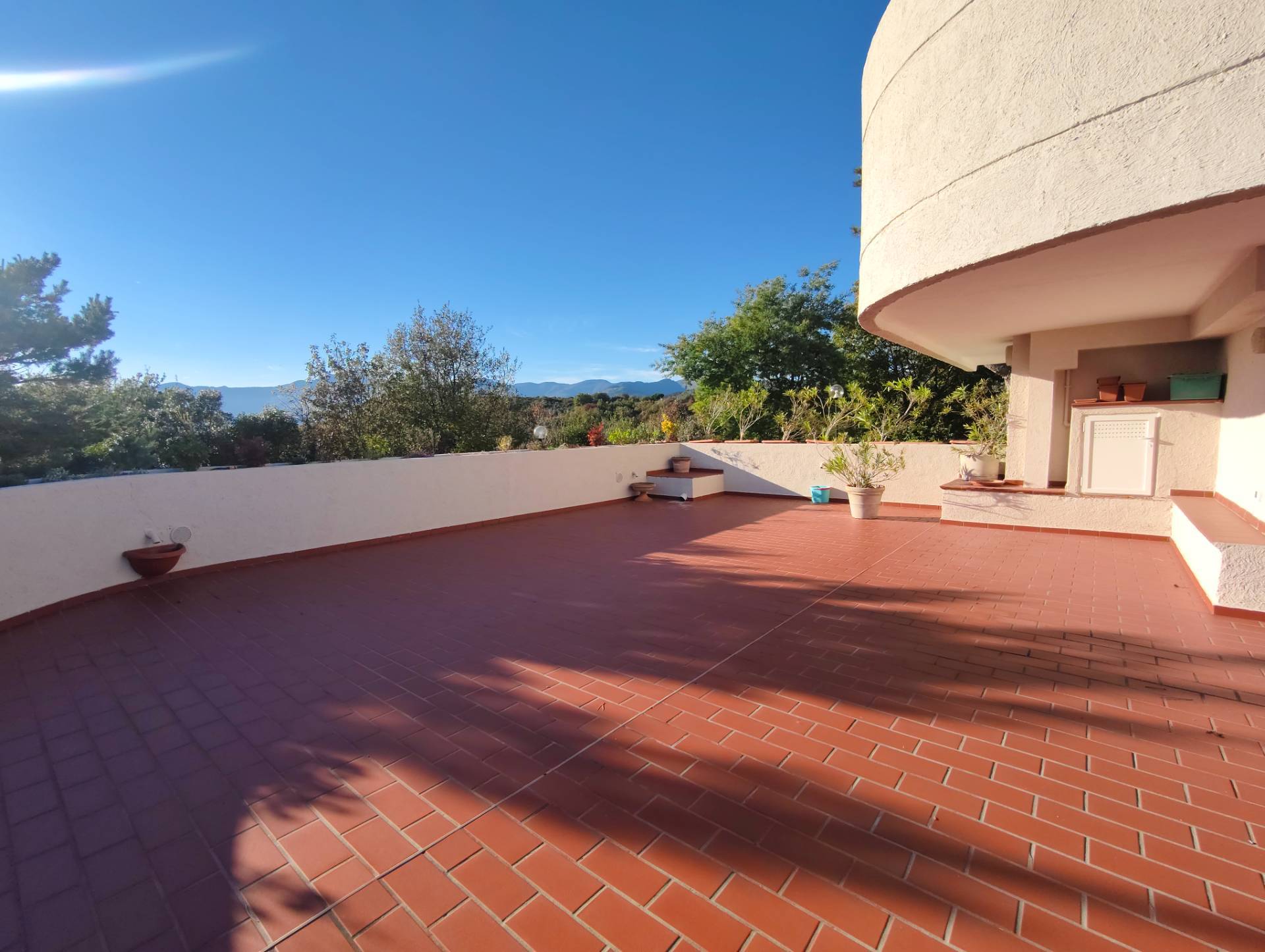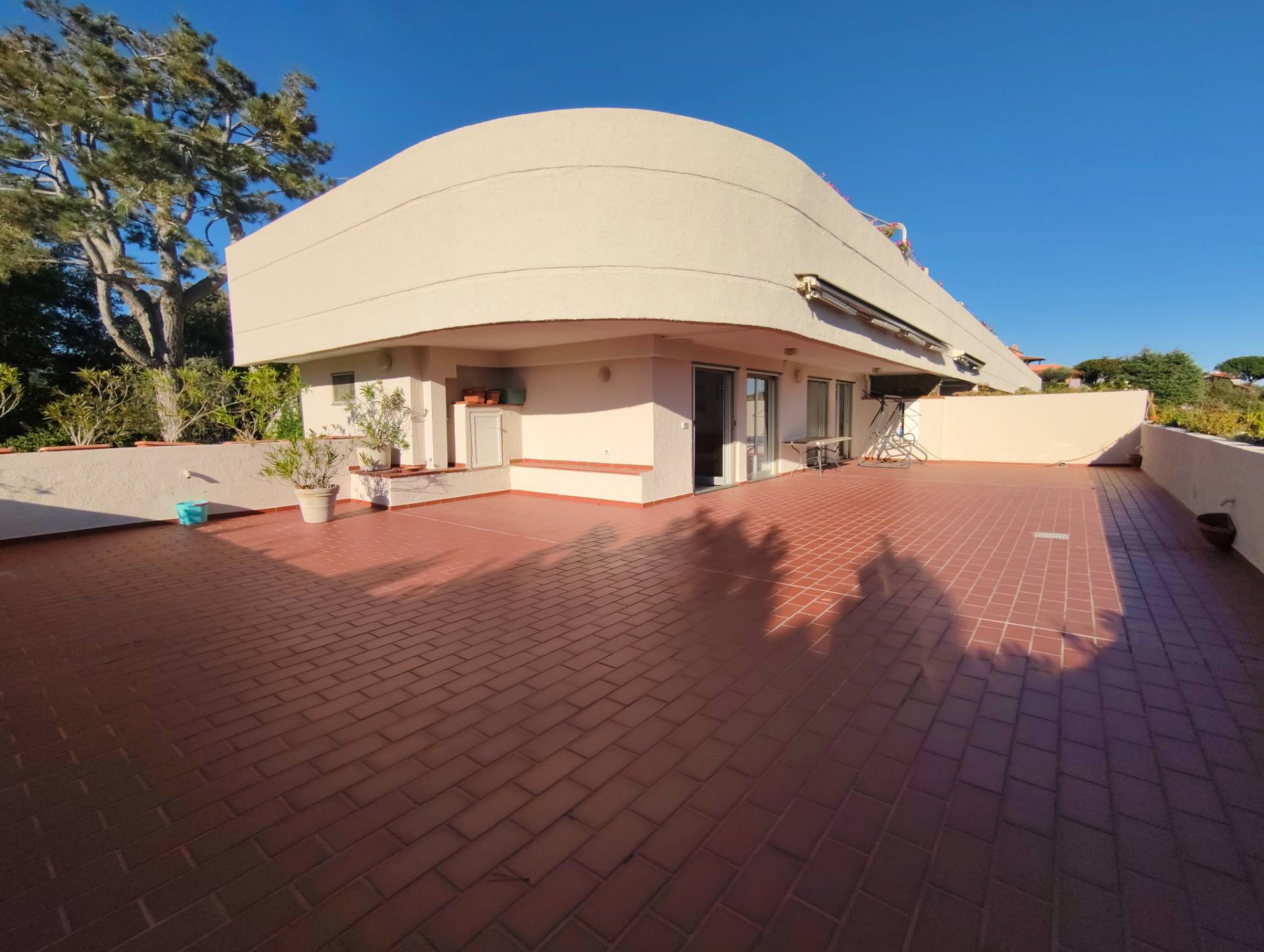 Situato in una zona tranquilla e immersa nel verde, il trilocale è composto da ingresso, luminoso soggiorno, cucinino, due camere da letto, doppi servizi e un magnifico terrazzo di circa 140 mq con vista aperta e panoramica mare.
