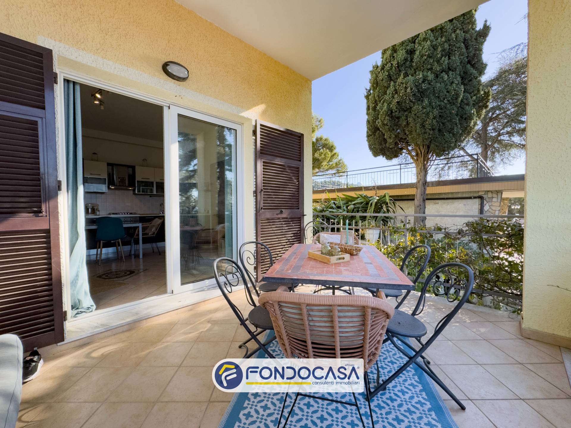 La soluzione, dotata di ingresso indipendente, si apre su una curata corte esterna che funge da piacevole spazio di accoglienza e zona relax. Da qui si accede a due comodi ripostigli e a una funzionale area lavanderia.
