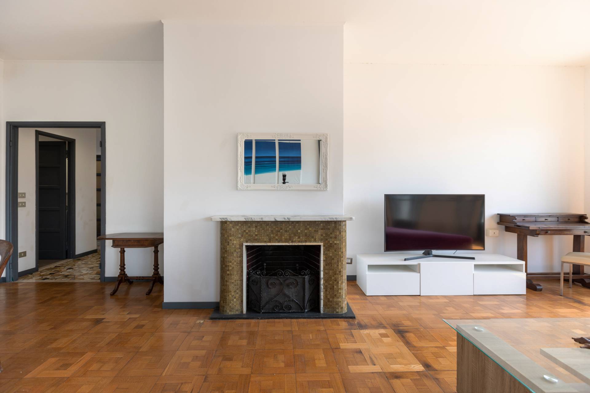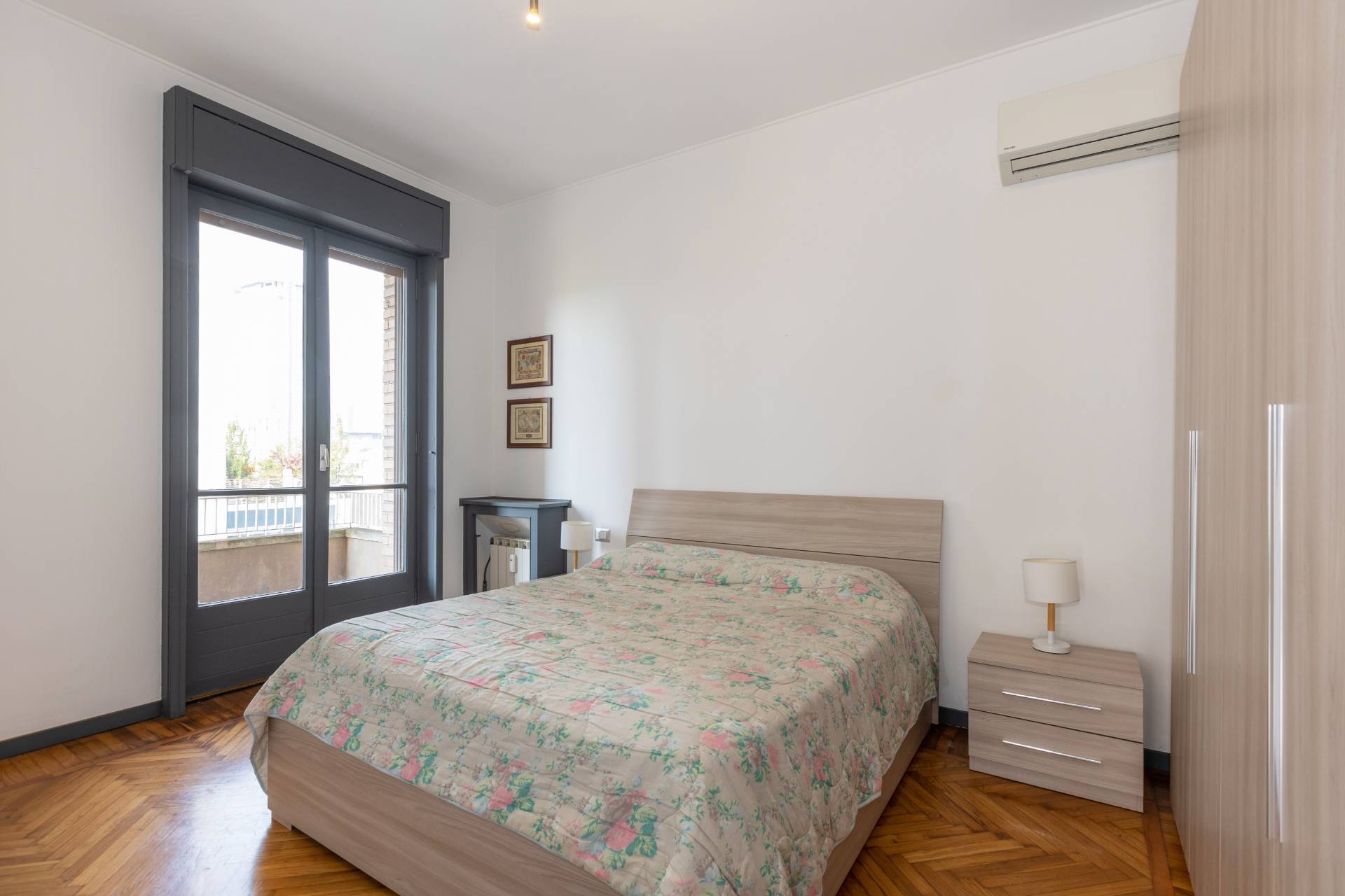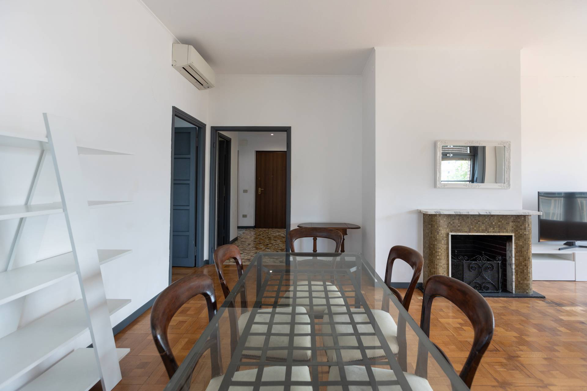 L´appartamento è rifinito con parquet nel soggiorno e nelle camere, ed è dotato di aria condizionata, riscaldamento centralizzato e infissi in buono stato.