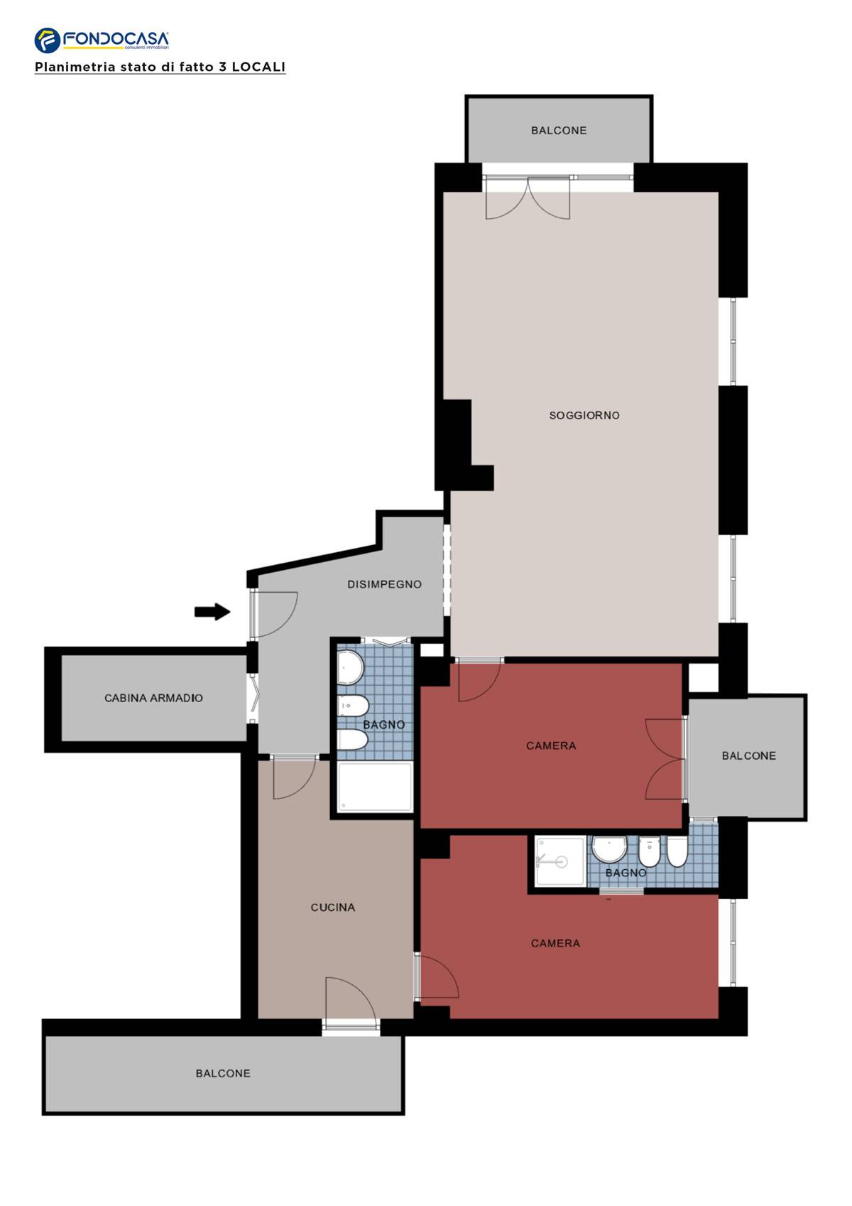 - Cucina abitabile con accesso al secondo ingresso tramite balcone di servizio