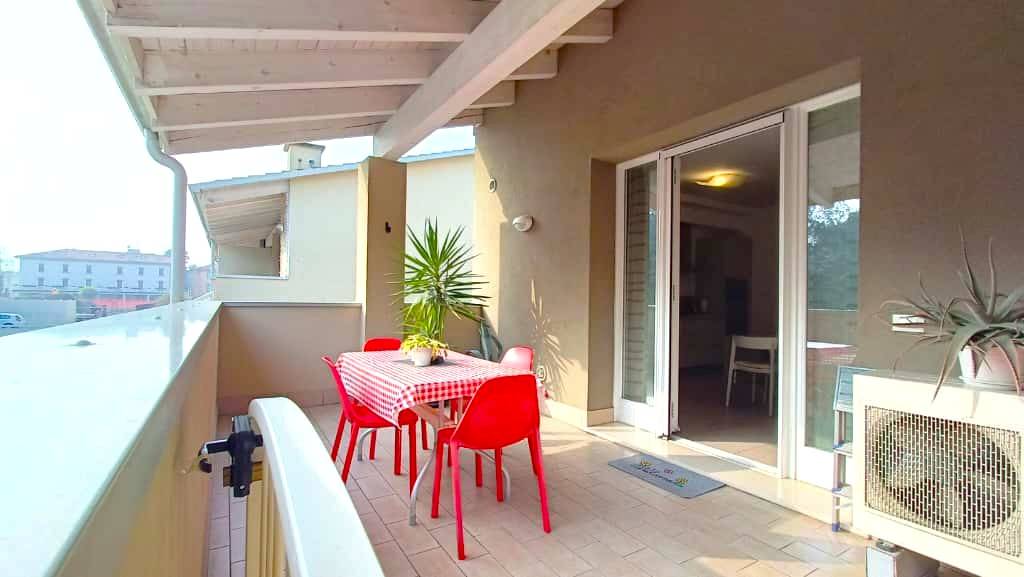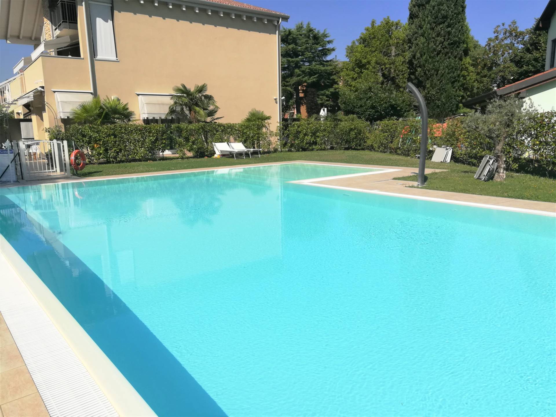 PESCHIERA DEL GARDA, a 200 m dal Lungolago e a 5 min. a piedi dal Centro Storico, in zona servita da tutto, proponiamo luminoso Bilocale libero su 3 lati, posto al piano primo con terrazzo abitabile, garage e piscina condominiale. Tranquillo complesso residenziale edificato nel 2016 in Classe Energetica A2, con riscaldamento a pavimento e aria condizionata. L'immobile si compone di ingresso da terrazzo privato di 18 mq, ampia zona giorno con cucina a vista, disimpegno con armadio a muro, camera matrimoniale e bagno finestrato. Completa la proprietà un garage al piano interrato. L'abitazione presenta ottime finiture e viene venduto completamente arredato ad esclusione dell'armadio letto . Riscaldamento autonomo, alta capacità isolante e impianto fotovoltaico. Perfetto sia come seconda casa o come investimento da mettere a reddito grazie alla posizione agevolata. R.C. 511. Per informazioni Tel. 0459585425