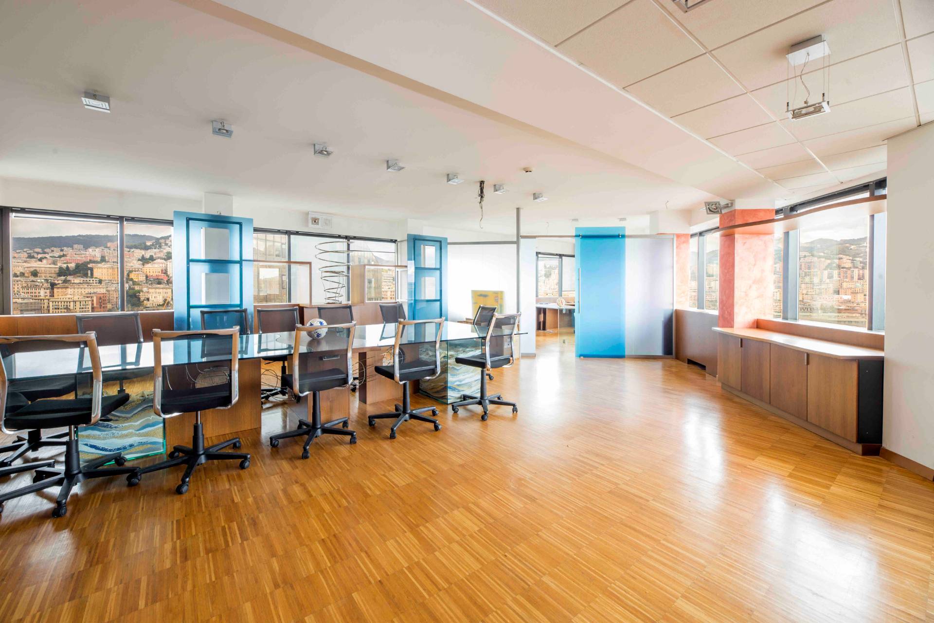 All'interno dell'esclusivo complesso direzionale Corte Lambruschini, uno dei punti di riferimento del panorama professionale genovese, proponiamo in vendita un intero piano di circa 715 mq, posto ad un livello alto e caratterizzato da una meravigliosa vista aperta sulla città che accompagna tutti gli affacci.