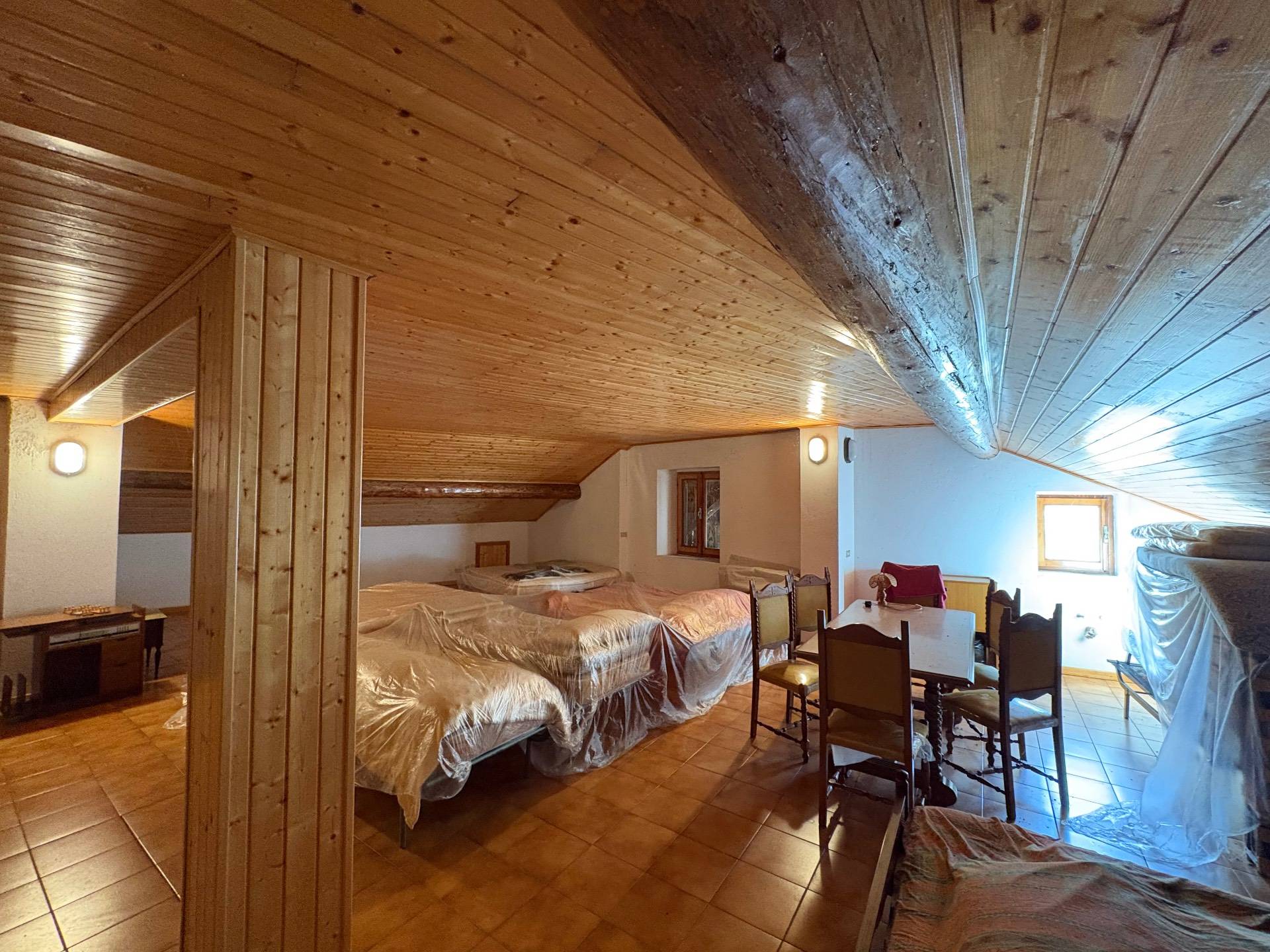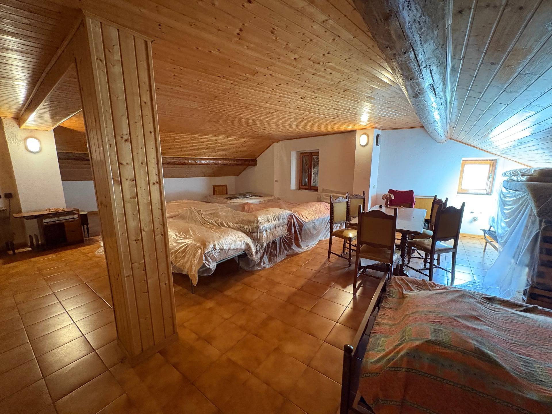 Il primo piano accoglie la zona notte: quattro stanze con affaccio sulla vallata, dove il risveglio ha il sapore dell´aria pura e del silenzio della montagna. Qui si trovano anche due bagni, uno con vasca e uno con doccia, con predisposizione per lavatrice. Sullo stesso livello, ma con ingresso indipendente, un ampio locale ripostiglio offre spazio e versatilità, ideale come studio, atelier o stanza degli hobby.