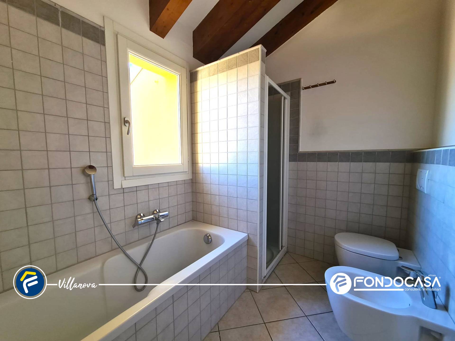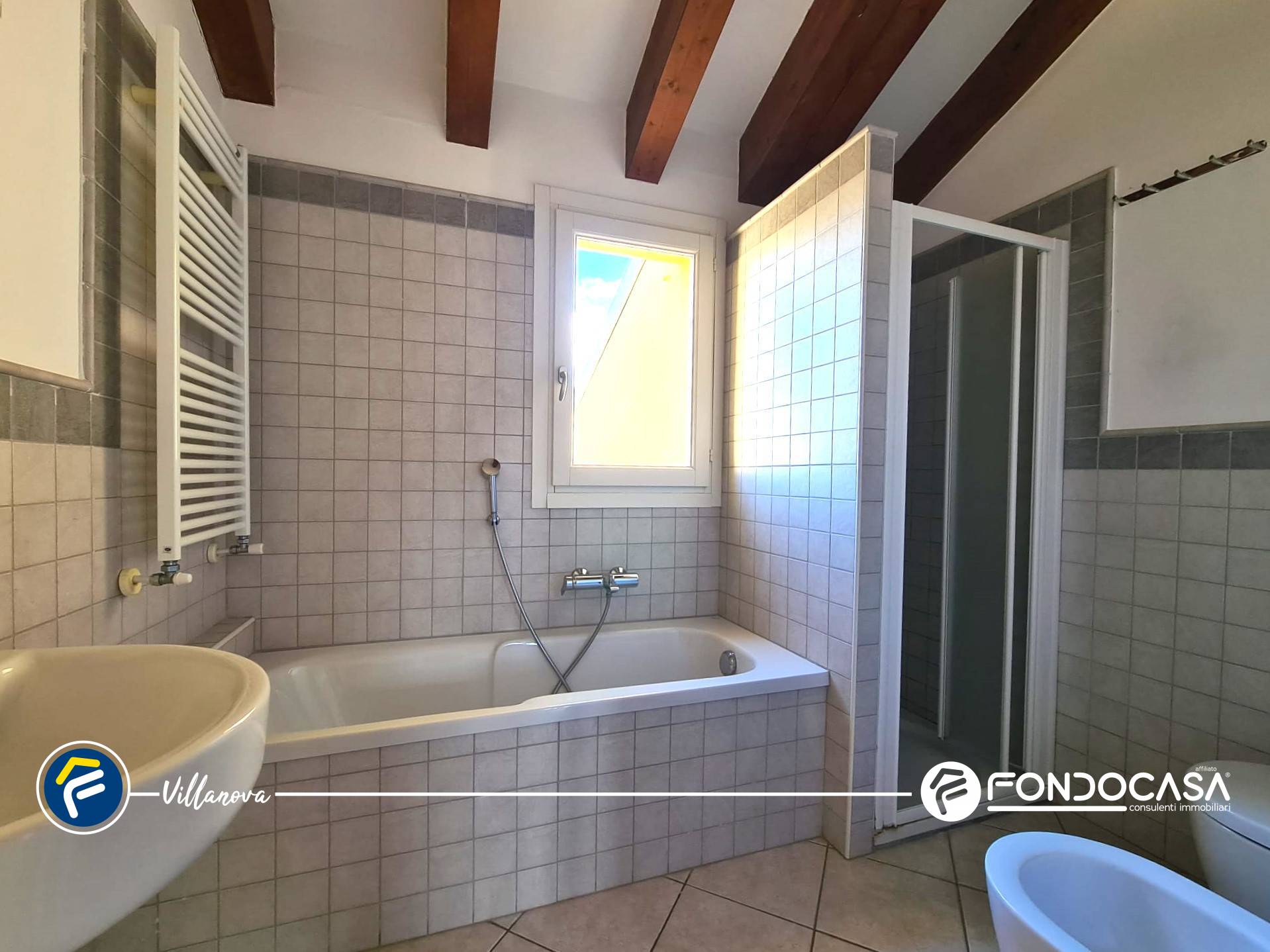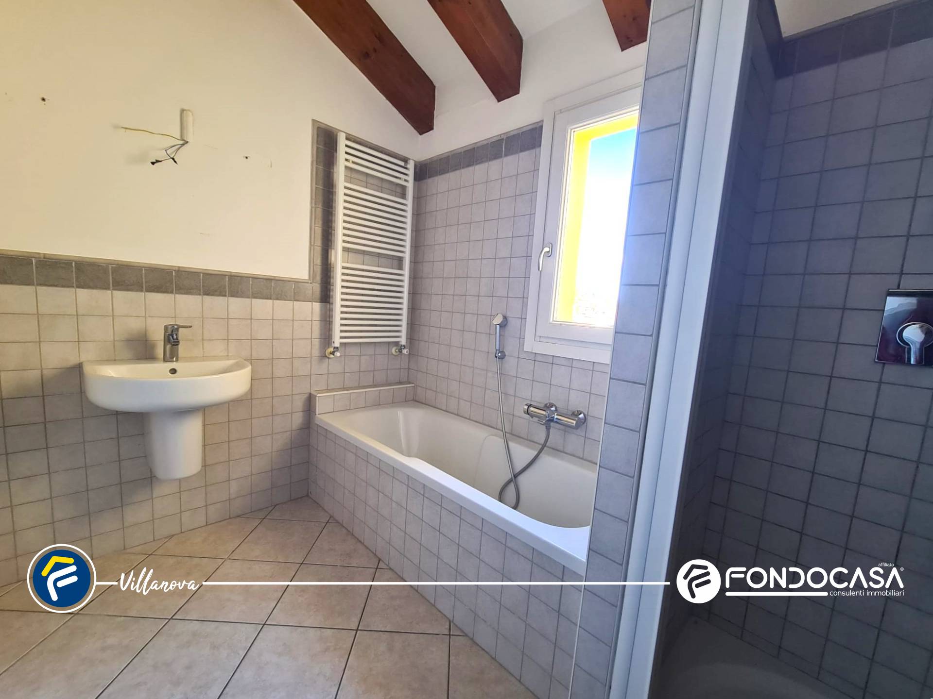 L´abitazione si distingue per uno stile contemporaneo, impreziosito dalla presenza di travi in legno a vista, che conferiscono calore e un´atmosfera accogliente agli ambienti.