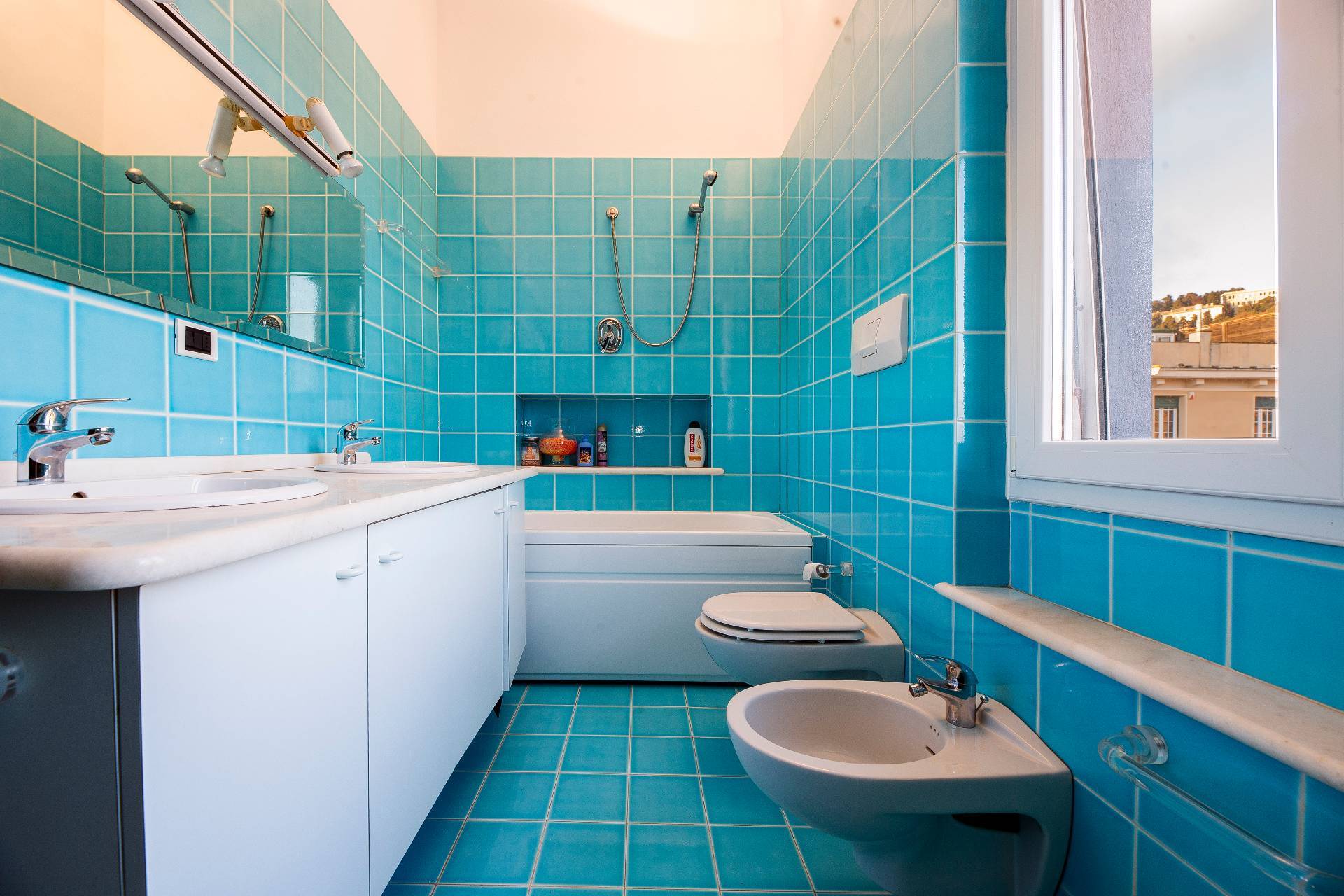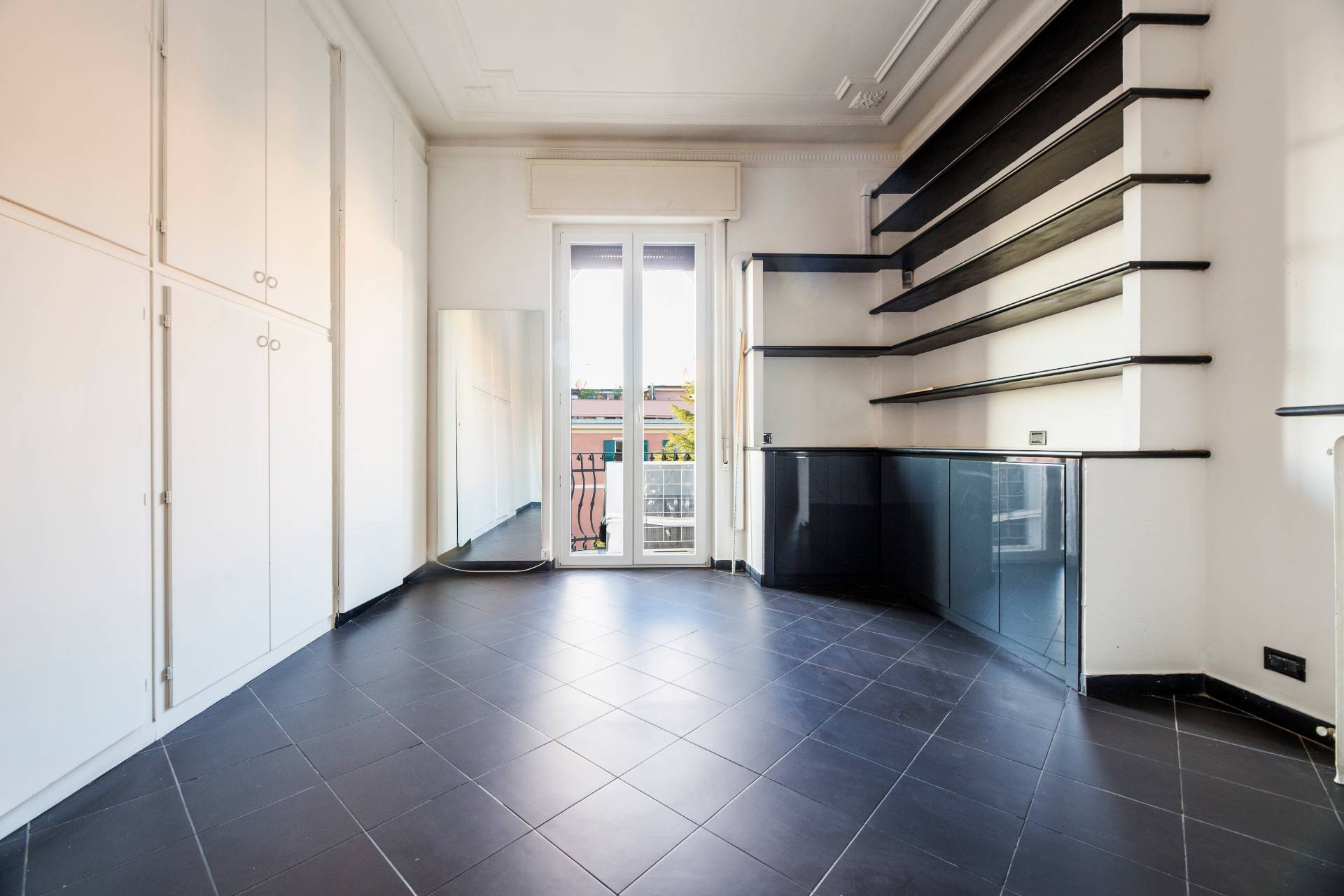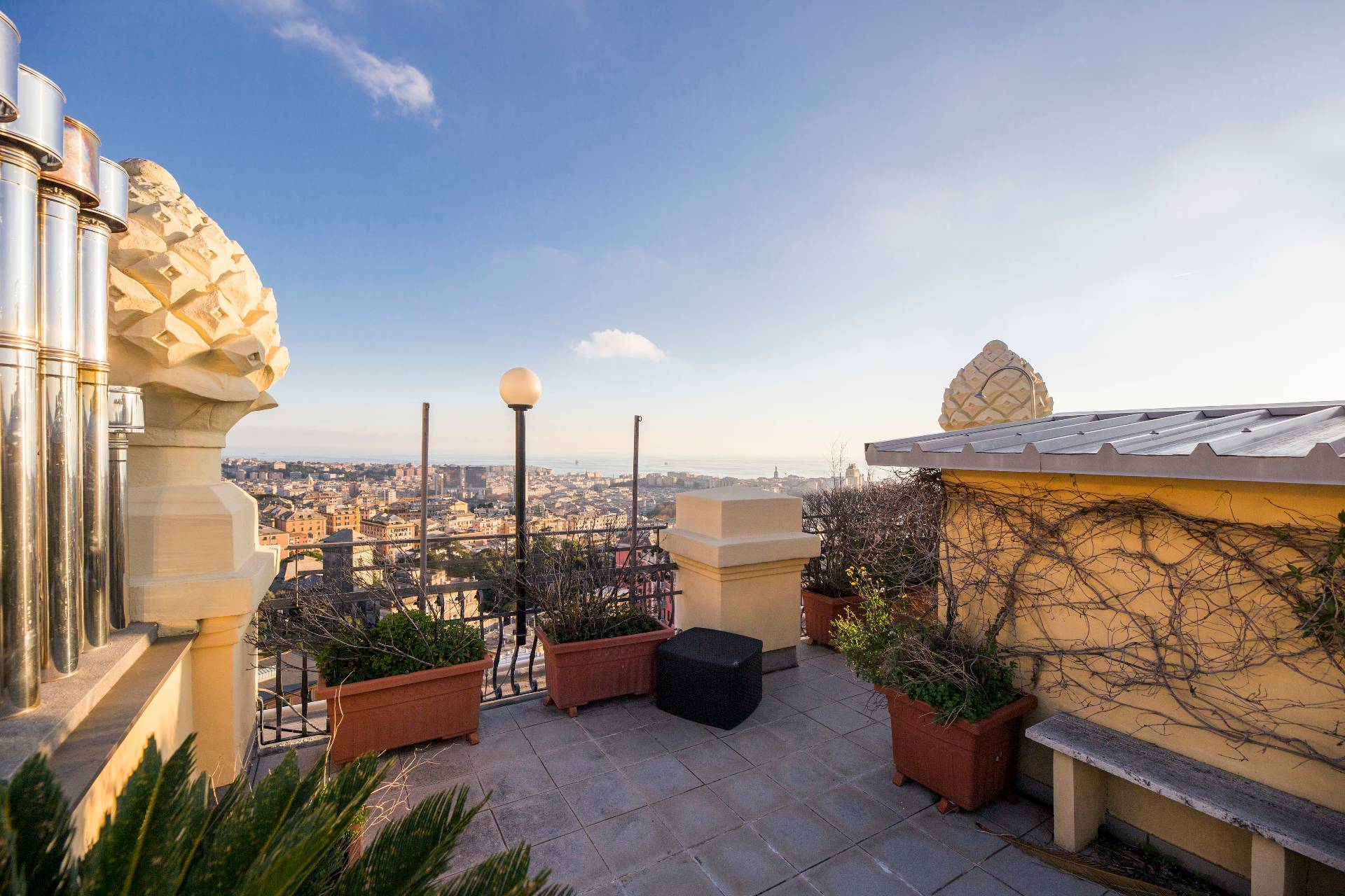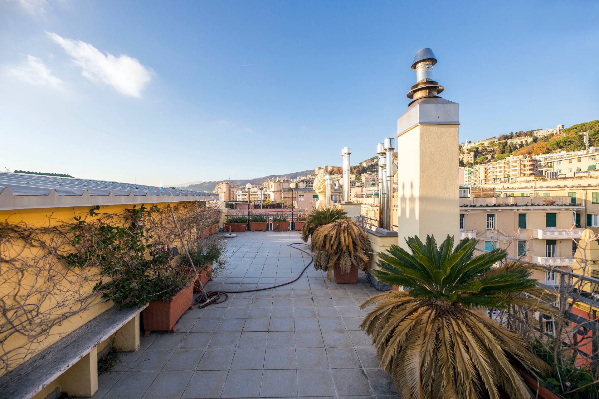 L´appartamento, posto all'ultimo piano con ascensore di un elegante palazzo signorile appena ristrutturato nella sue parti comuni, si compone di un grande ingresso con porta blindata che espone su un ampio soggiorno, cucina abitabile, due stanze, un ulteriore vano uso ufficio, due bagni, dispensa e ben cinque balconi. In aggiunta abbiamo anche un grande terrazzo sovrastante di proprietà. La vista che si può apprezzare dalla casa e dal terrazzo è semplicemente qualcosa di impareggiabile e l'esposizione solare è pressochè totale. Il riscaldamento è centralizzato con valvole termostatiche e contabilizzatori di calore.