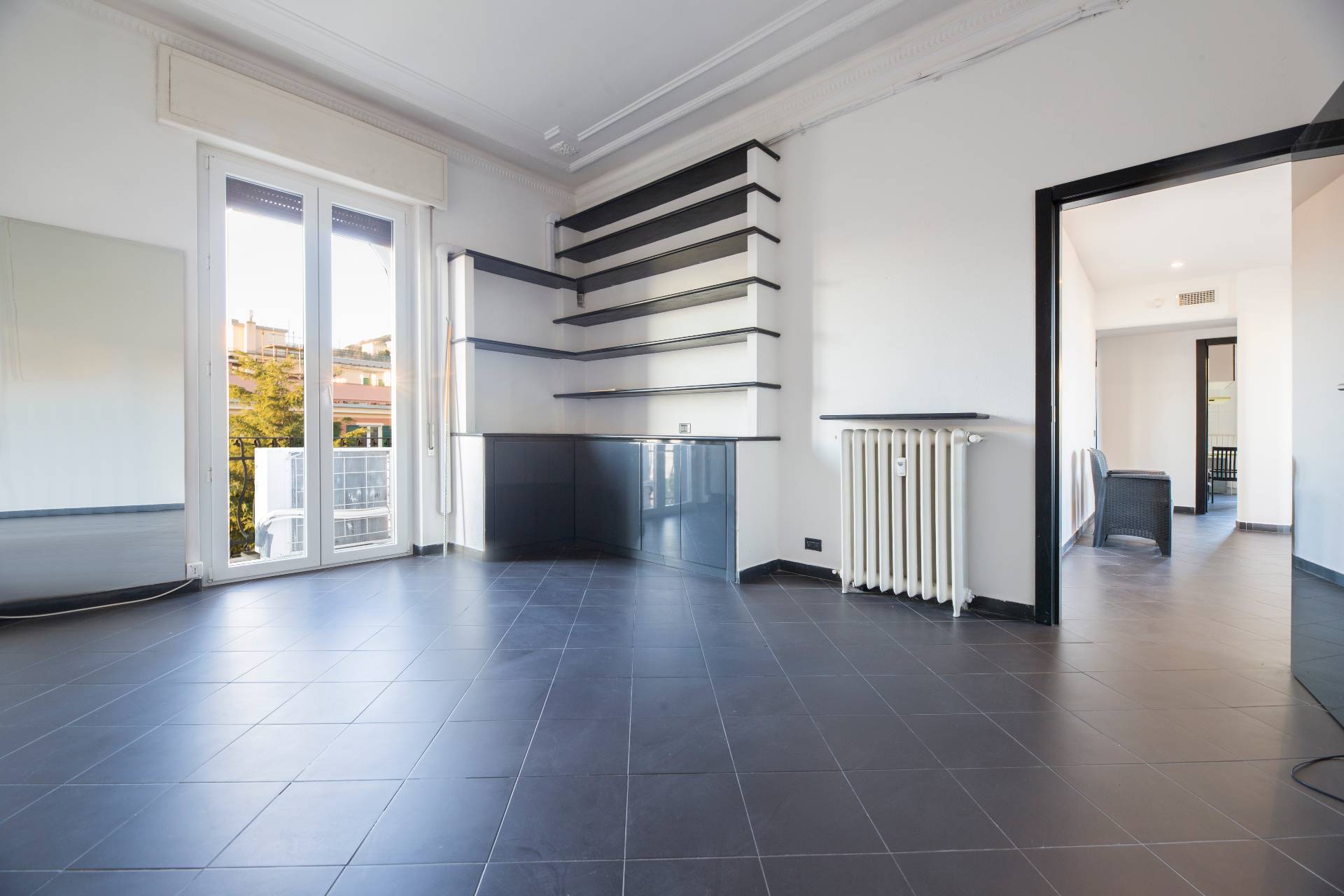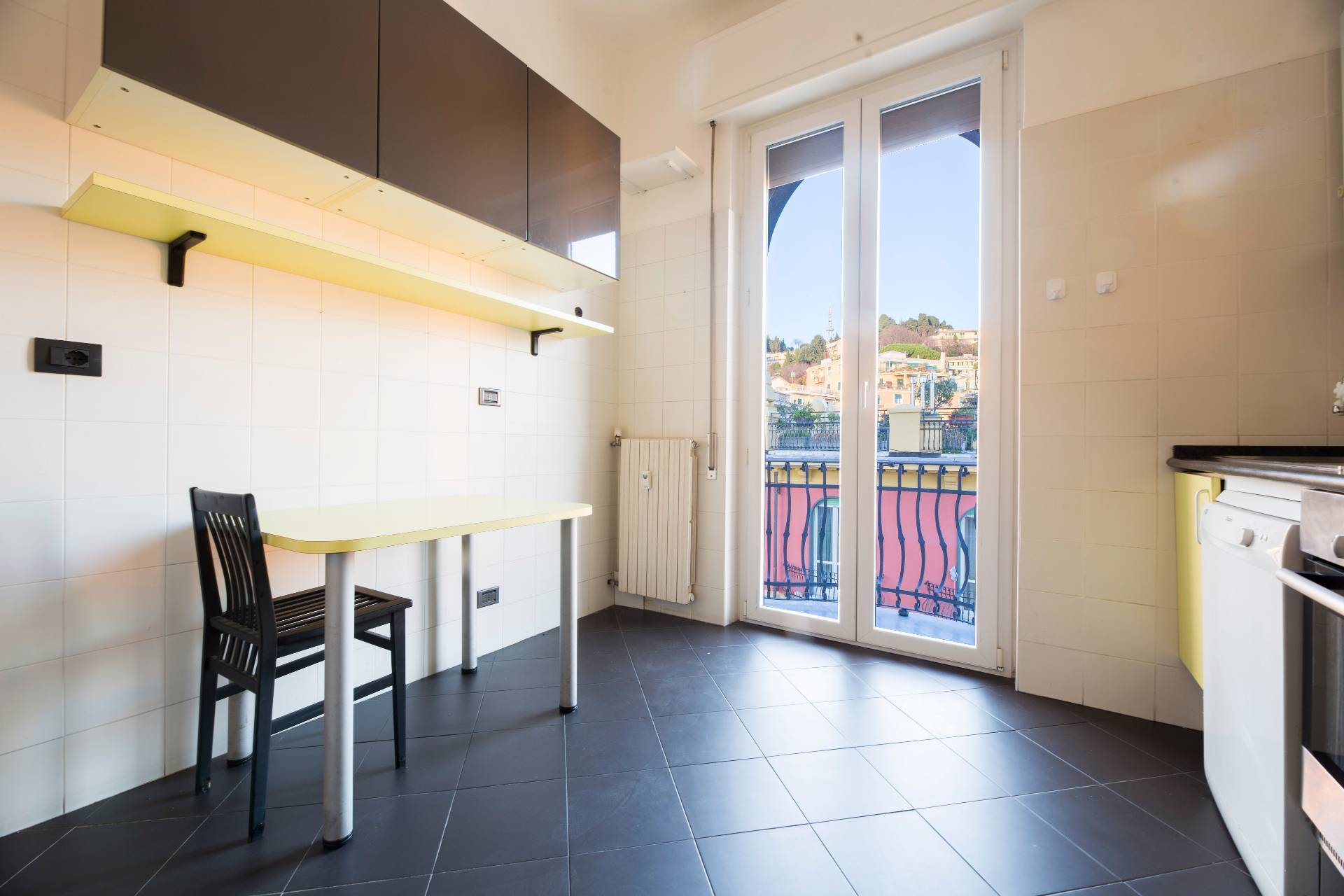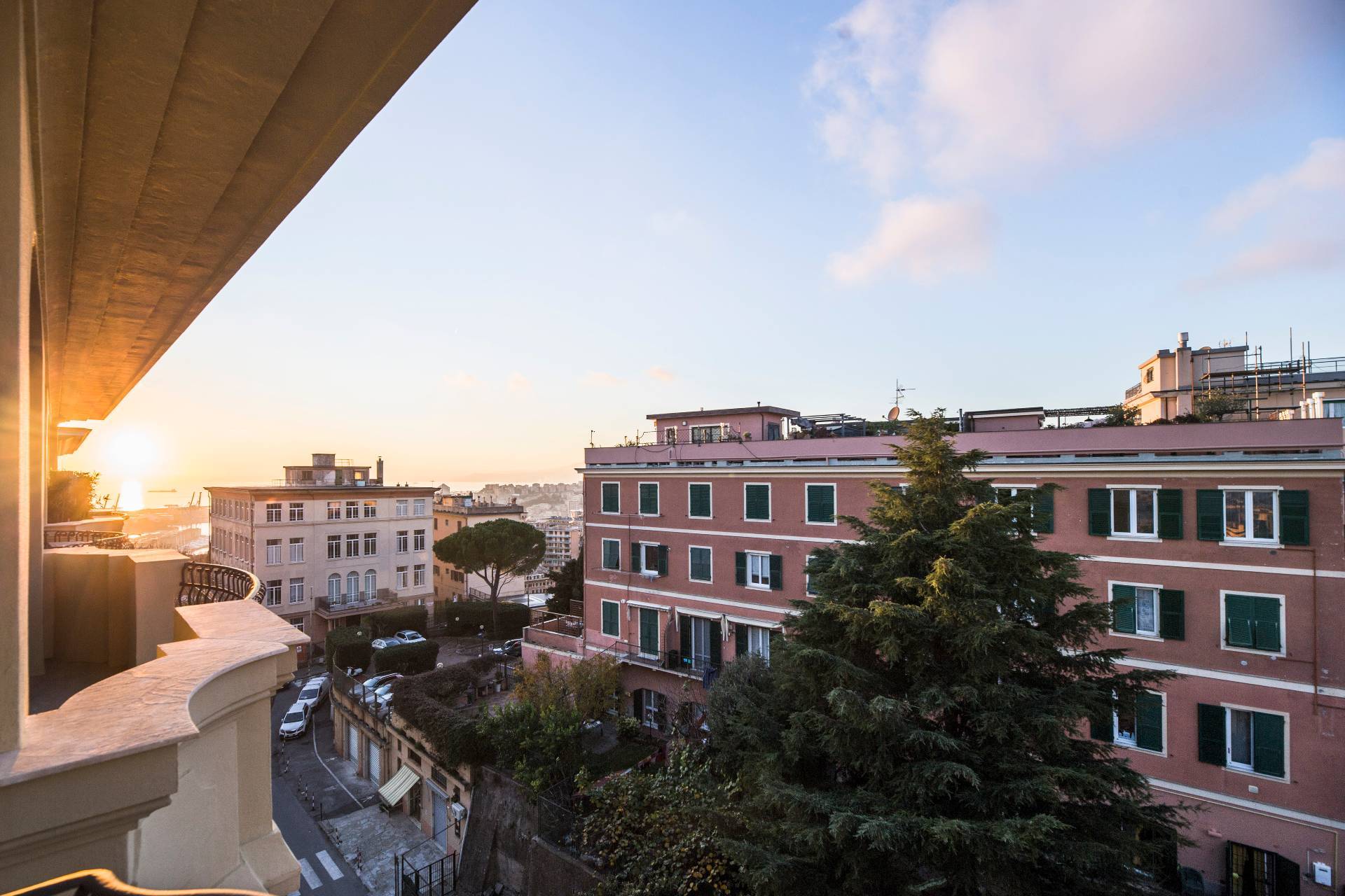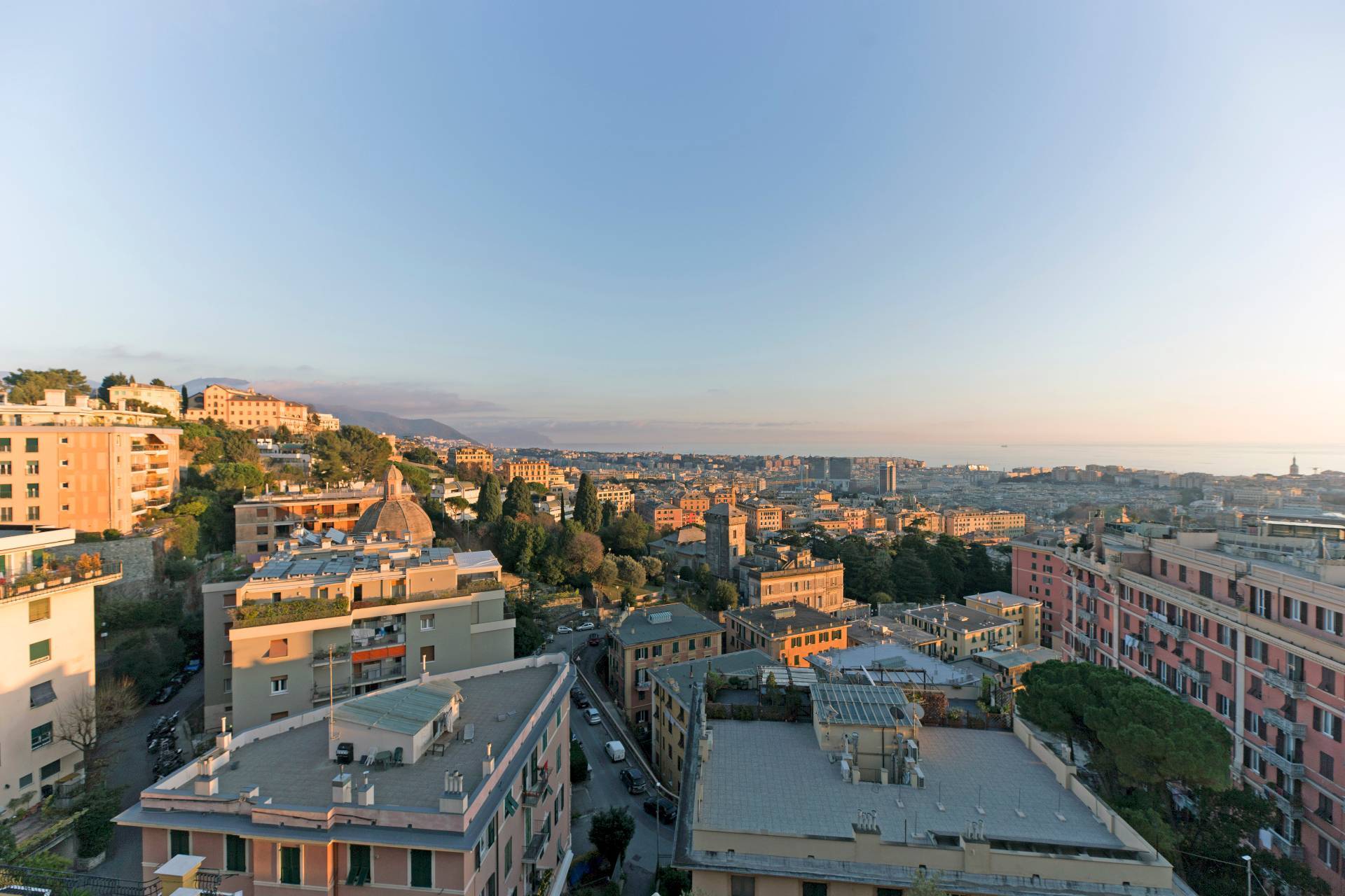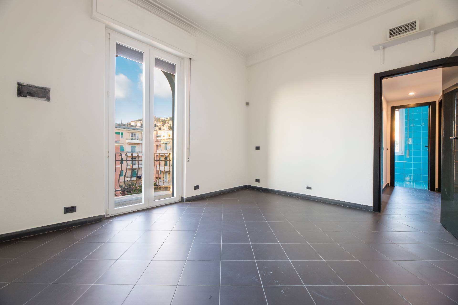 VIA CROCCO GENOVA CASTELLETTO SIGNORILE APPARTAMENTO ULTRAPANORAMICO ULTIMO PIANO IN AFFITTO CON CINQUE BALCONI, BOX AUTO E TERRAZZO SOVRASTANTE.