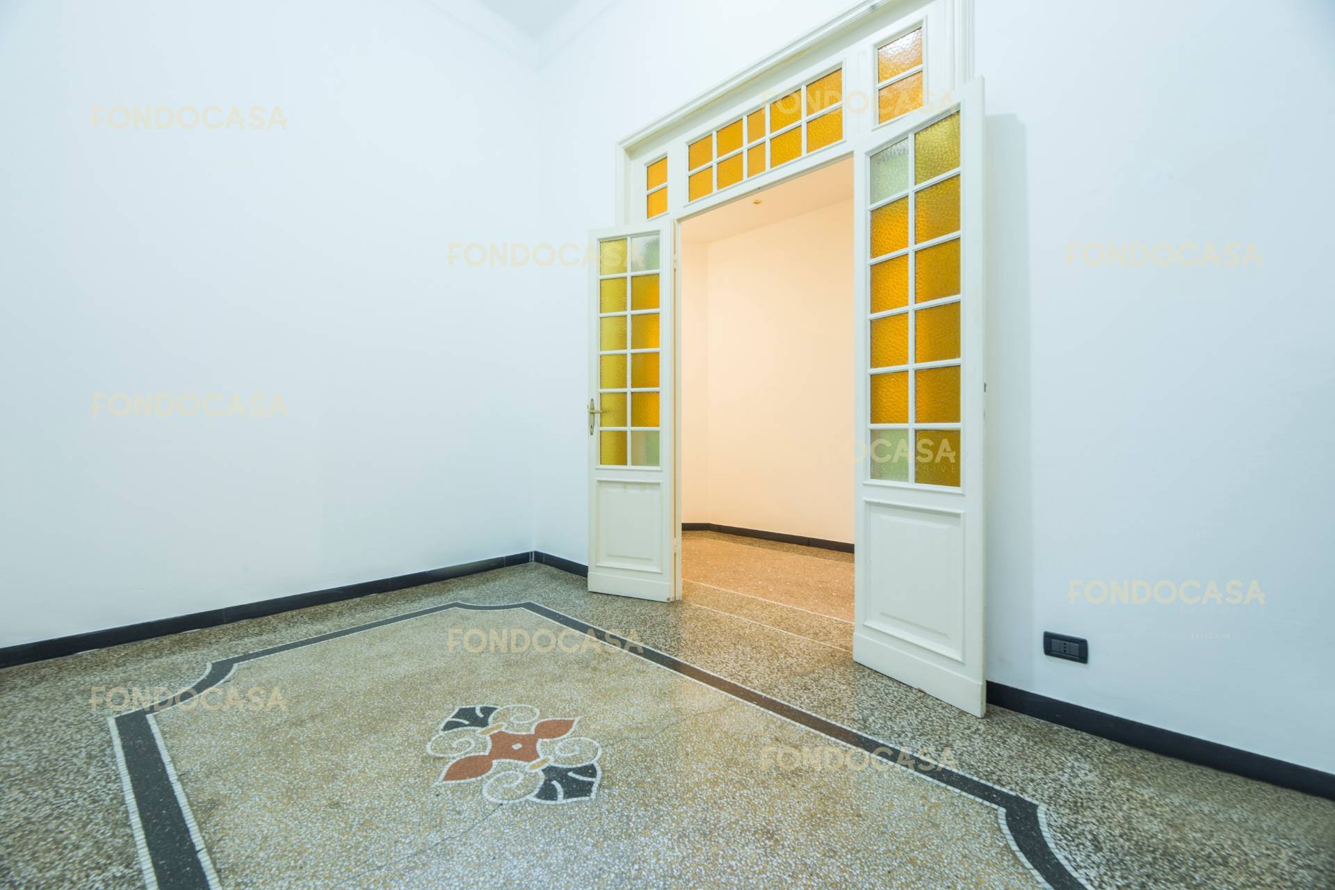 Dall´ ingresso abbiamo la prima camera da letto esposta sul cavedio e a seguire lungo il corridoio e sempre sulla corte del palazzo, abbiamo la grande cucina abitabile con annessa la grande ala da pranzo, la comoda dispensa i doppi servizi, uno di piccole dimensioni, in aiuto di quello padronale.
