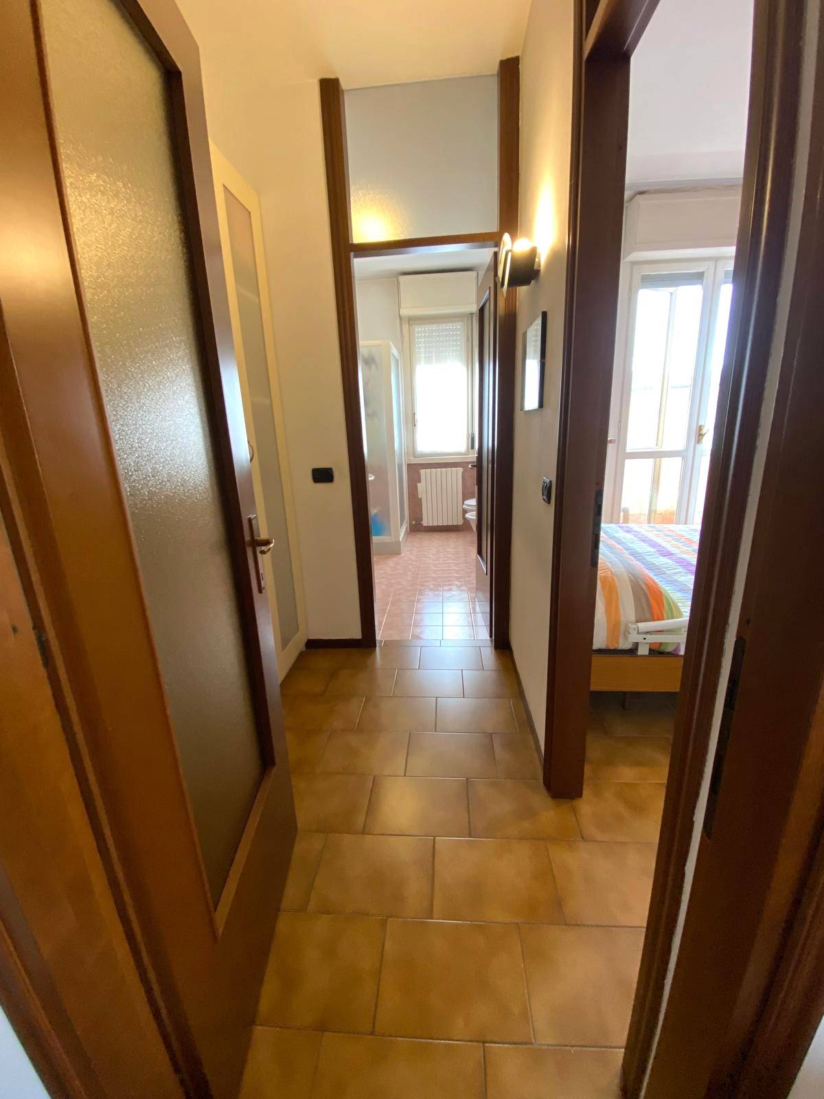 L´appartamento si presenta in buone condizioni, con bagno ed impianto elettrico rifatti, porta d´ingresso sostituita con modello blindo, infissi in legno doppio vetro (tranne portafinestra in soggiorno sostituita con modello in Pvc doppio vetro), tapparelle motorizzate, zanzariere e caldaia autonoma per il riscaldamento.