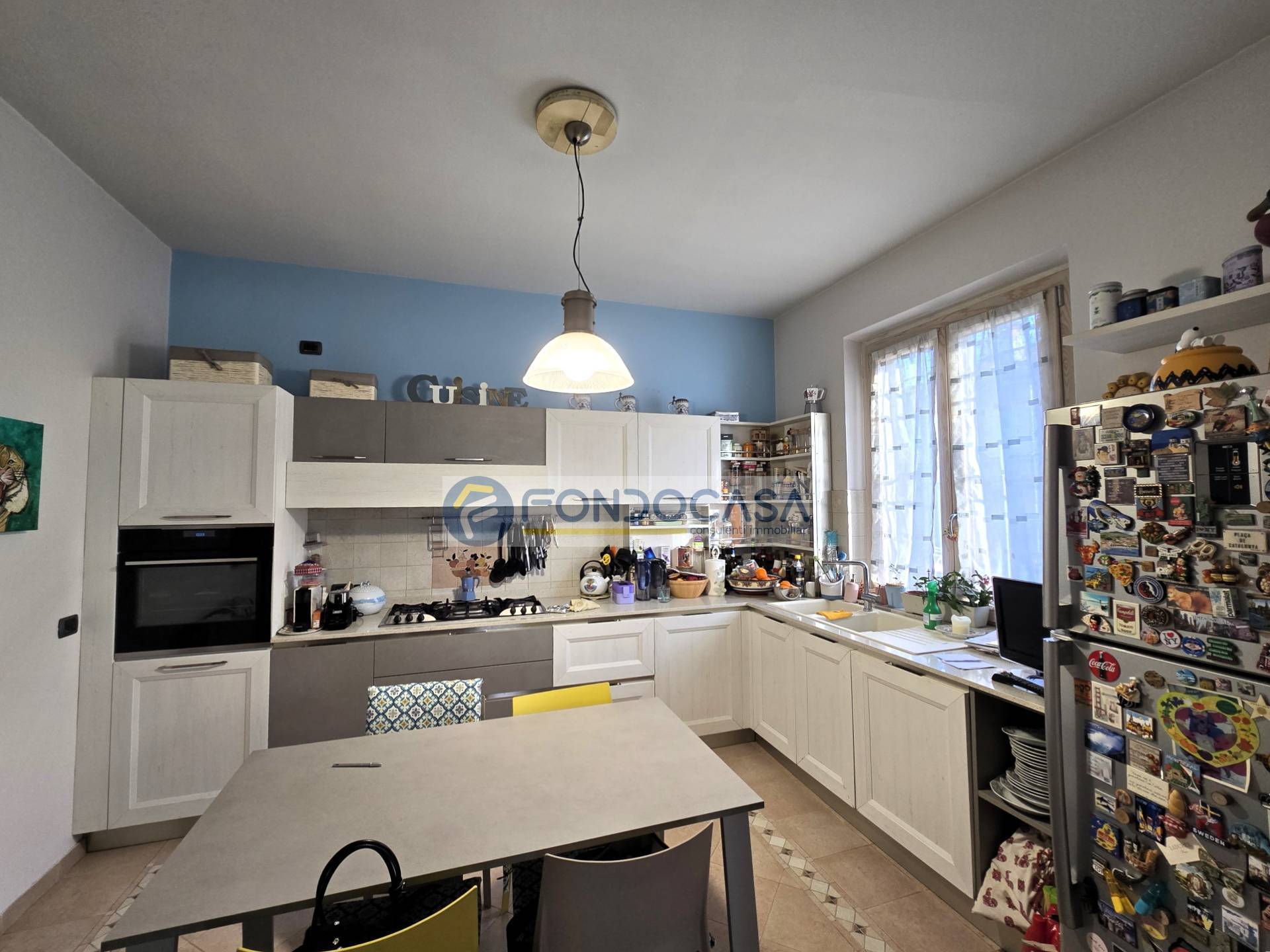 Completano la soluzione due balconate, un box doppio di 50 mq. con basculante, una zona lavanderia ed una cantina.