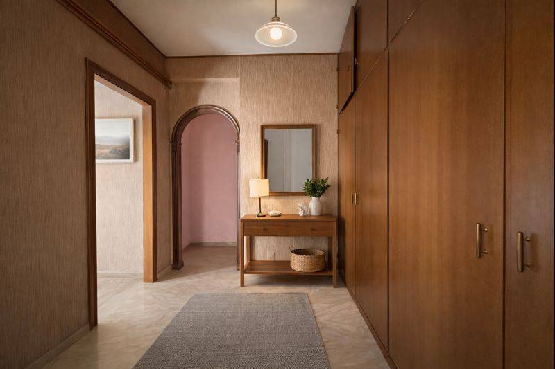 L´ingresso accoglie con un comodo disimpegno servito da armadio a muro e ripostiglio, perfetto per organizzare al meglio la casa.