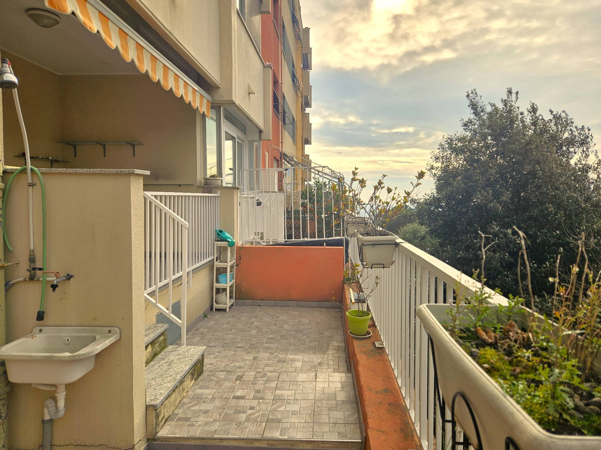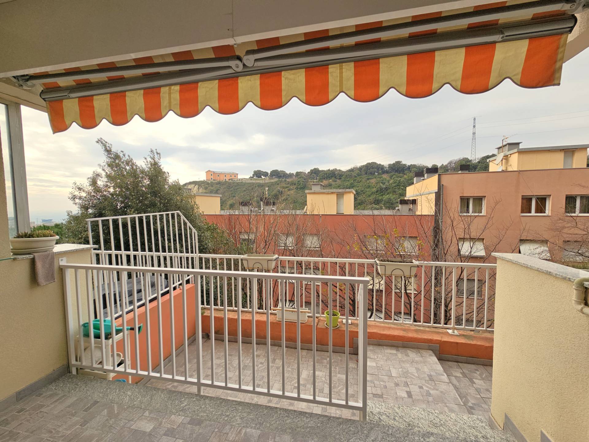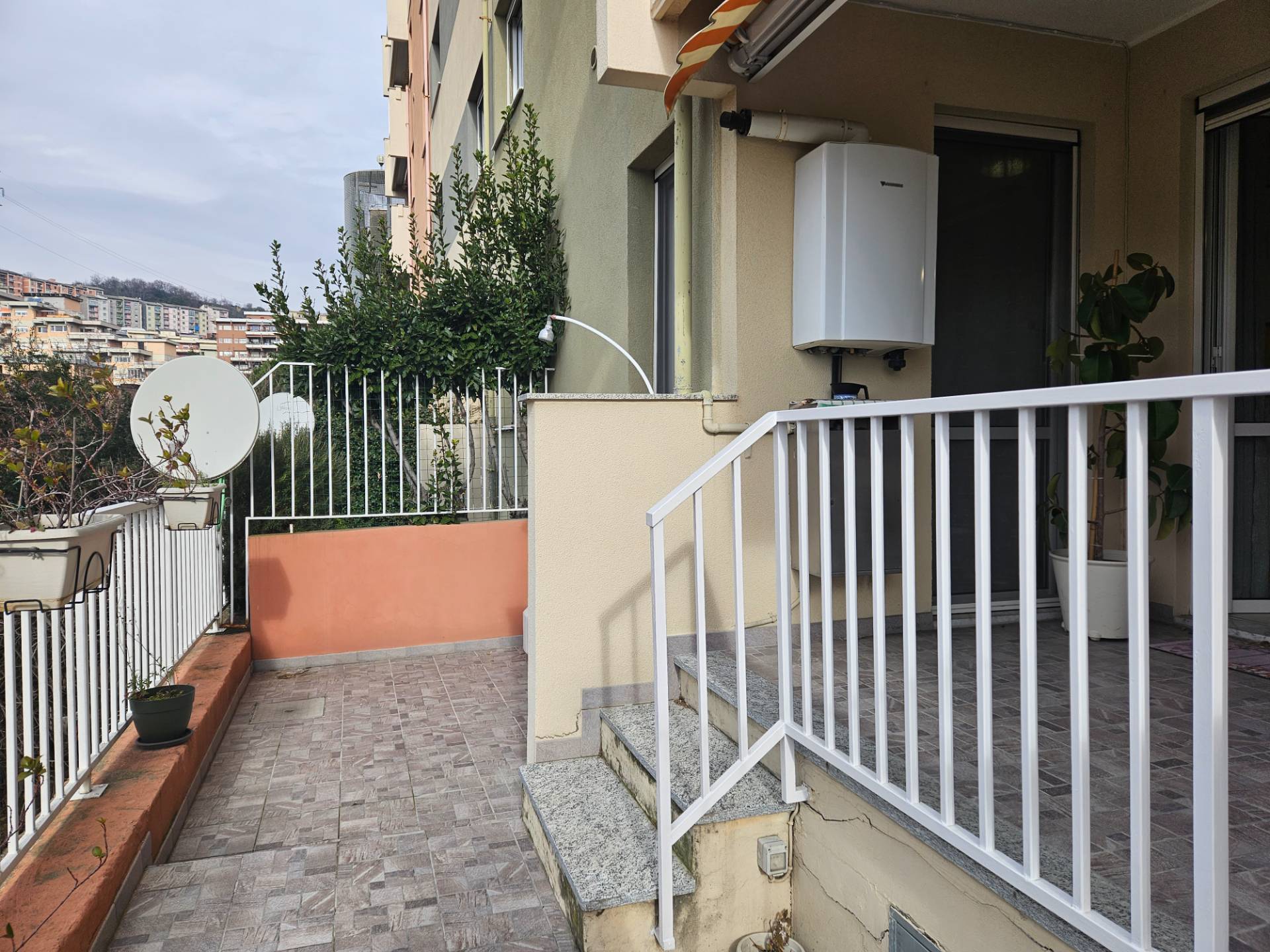 GENOVA GRANAROLO appartamento in vendita in Via Marzabotto ampi vani 4,5 con loggia, terrazzo, cantina e posto auto di proprieta´. In edificio totalmente rinnovato con cappotto termico e parti comuni perfette, interni ristrutturati composti da ingresso, cucinino- soggiorno, una camera matrimoniale, ampio bagno, ripostiglio. Sia dalla zona giorno che dalla camera si accede alla loggia di circa 12 metri quadrati da qui si scende scendendo qualche gradino al terrazzo con lavandino e doccia per l´estate , luce e tenda per ripararsi dal sole. Esposizione soleggiata a ponente, basse spese di amministrazione. Completano la proprietà una ampia cantina ed un posto auto scoperto. Edificio in posizione tranquilla e silenziosa nel verde con doppio accesso anche da Via Ferrara tramite funicolare leggera condominiale. Ideale giovani è acquistabile anche senza anticipo con rata mutuo inferiore ad un affitto di EUR 570 mensili. Per tutte le nostre proposte e tutte le informazioni su questo appartamento in vendita a Genova Granarolo in Via Marzabotto: www.fondocasasanteodoro.it Tel. 010.242.59.59 ge-santeodoro@fondocasa.it.