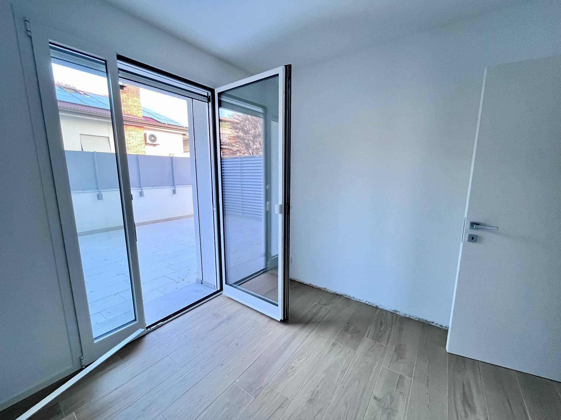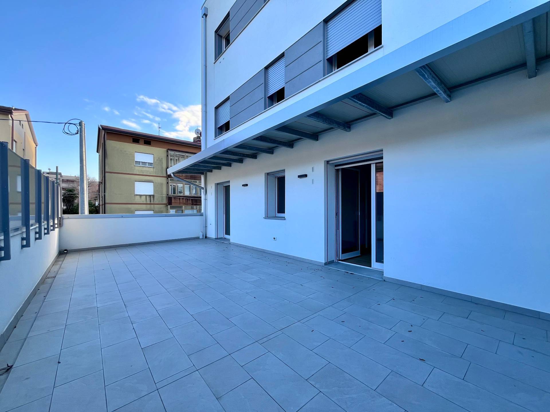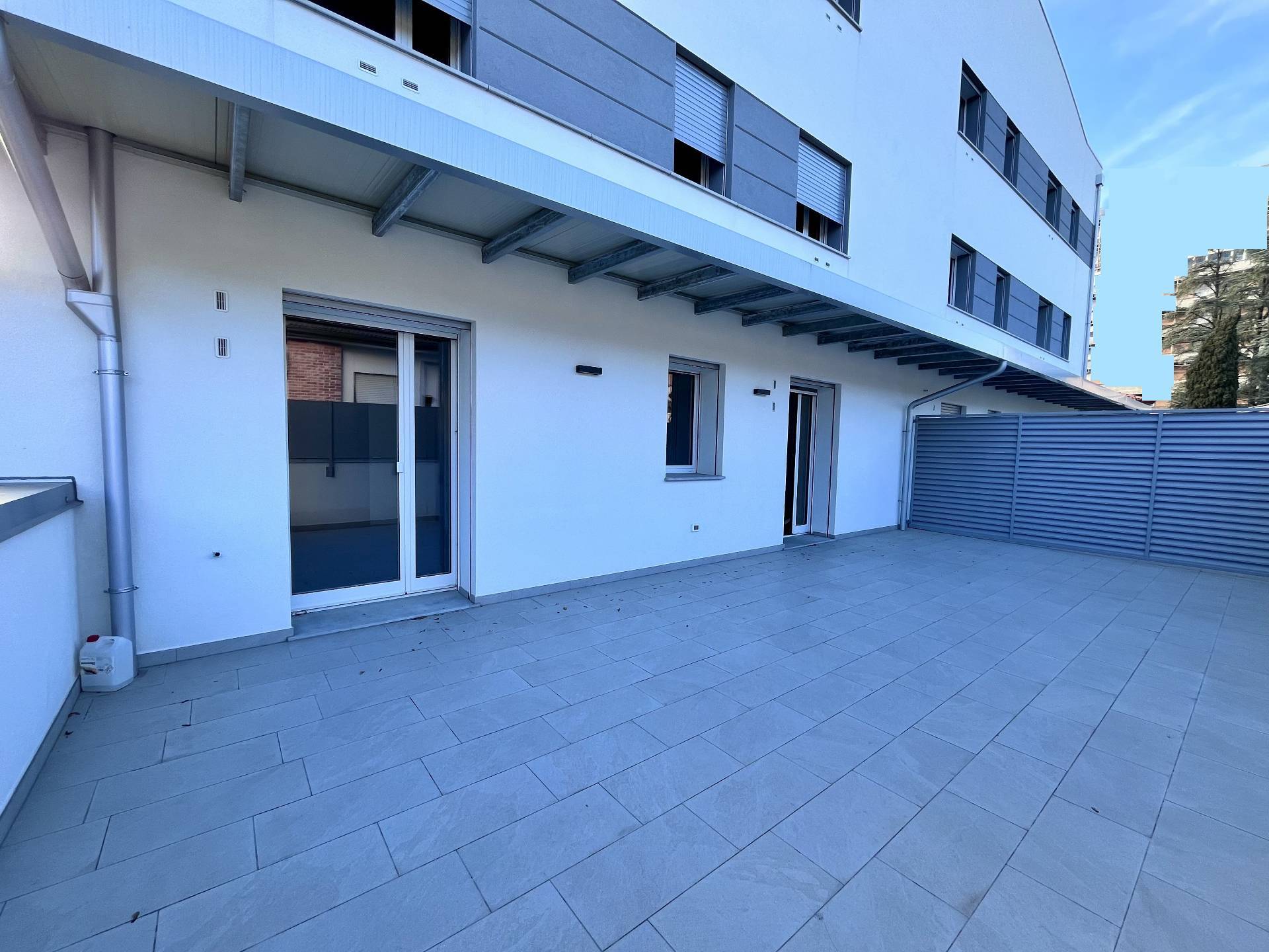 Pordenone zona Ospedale Civile, in posizione tranquilla, appartamento di comoda metratura in condominio di nuova realizzazione. Posizionato al primo piano con ascensore, è caratterizzato da un'ottima luminosità e presenza di stupende terrazze di grande metratura. Composto da ingresso sulla zona giorno di 37mq con angolo cottura e terrazza coperta, disimpegno notte attrezzabile, due camere matrimoniali di cui una con guardaroba, due bagni e seconda terrazza di 48mq. Completo di garage, cantina e posto auto esterno esclusivo. Ottime finiture, abitabile da subito e non soggetto Iva.