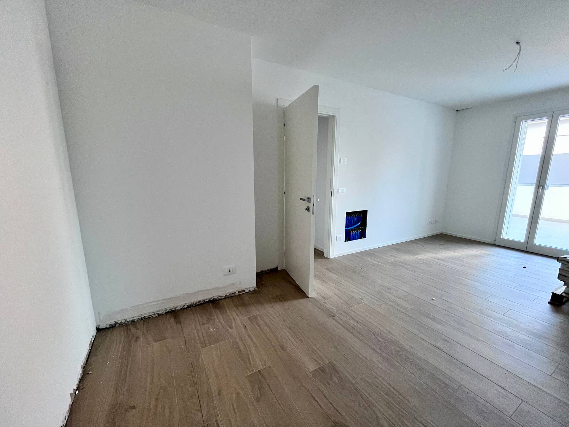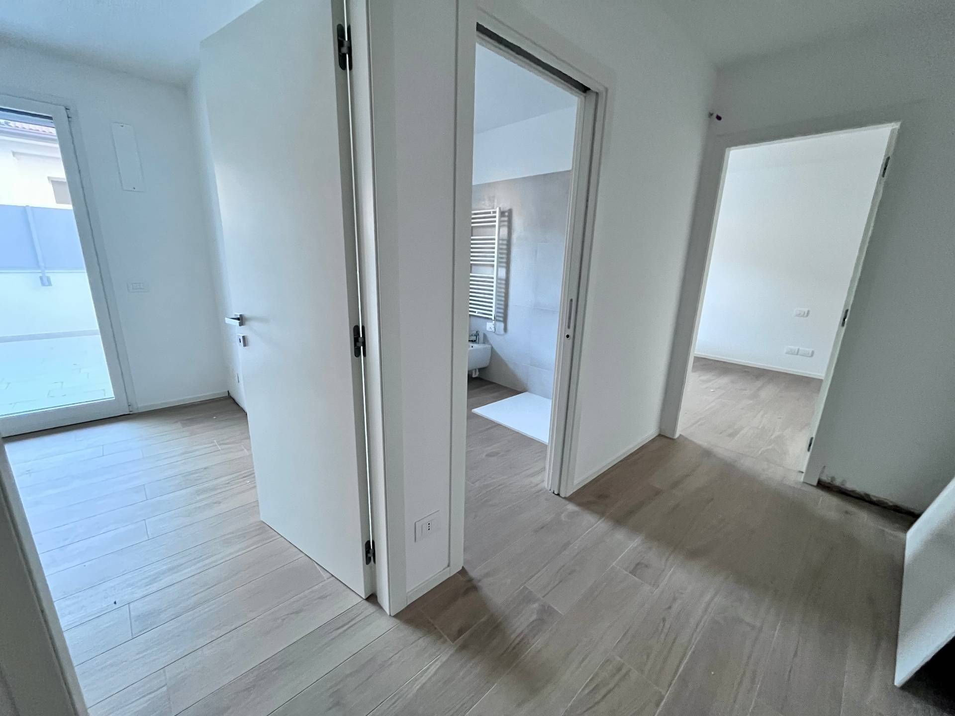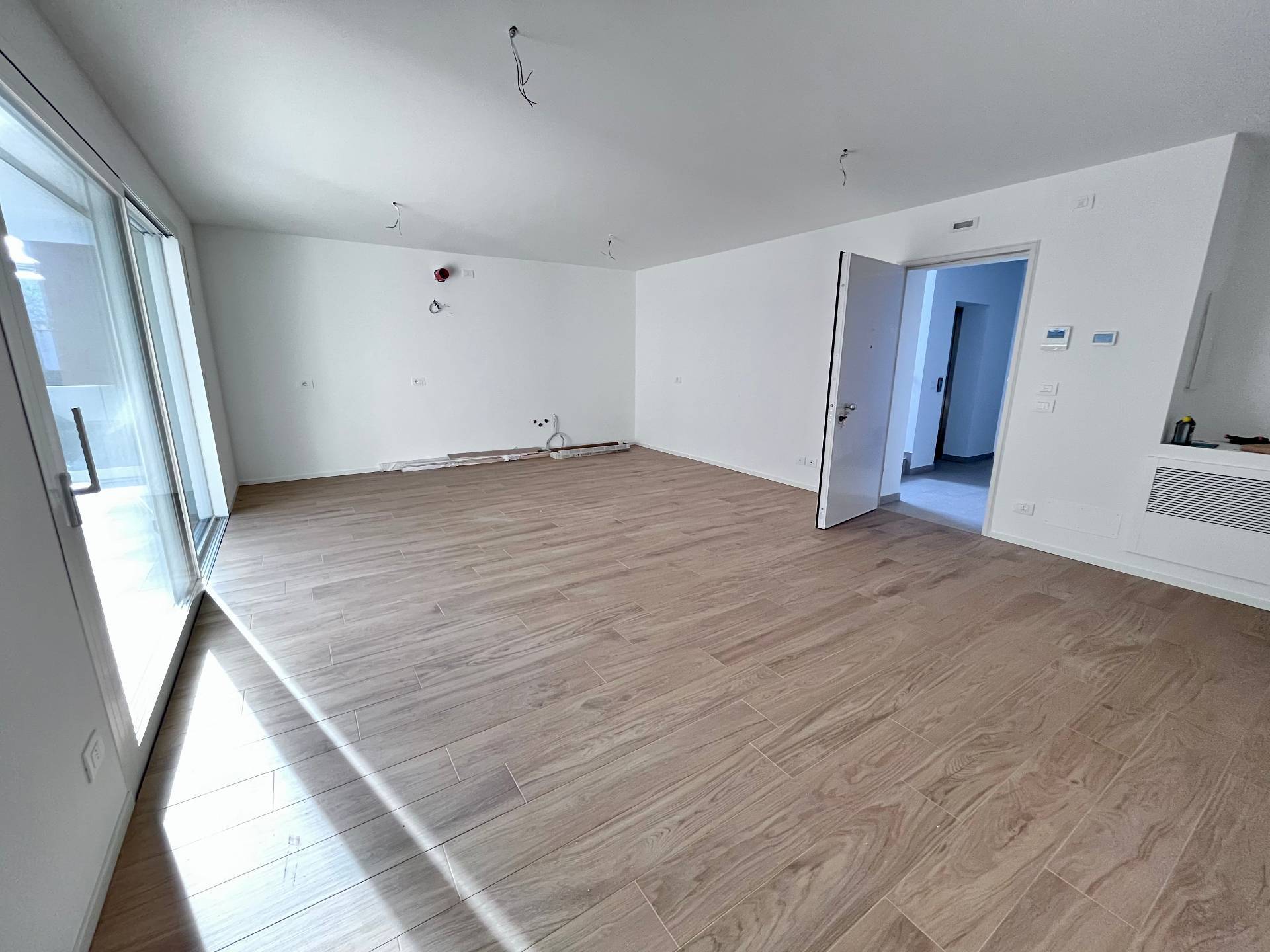 Pordenone zona Ospedale Civile, in posizione tranquilla, appartamento di comoda metratura in condominio di nuova realizzazione. Posizionato al primo piano con ascensore, è caratterizzato da un'ottima luminosità e presenza di stupende terrazze di grande metratura. Composto da ingresso sulla zona giorno di 37mq con angolo cottura e terrazza coperta, disimpegno notte attrezzabile, due camere matrimoniali di cui una con guardaroba, due bagni e seconda terrazza di 48mq. Completo di garage, cantina e posto auto esterno esclusivo. Ottime finiture, abitabile da subito e non soggetto Iva.