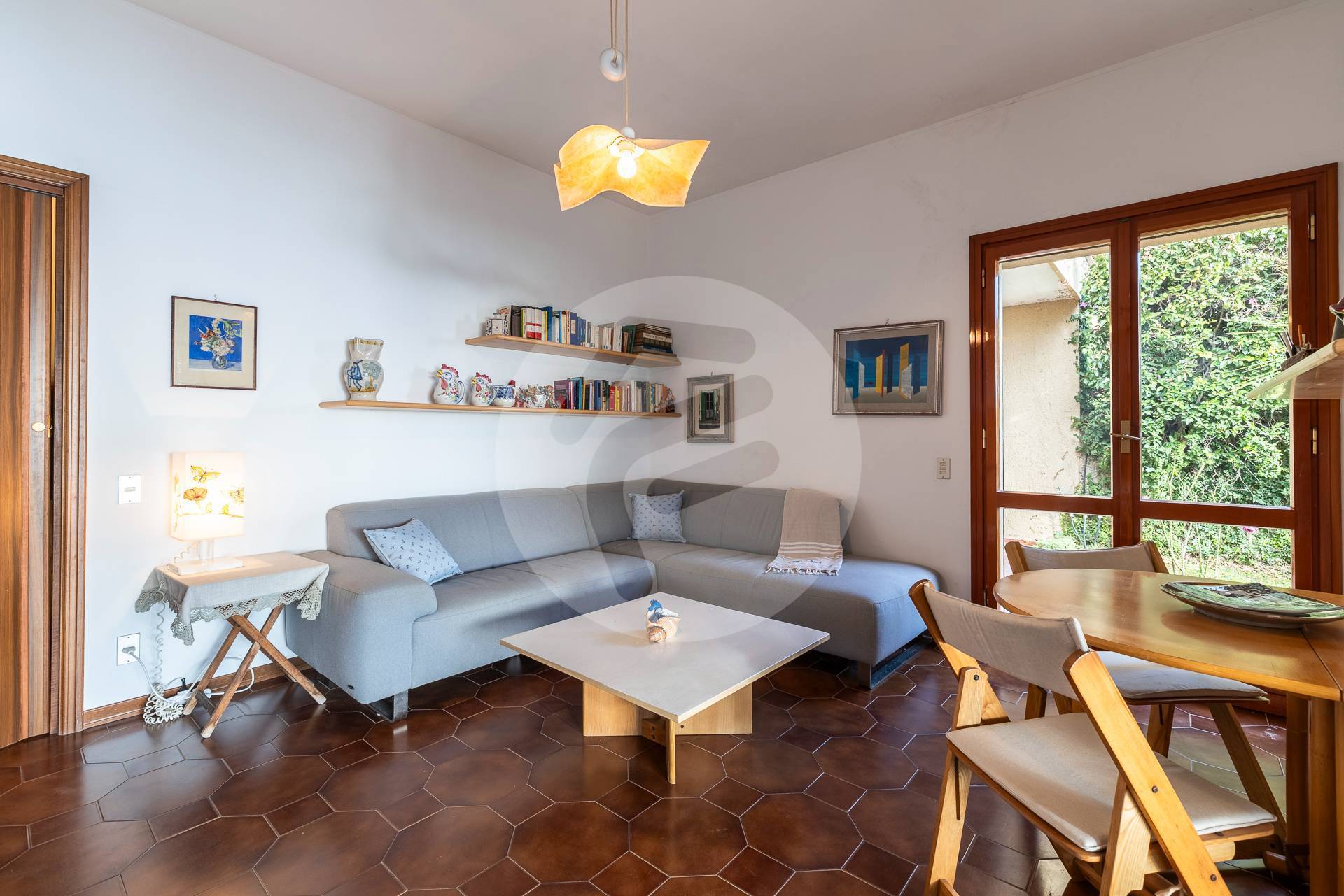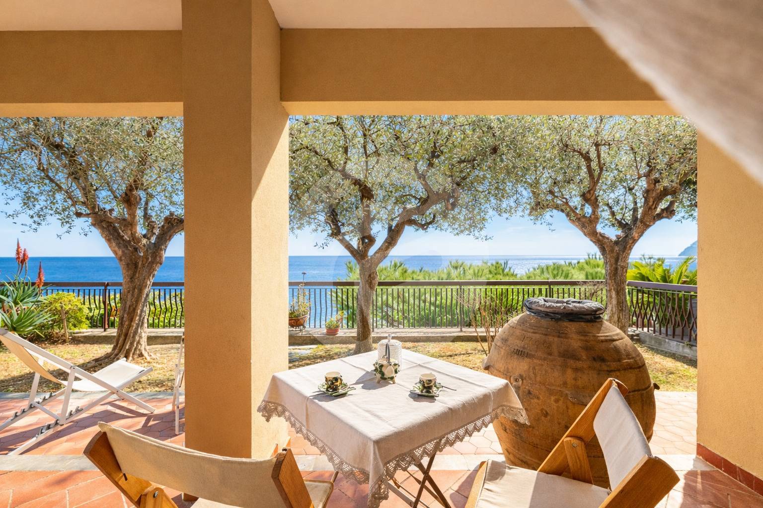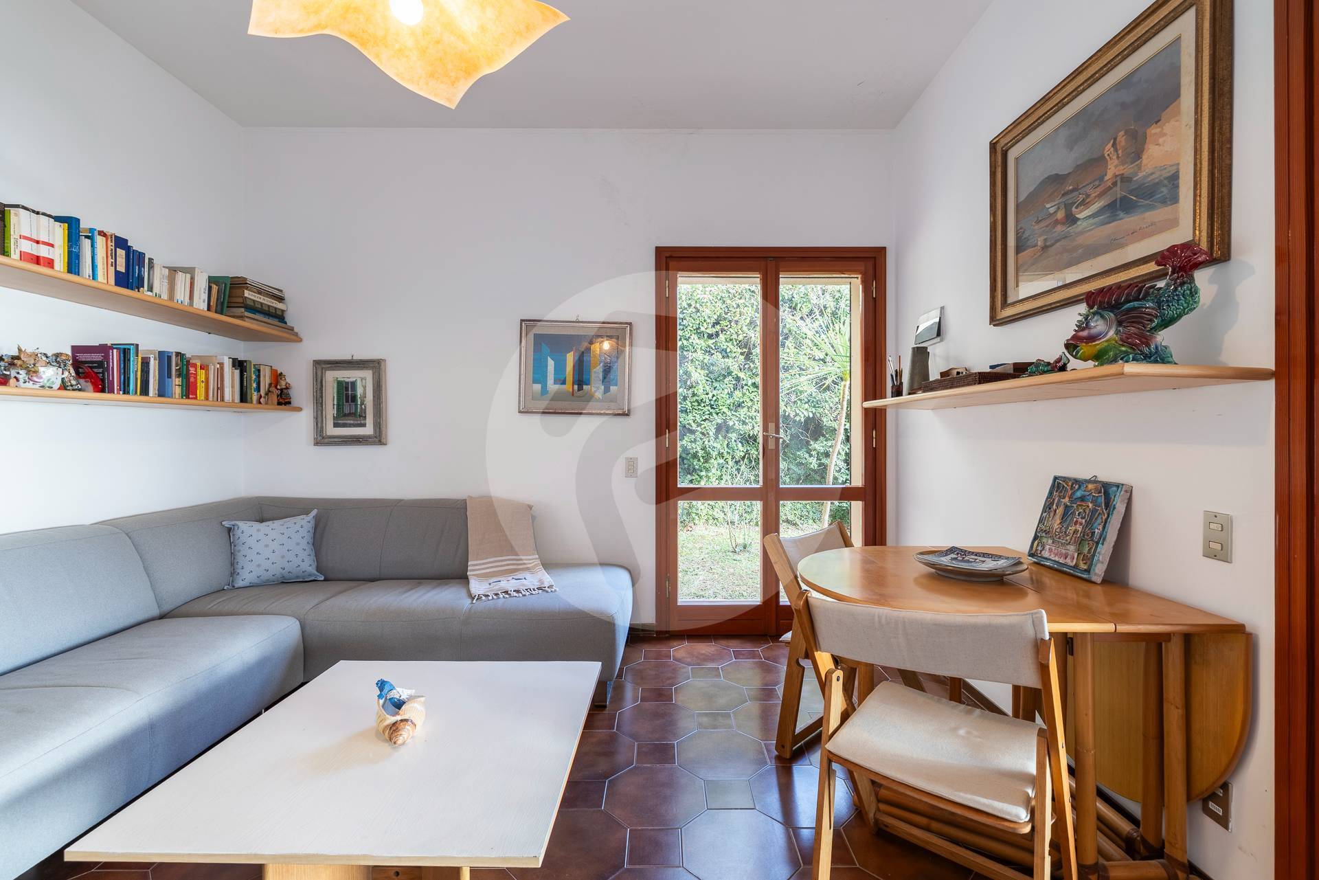 Ogni ambiente affaccia direttamente sul giardino privato, dalla cucina si accede direttamente alla zona piastrellata dove poter pranzare e cenare con la massima riservatezza, tutto questo arricchito dalla presenza di due maestosi ulivi, che regalano ombra naturale e un´atmosfera mediterranea.