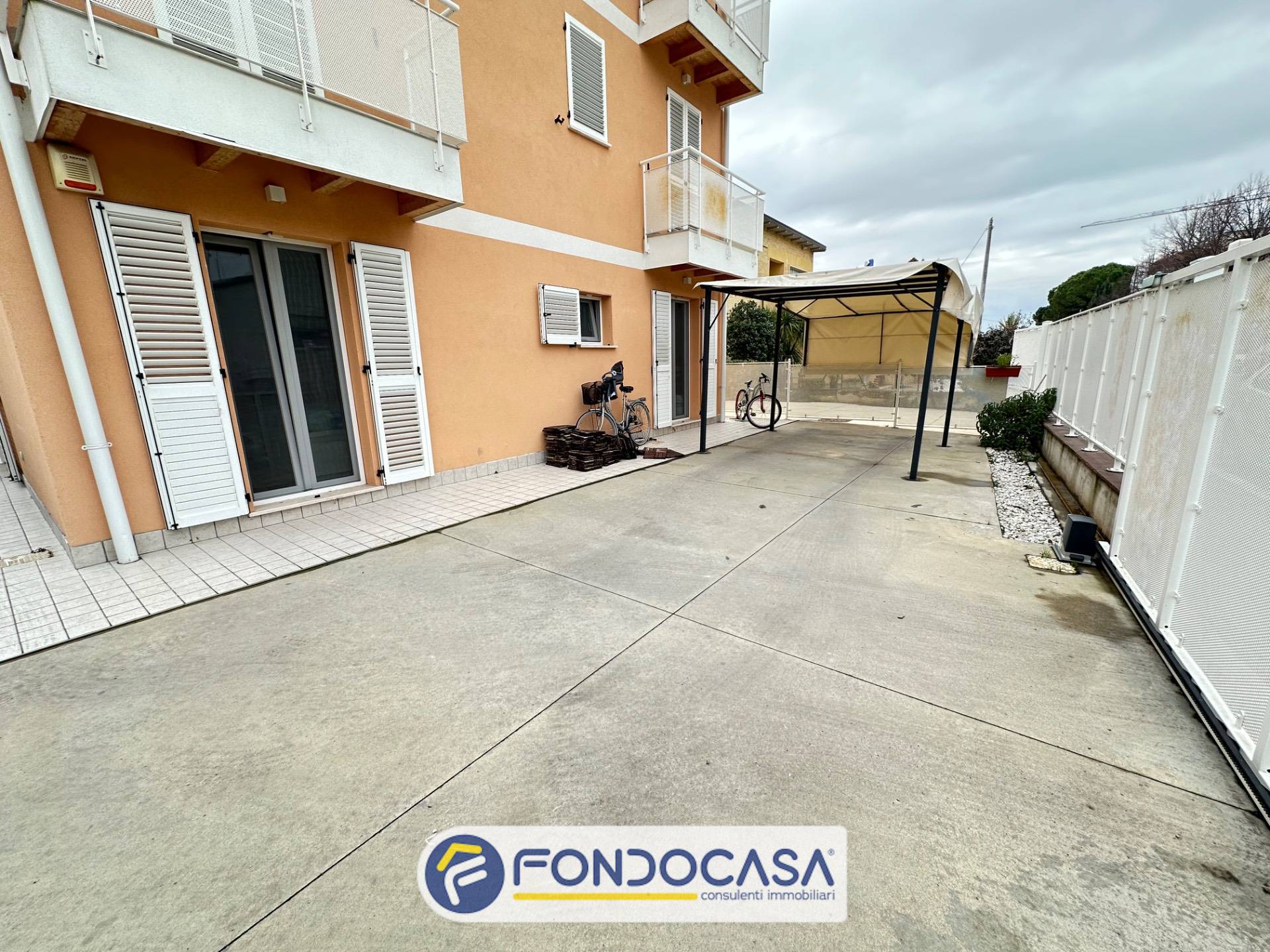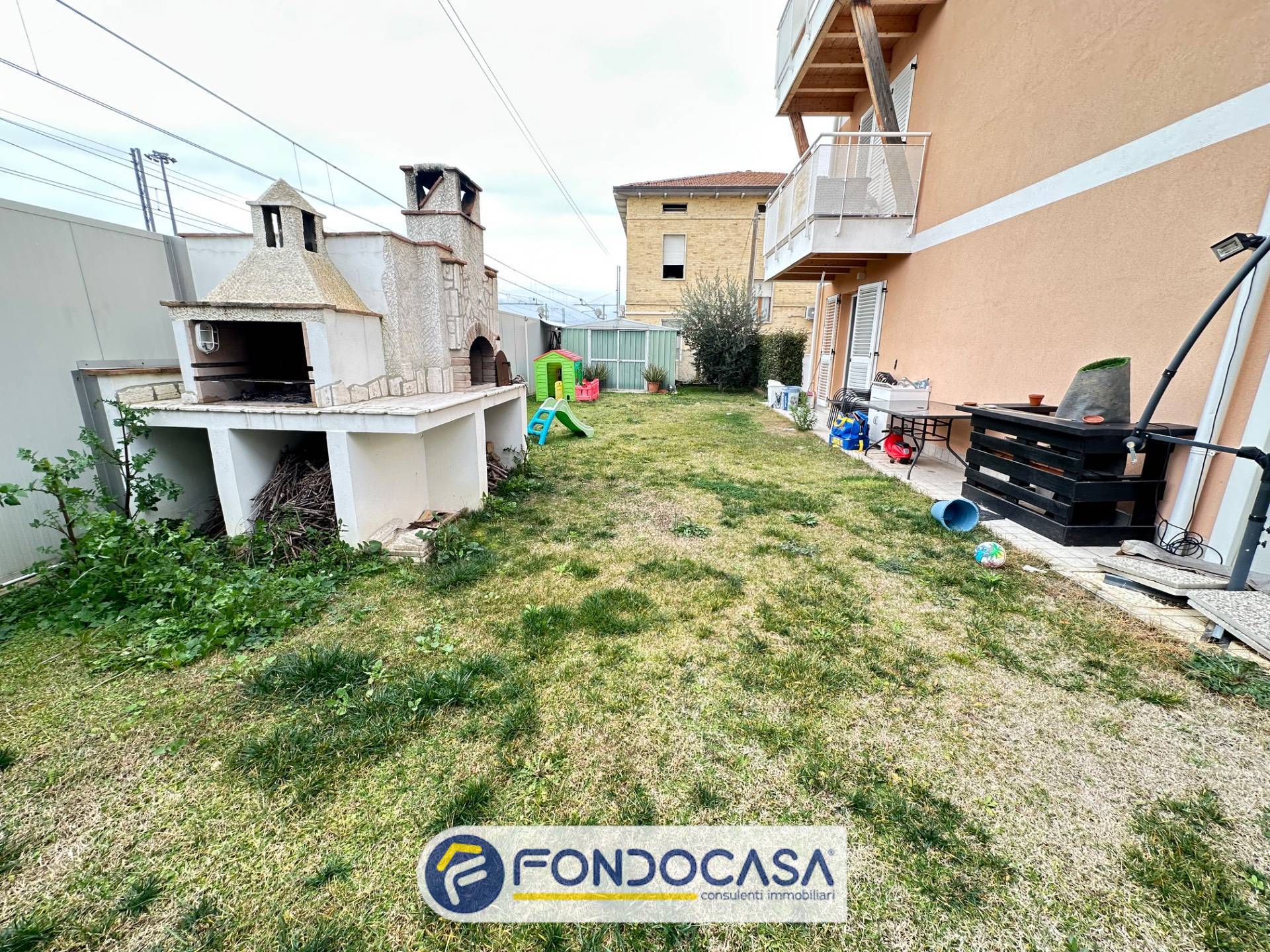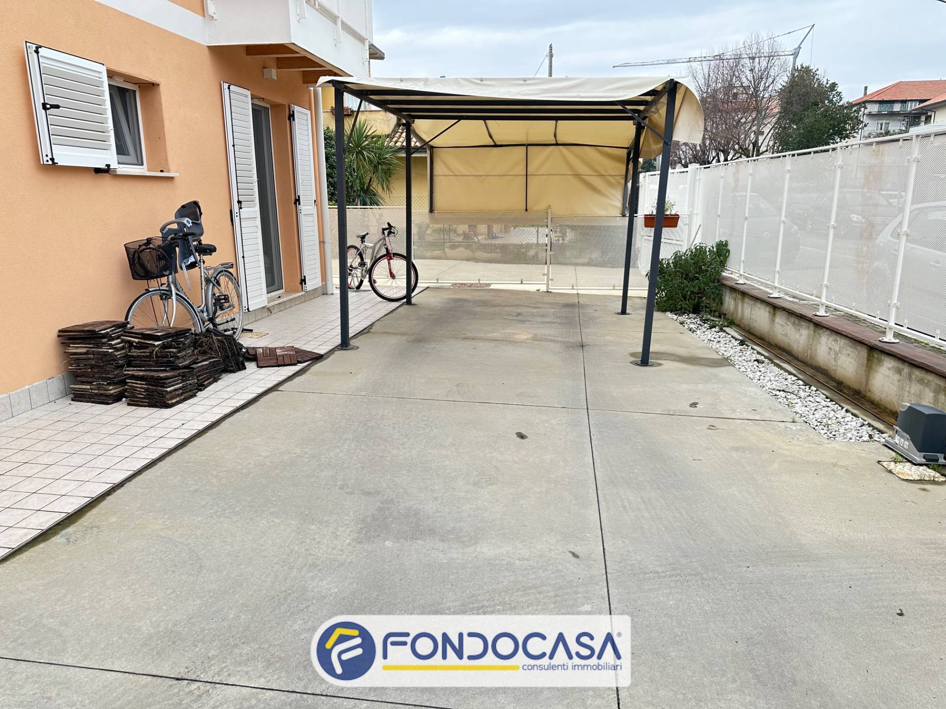 Proponiamo in vendita esclusiva un appartamento a Villa Sant'Antonio posto al piano terra di una elegante e piccola palazzina (solo 3 appartamenti) realizzata nel 2020, antisismica e dotata di riscaldamento a pavimento, pannelli fotovoltaici e tecnologicamente all'avanguardia che garantiscono spese di gestione irrisorie. L'appartamento presenta quattro lati liberi ed è dotato di due corti esclusive di cui una pavimentata e con cancello elettrico dove poter parcheggiare 3/4 auto e l'altra a verde attrezzata con zona barbecue e forno a legna. L'appartamento sviluppa su circa 93 mq. oltre corte pavimentata di circa 100 mq. e giardino di circa 130 mq. per un totale commerciale di circa 130 mq. ed è composto da ingresso su soggiorno con angolo cottura, tre camere, due bagni finestrati di cui uno parzialmente adibito a lavanderia. Infissi in alluminio con doppio taglio termico e acustico tutti dotati di zanzariere; autoclave; ascensore che serve un terrazzo condominiale al piano terzo; pannelli fotovolatici che permettono di abbattere quasi completamente le spese di riscaldamento ed elettricità; condizionatori in tutte le stanze e impianto di allarme. Trattasi di una eccellente soluzione abitativa di recente costruzione in zona tranquilla ma vicina a tutti i principali servizi. L'immobile può essere considerato una vera e propria oasi di tranquillità, con tutte le comodità necessarie per vivere al meglio la vita quotidiana.