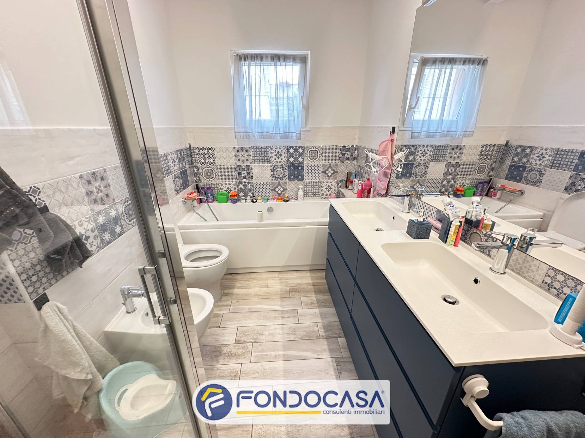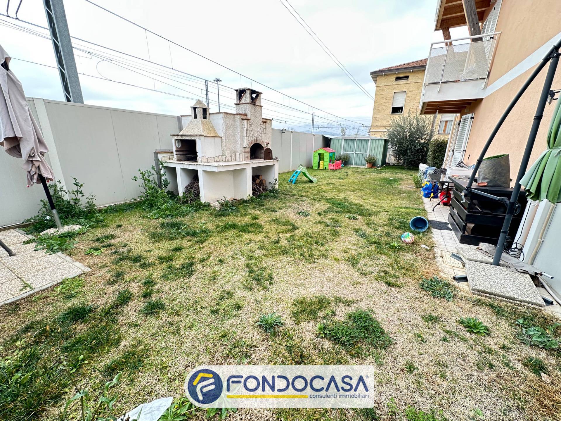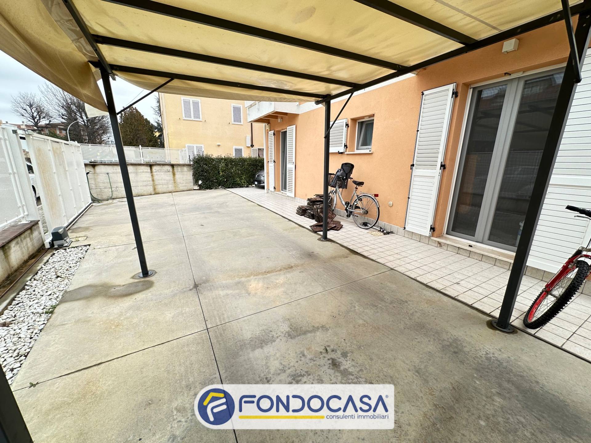 Proponiamo in vendita esclusiva un appartamento a Villa Sant'Antonio posto al piano terra di una elegante e piccola palazzina (solo 3 appartamenti) realizzata nel 2020, antisismica e dotata di riscaldamento a pavimento, pannelli fotovoltaici e tecnologicamente all'avanguardia che garantiscono spese di gestione irrisorie. L'appartamento presenta quattro lati liberi ed è dotato di due corti esclusive di cui una pavimentata e con cancello elettrico dove poter parcheggiare 3/4 auto e l'altra a verde attrezzata con zona barbecue e forno a legna. L'appartamento sviluppa su circa 93 mq. oltre corte pavimentata di circa 100 mq. e giardino di circa 130 mq. per un totale commerciale di circa 130 mq. ed è composto da ingresso su soggiorno con angolo cottura, tre camere, due bagni finestrati di cui uno parzialmente adibito a lavanderia. Infissi in alluminio con doppio taglio termico e acustico tutti dotati di zanzariere; autoclave; ascensore che serve un terrazzo condominiale al piano terzo; pannelli fotovolatici che permettono di abbattere quasi completamente le spese di riscaldamento ed elettricità; condizionatori in tutte le stanze e impianto di allarme. Trattasi di una eccellente soluzione abitativa di recente costruzione in zona tranquilla ma vicina a tutti i principali servizi. L'immobile può essere considerato una vera e propria oasi di tranquillità, con tutte le comodità necessarie per vivere al meglio la vita quotidiana.