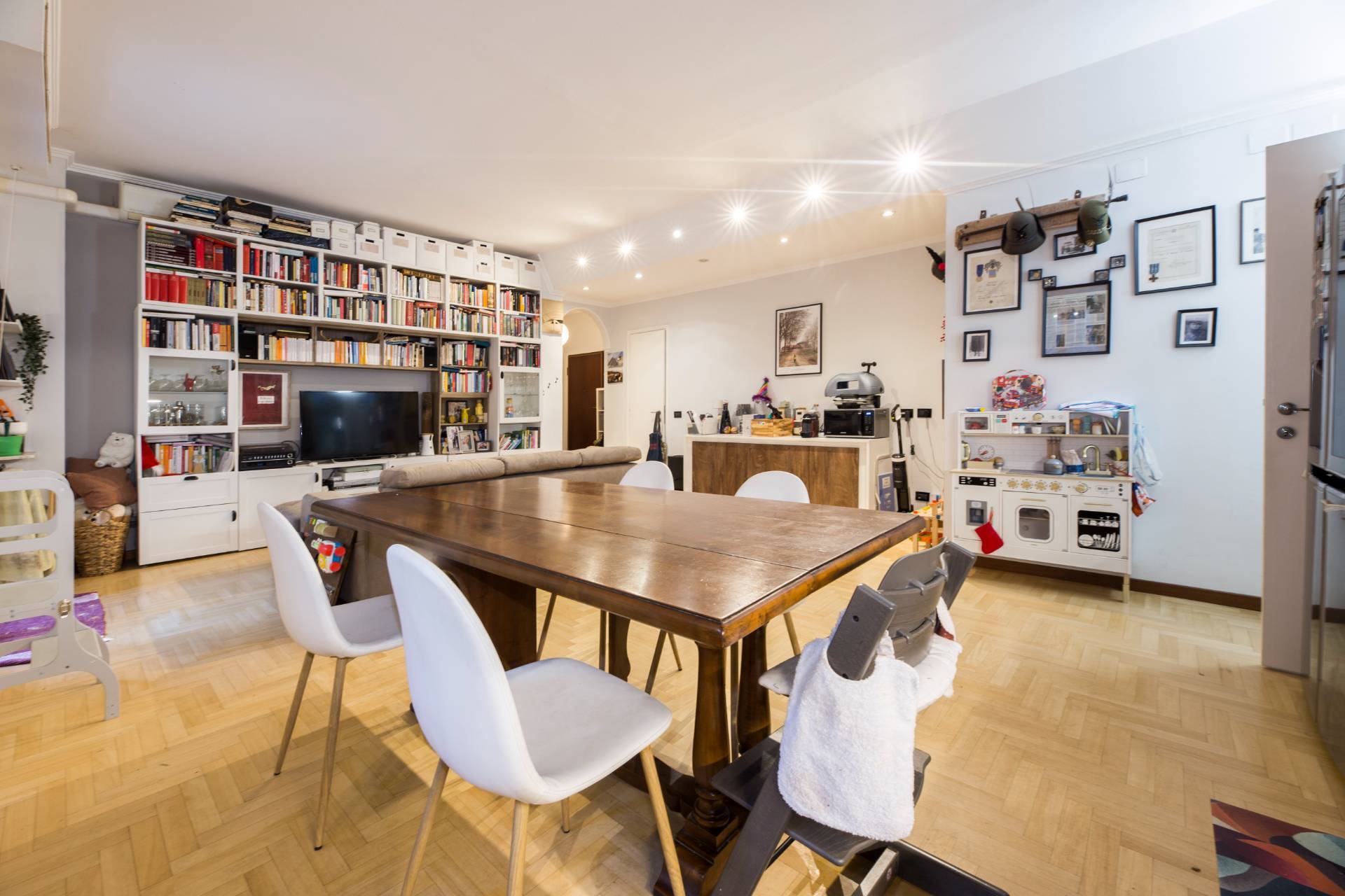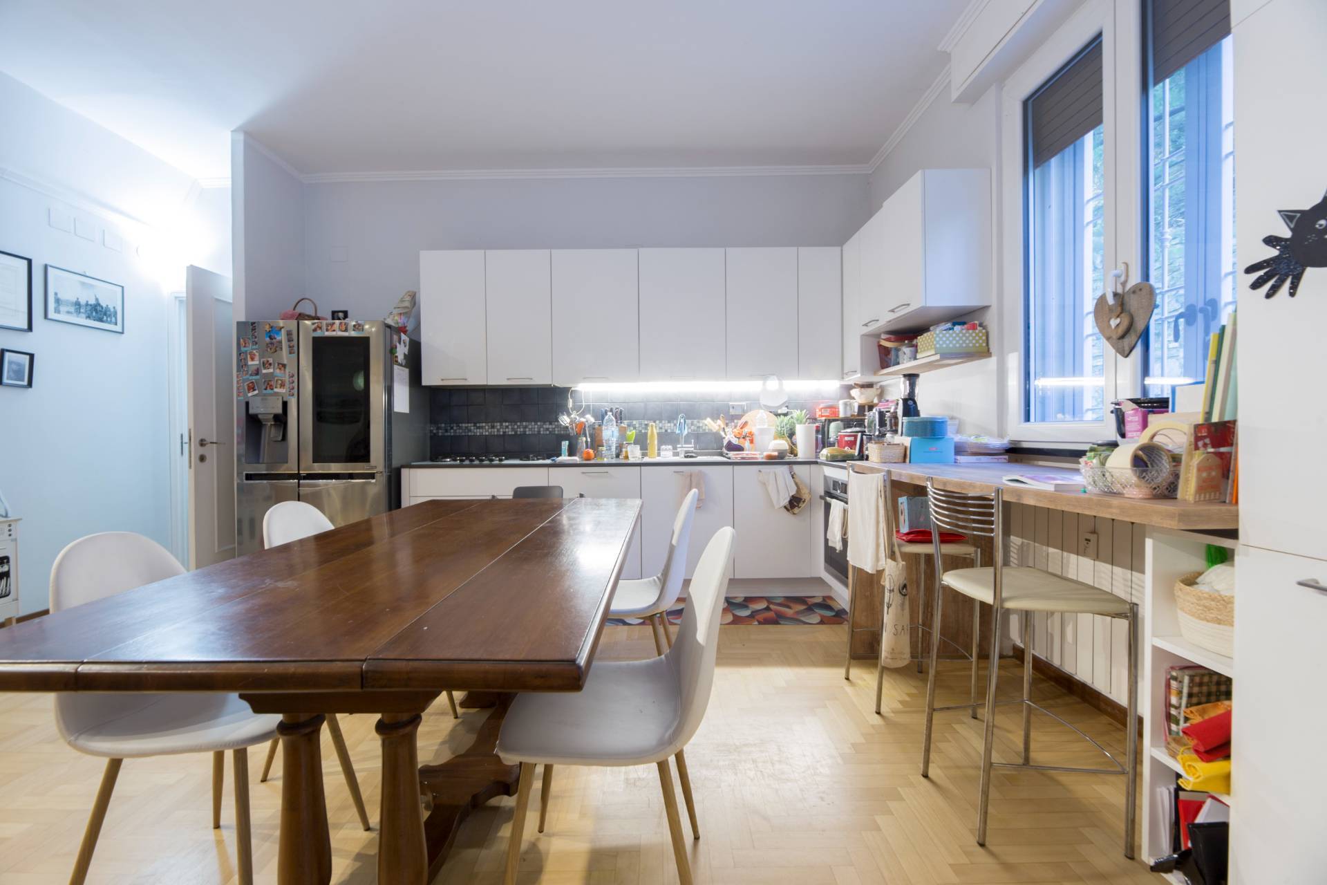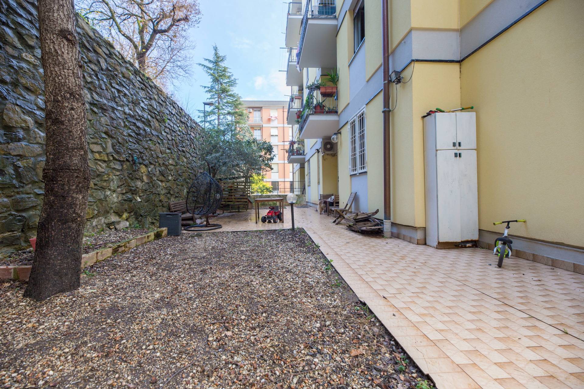 Le finiture includono parquet in tutta la casa e riscaldamento centralizzato, che garantiscono comfort in ogni stagione. Soluzione ideale per chi cerca una casa pronta da abitare, con uno spazio esterno raro e prezioso in città.