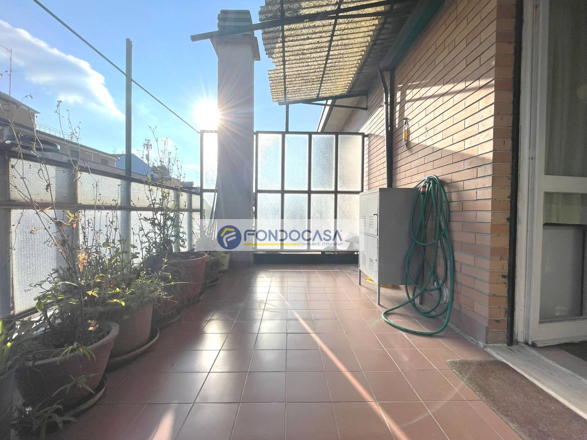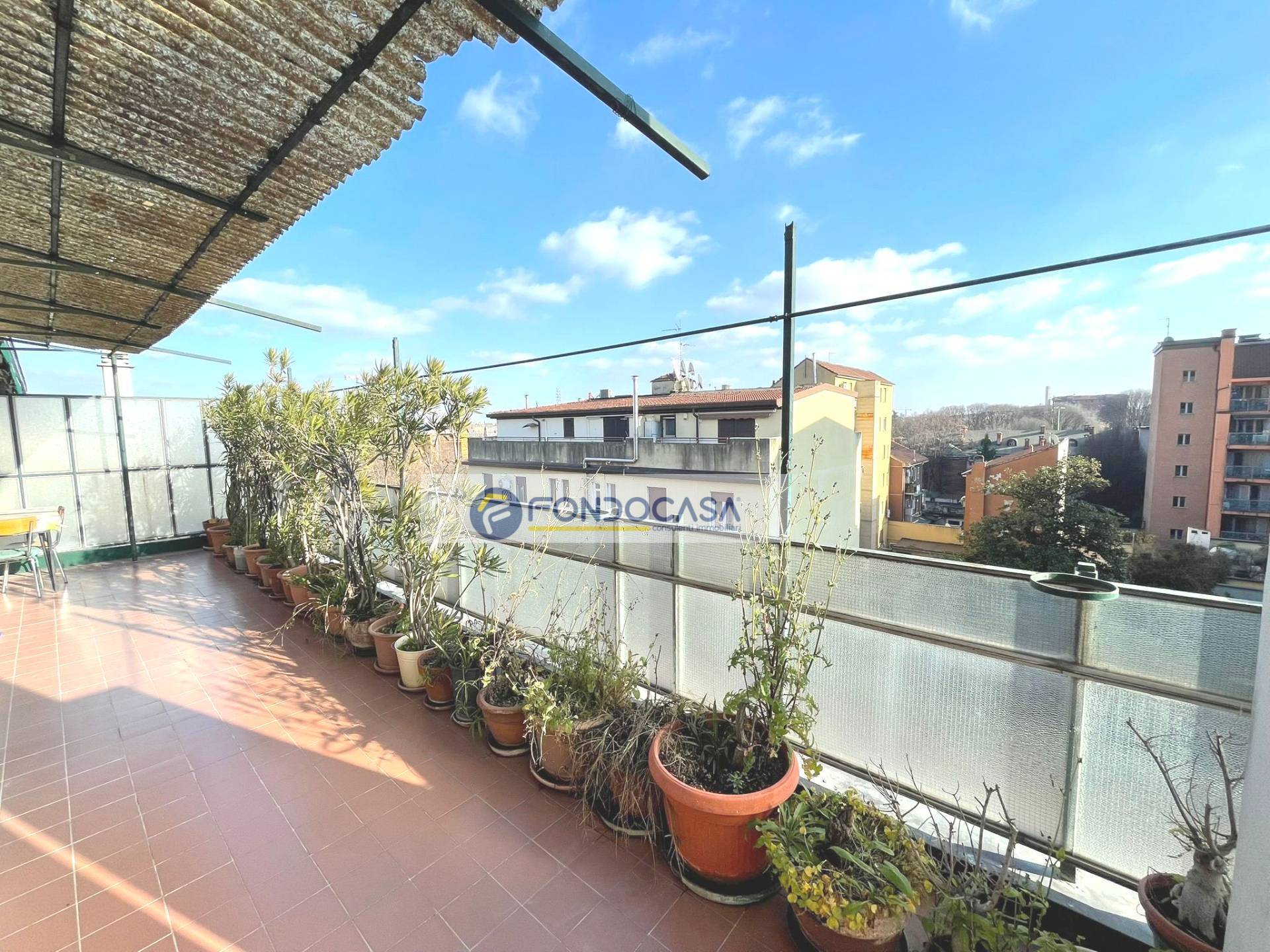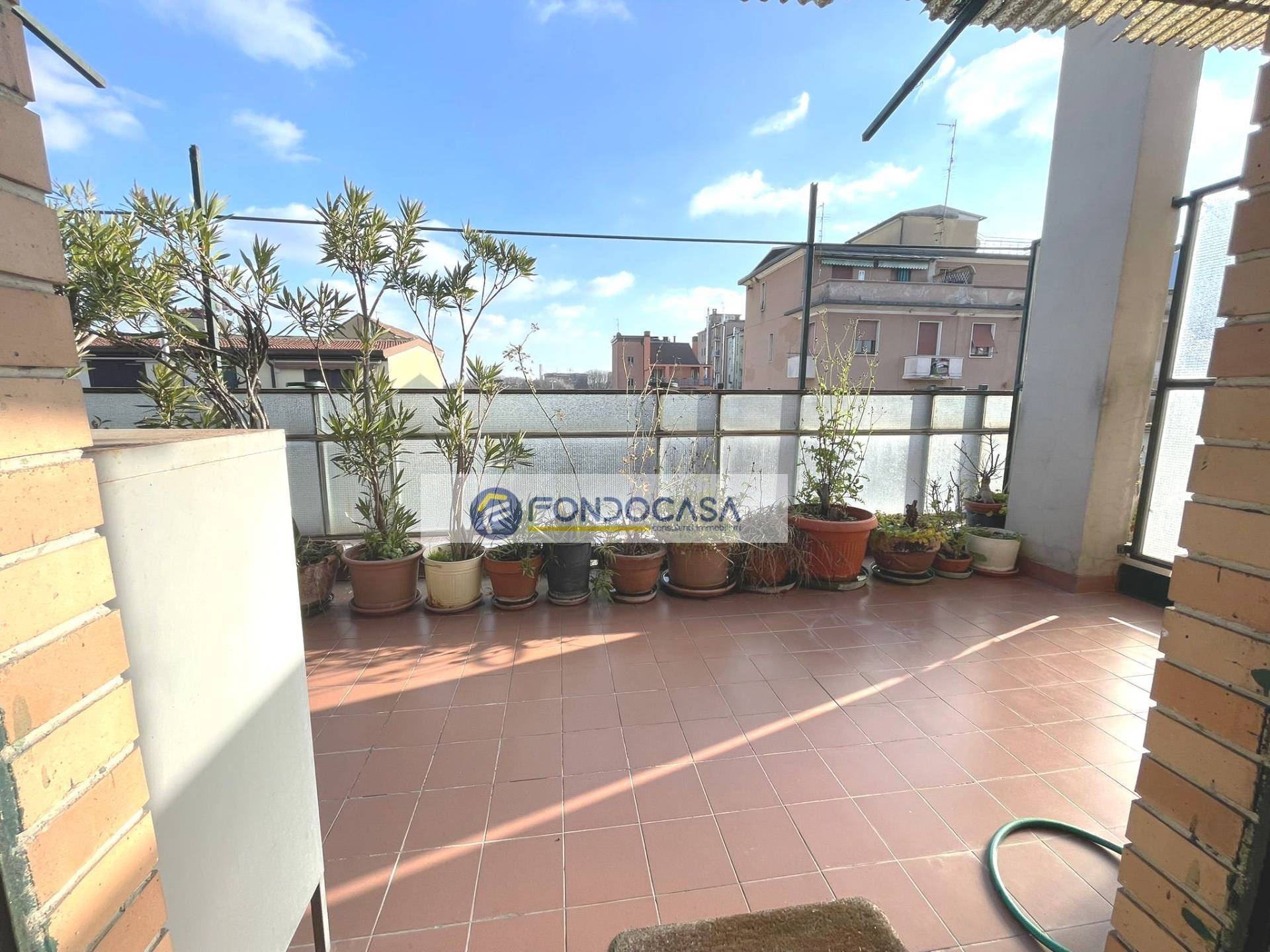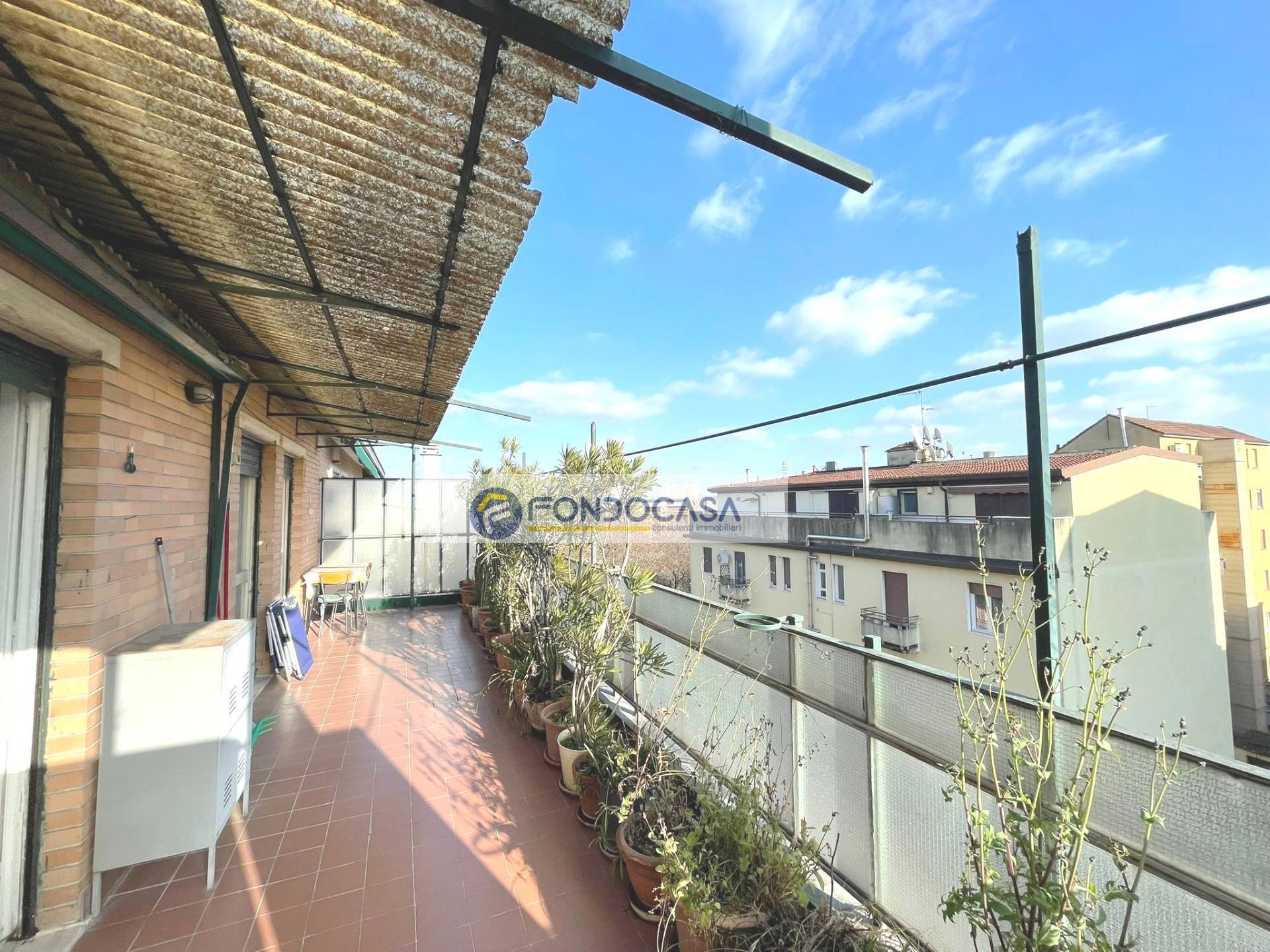 In zona servita da attività e mezzi pubblici, in una piccola palazzina proponiamo in vendita un luminosissimo attico di 105 mq, al quarto piano con ascensore, composto da ingresso su ampio soggiorno, cucina abitabile, terrazzo di 30 mq con doppio accesso da soggiorno e cucina, una camera matrimoniale ed una singola con balcone, ampio bagno con vasca e disimpegno. POSSIBILITA' DI REALIZZARE SECONDO BAGNO E TERZA CAMERA. Completano la soluzione una cantina ed un solaio.